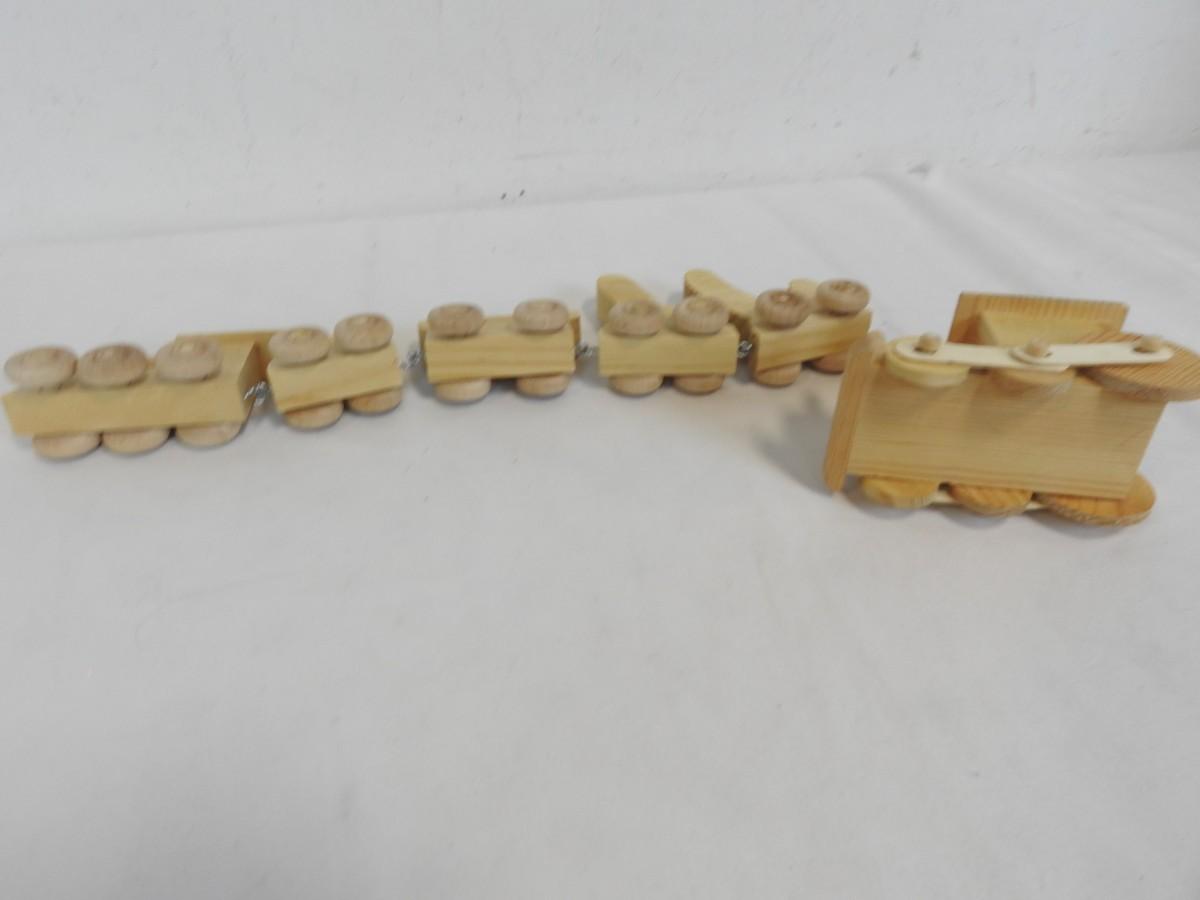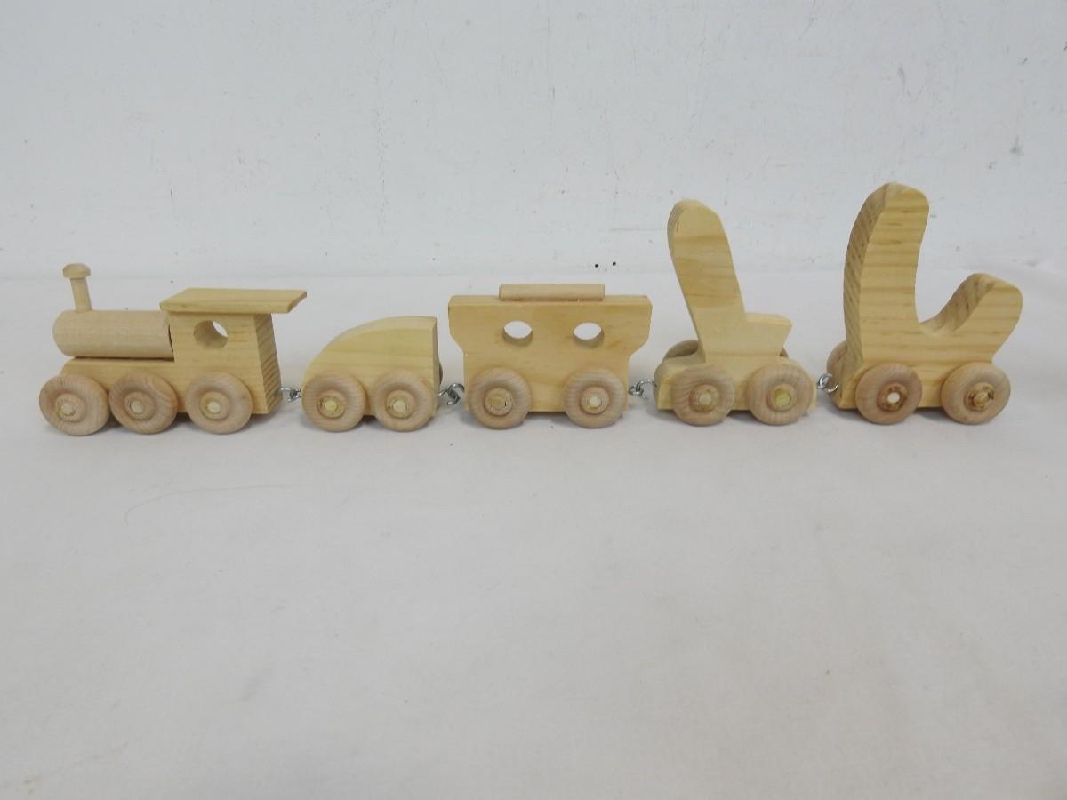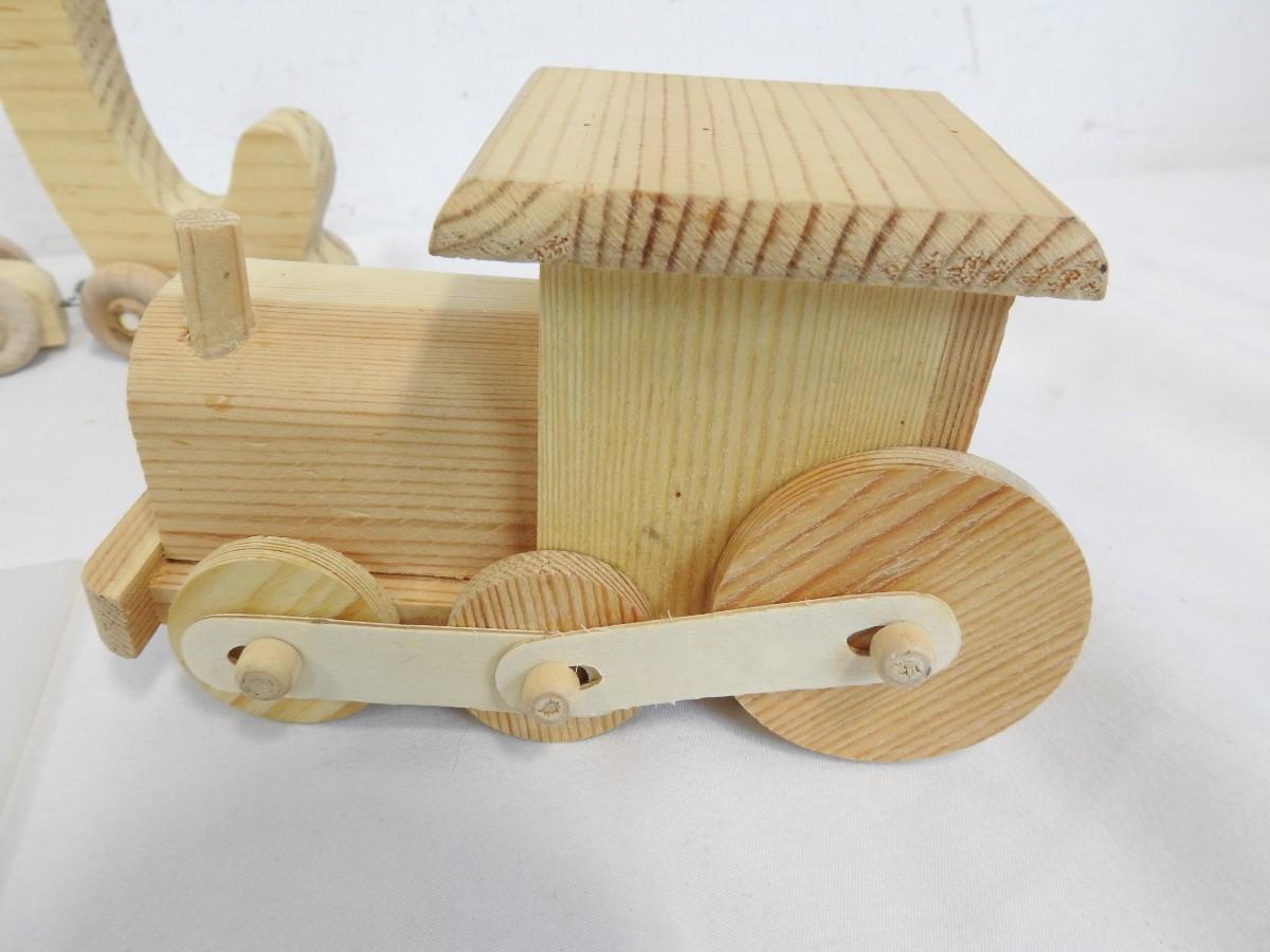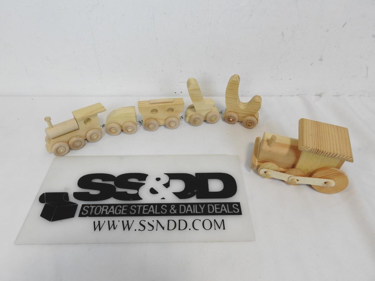 Wood Train Set + 1 Larger Locomotive, Good Condition, Natural Wood, Unvarnished