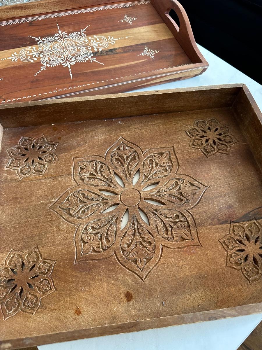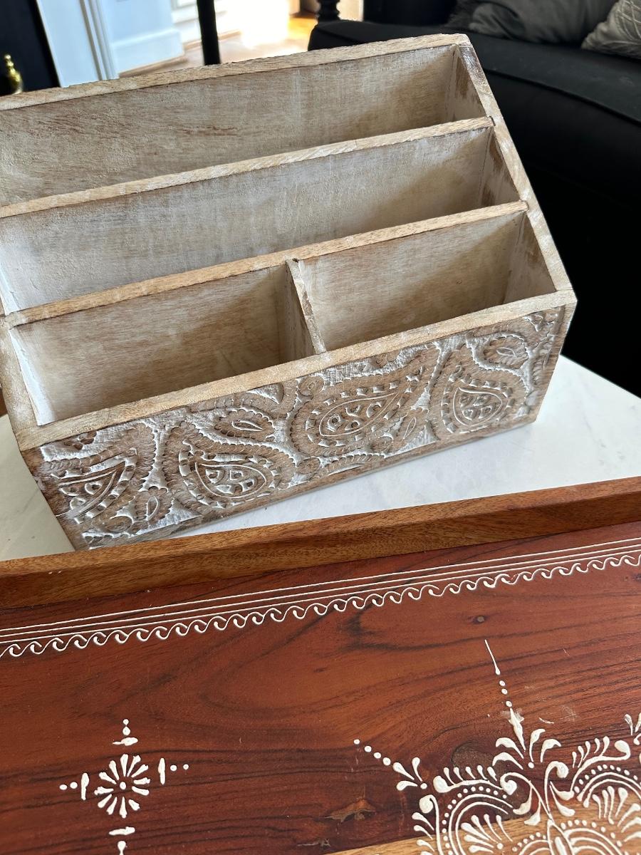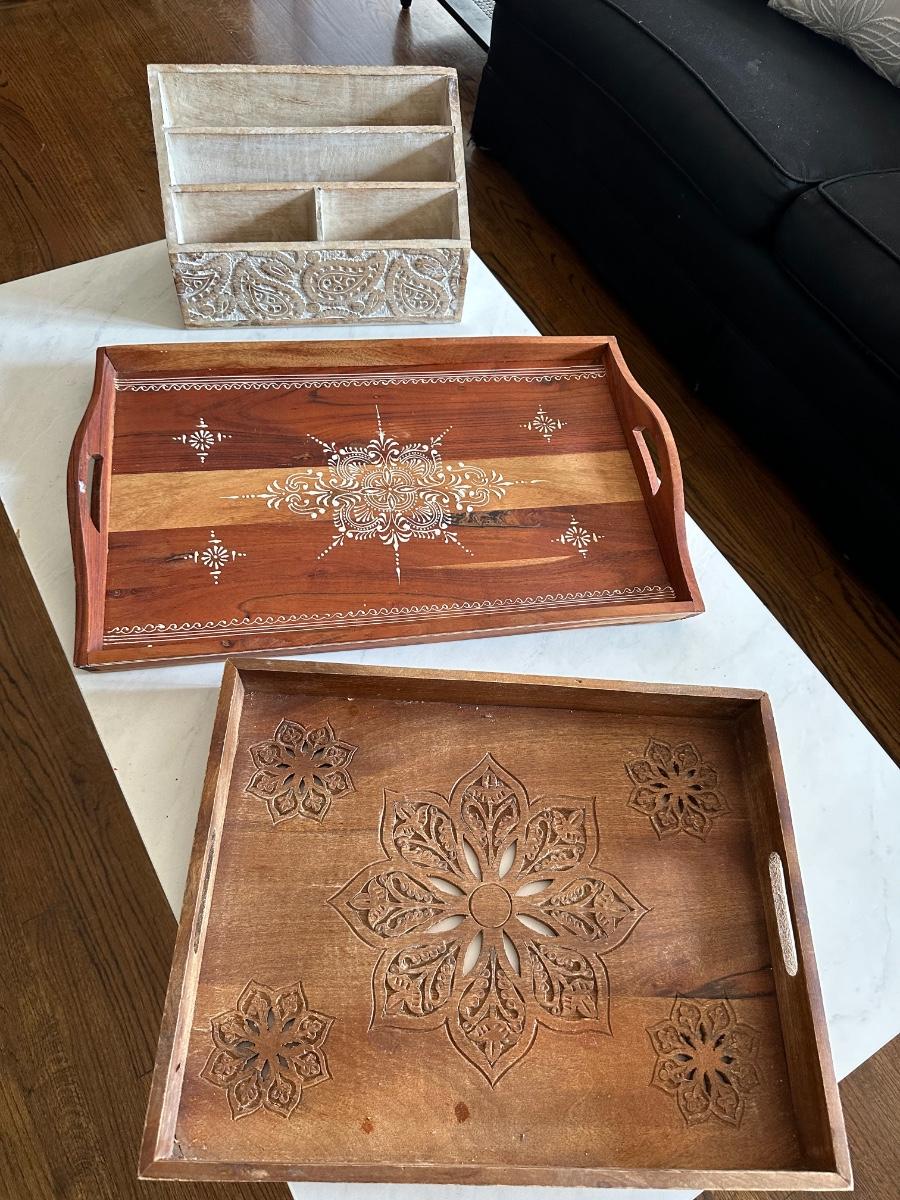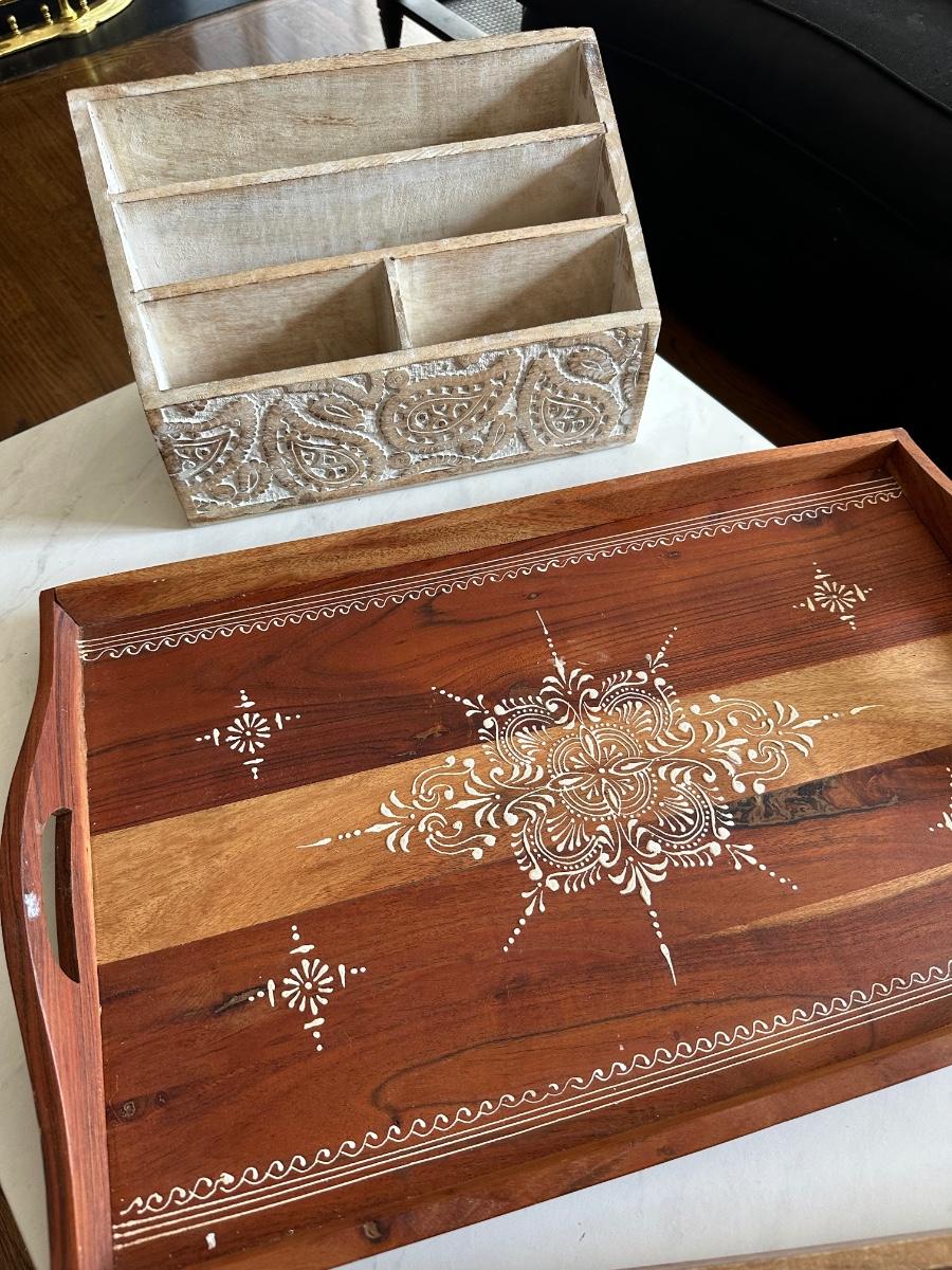 2 WOOD DECOR TRAYS, MAIL CUBE