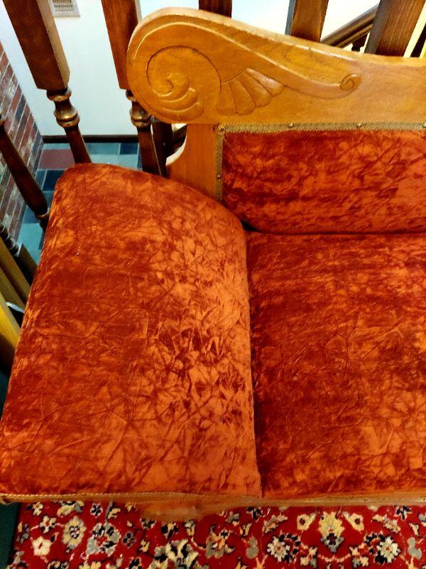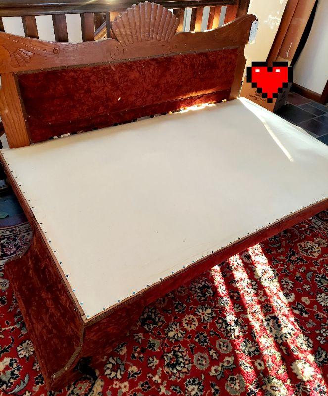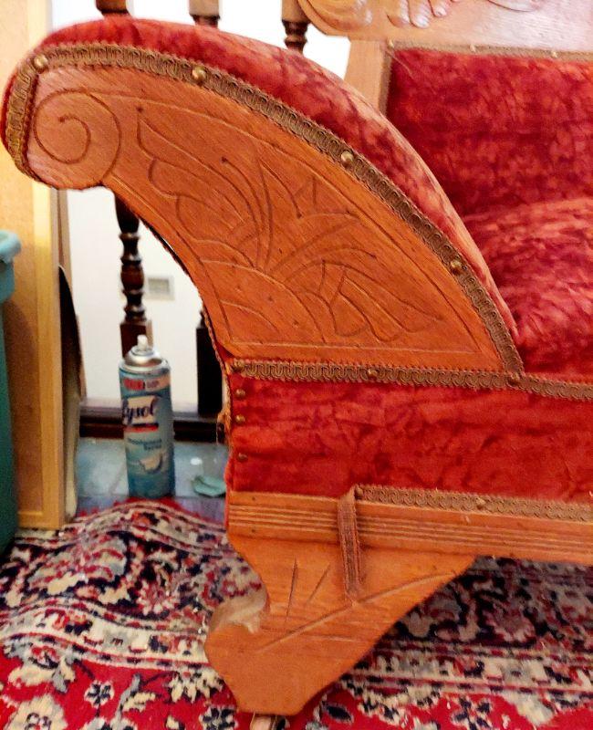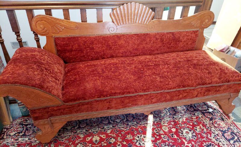 WOOD TRIMMED ANTIQUE FAINTING FUTON
