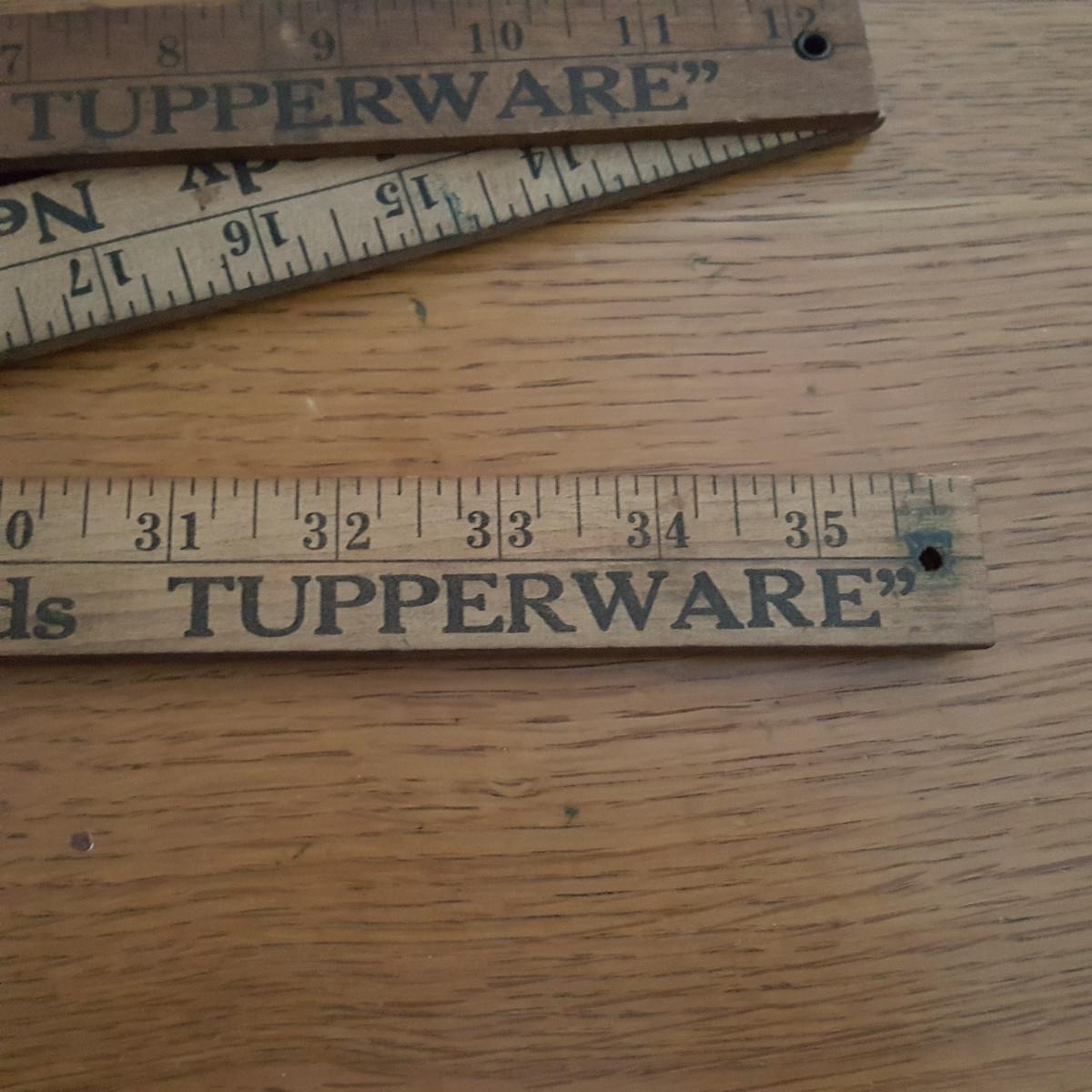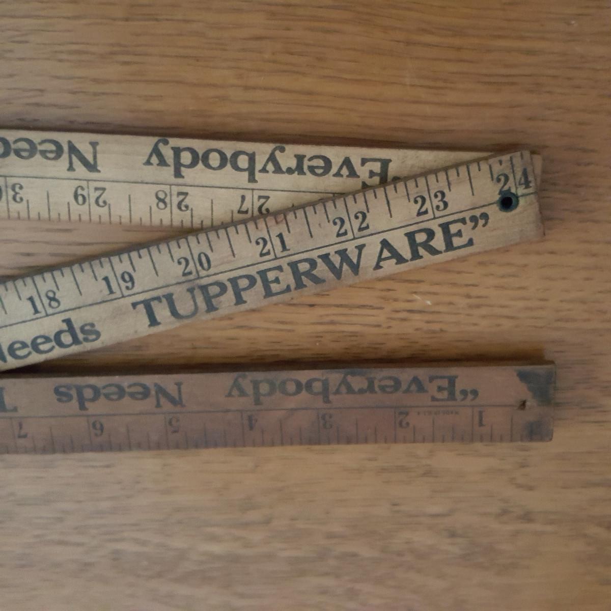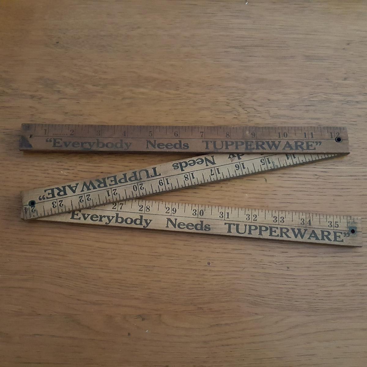 This auction lot is for a vintage advertising Wood Tupperware Folding Yard Stick, This is a neat collectible. Surely given as a prize when one attended a "Party" back in the day. Where are you gonna find another.