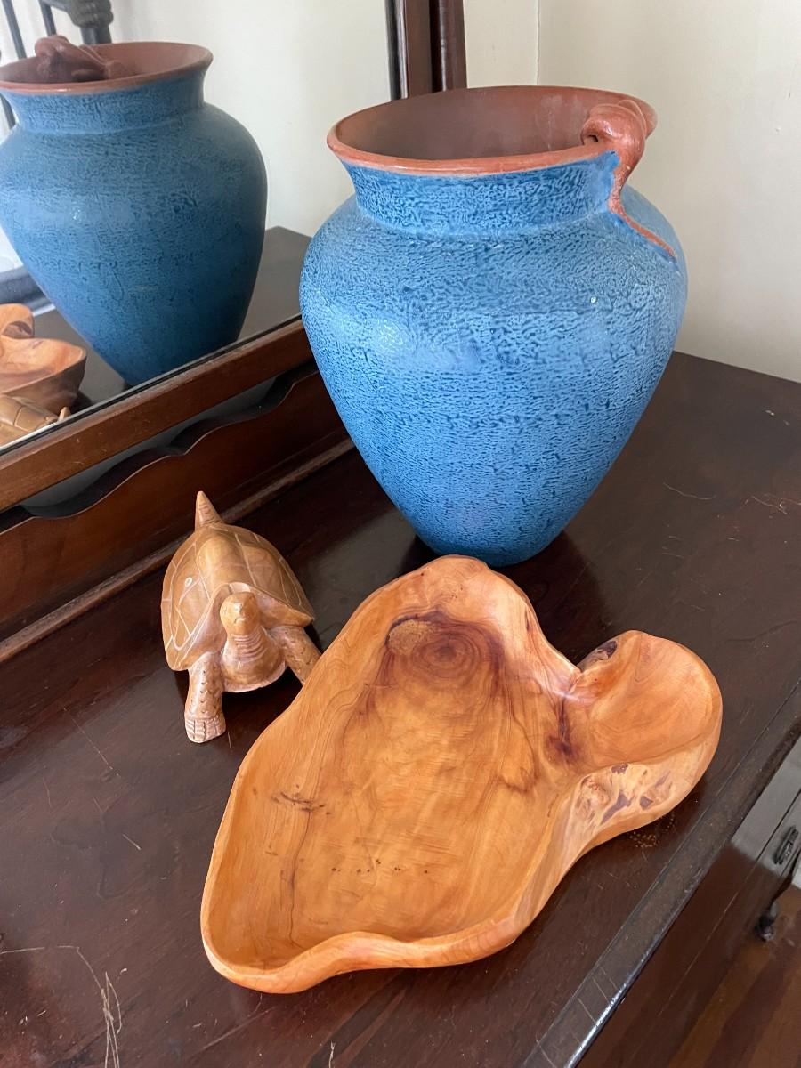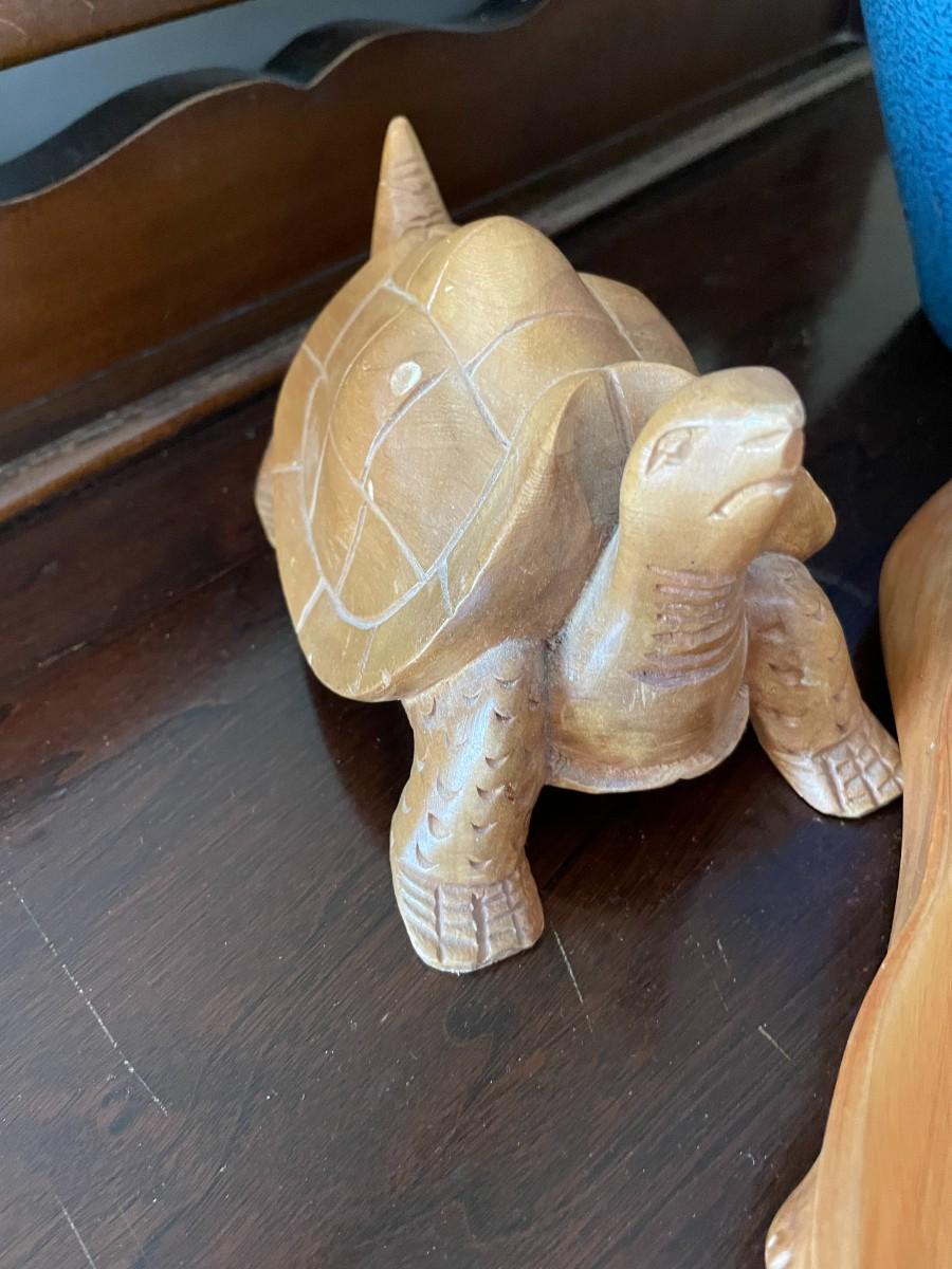 Wood Turtle and Bowl with Vase