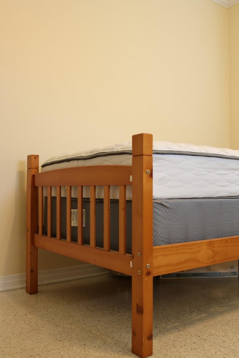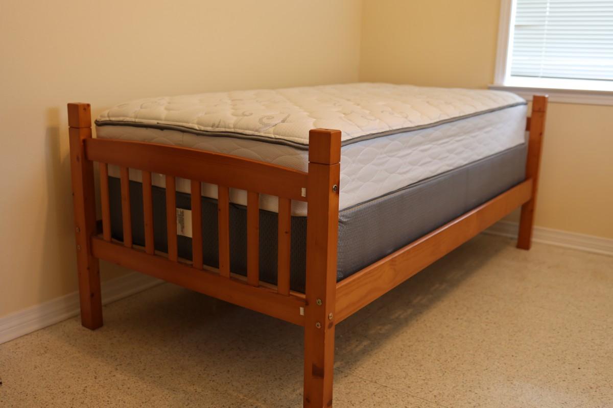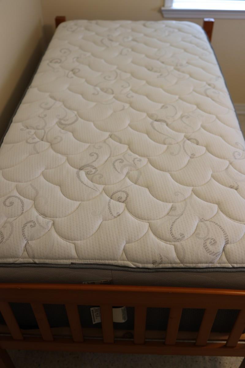 Mattress and box spring are in great condition. The top of the bed posts are missing the small circular inserts, see pictures.