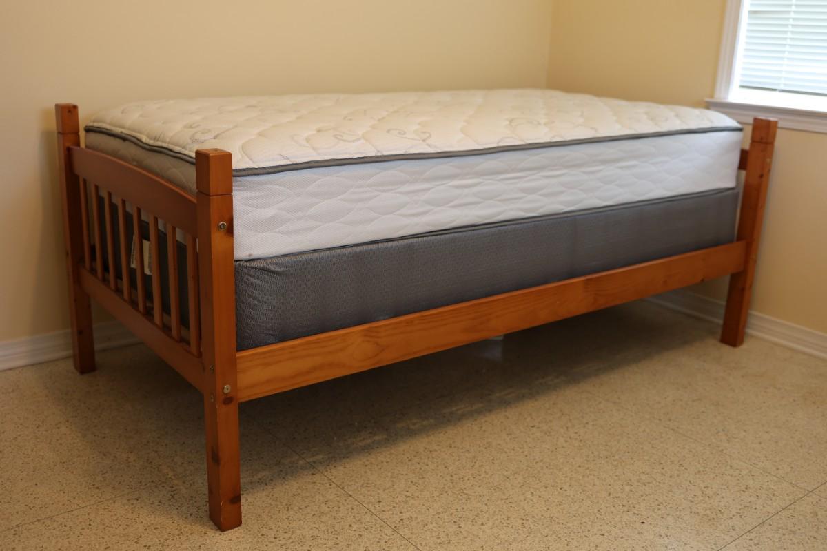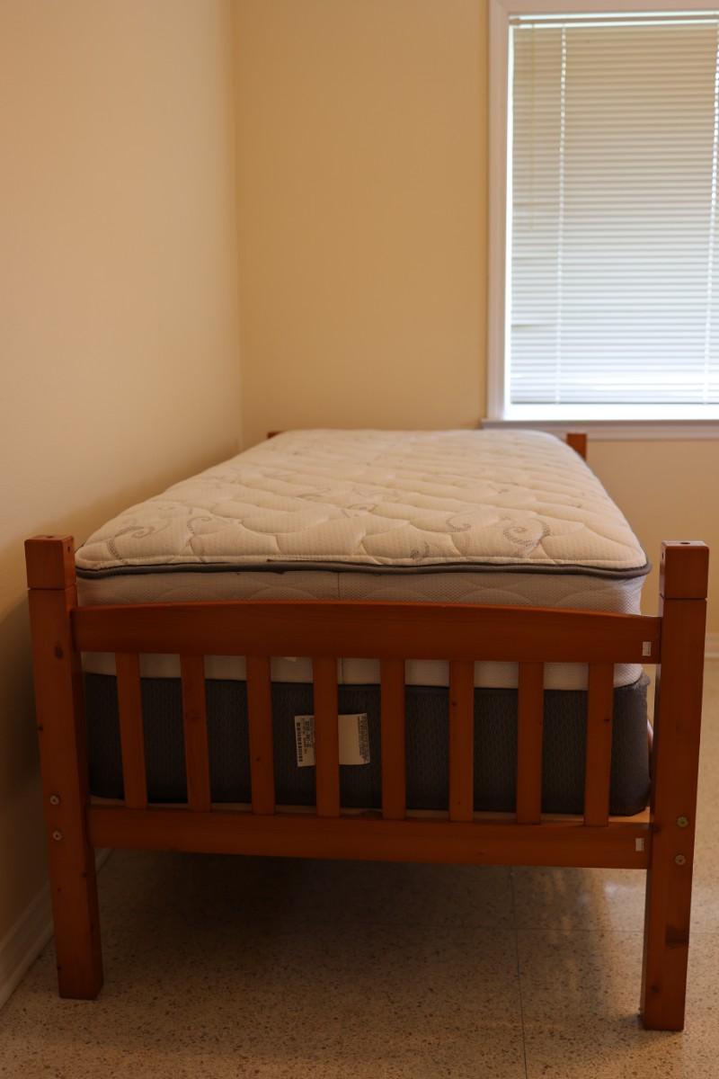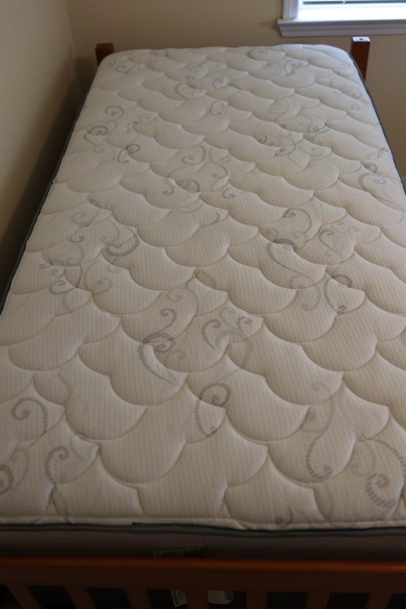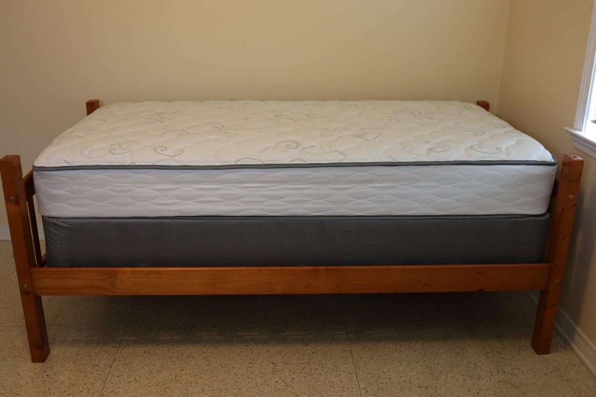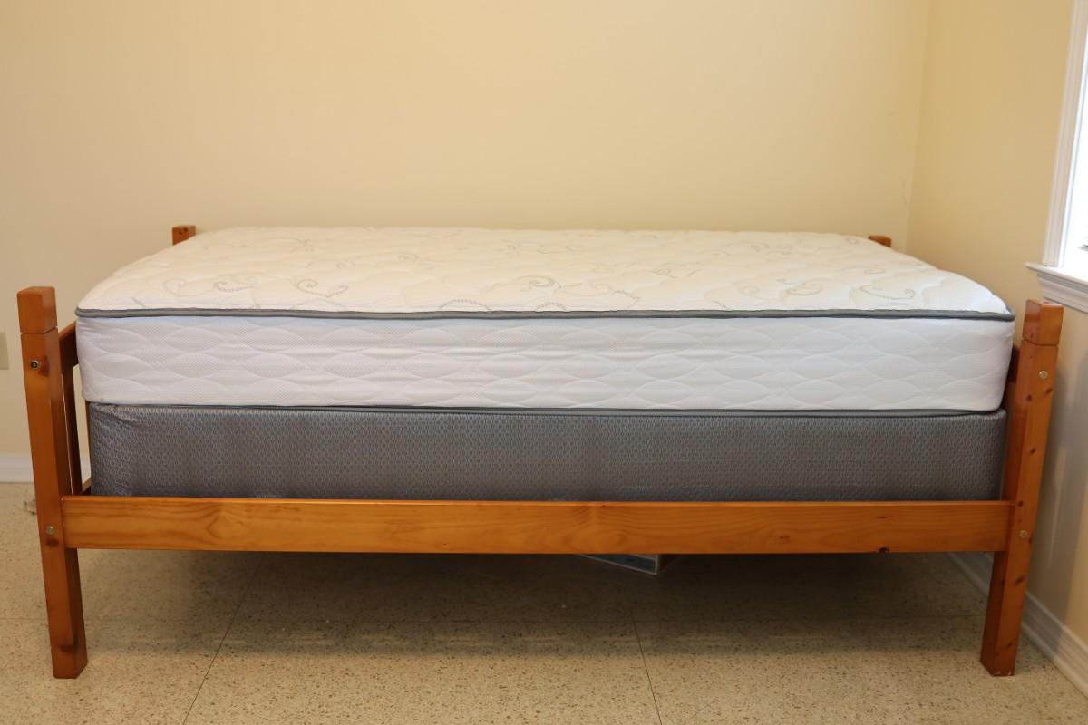 Wood Twin Bed Frame with Serta Mattress and Box Spring