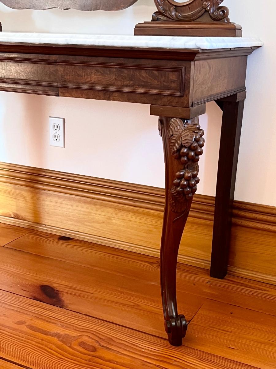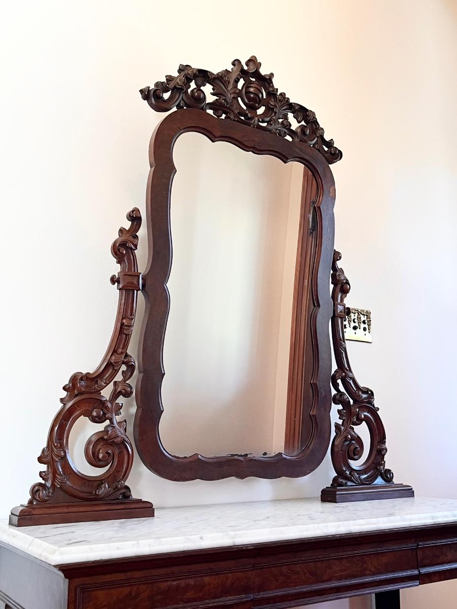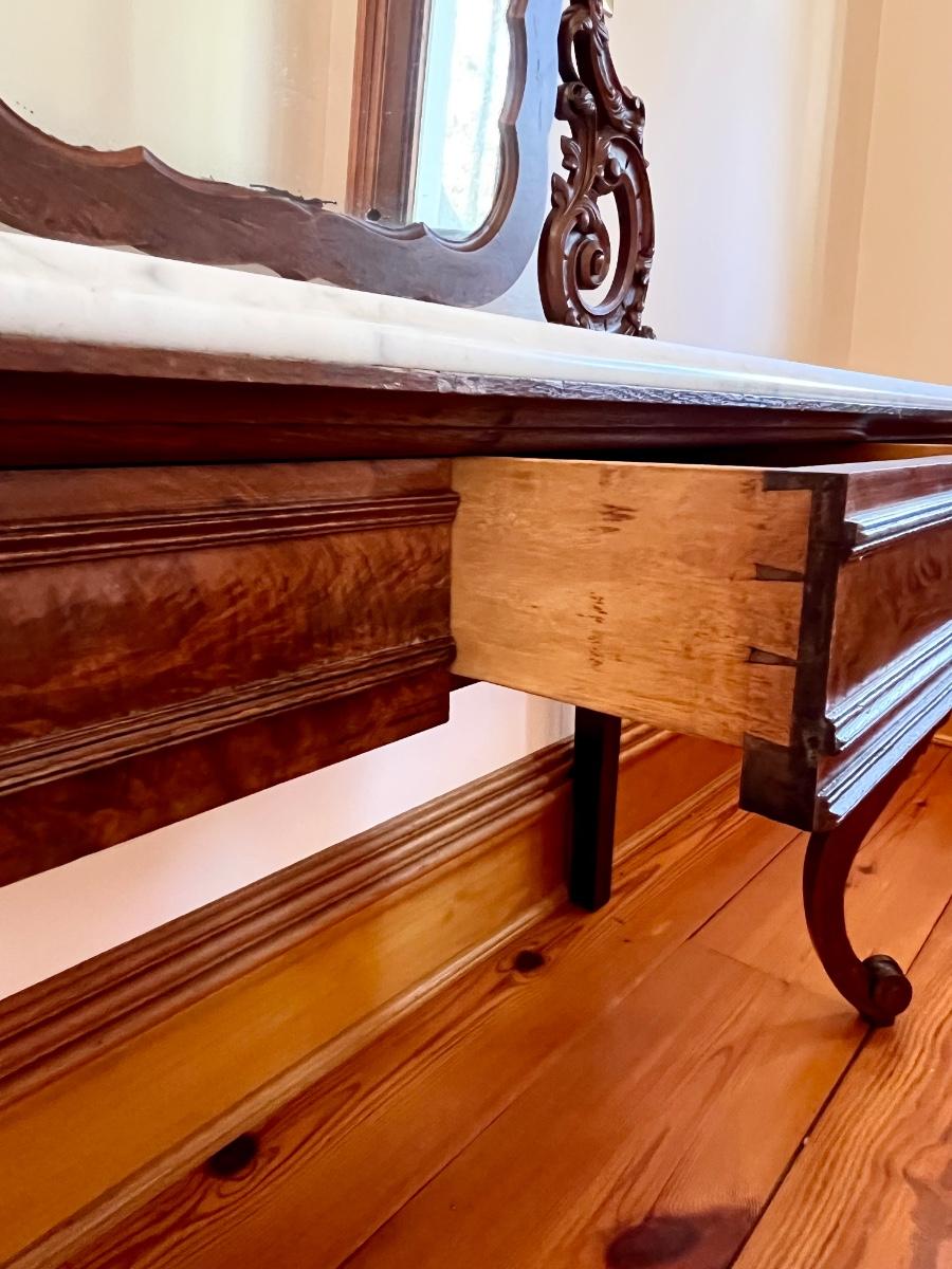 Vtg. Solid Mahogany Marble Top Vanity/Desk ~ With Attached Mirror