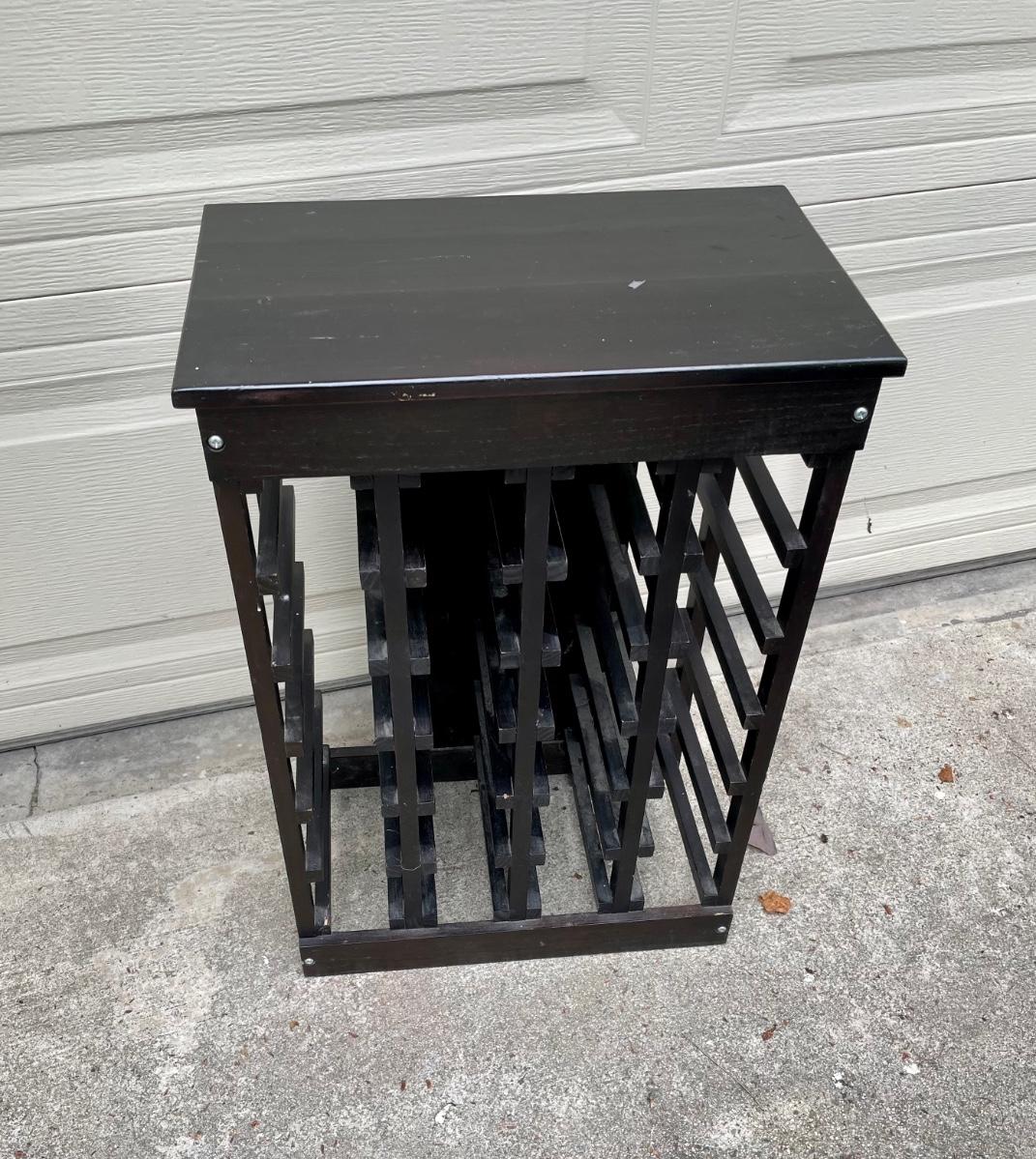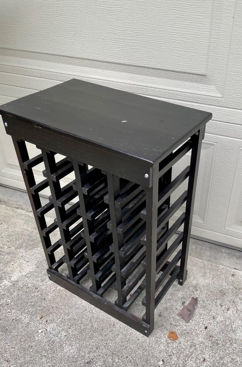 Wooden Wine Bottle Rack, holds 24 bottles. Approx. 26 inches tall, 18 inches wide, and 11 inches deep.