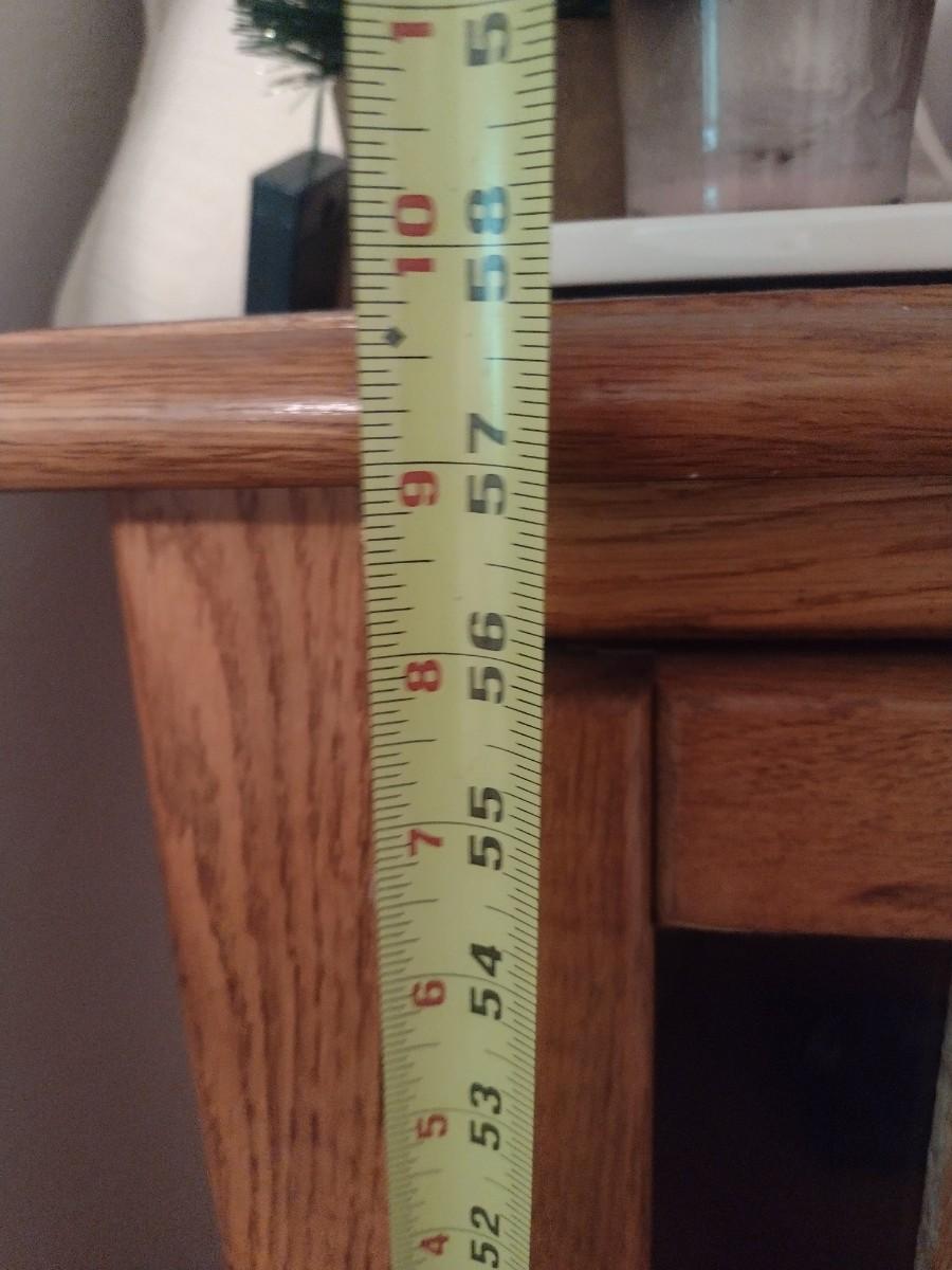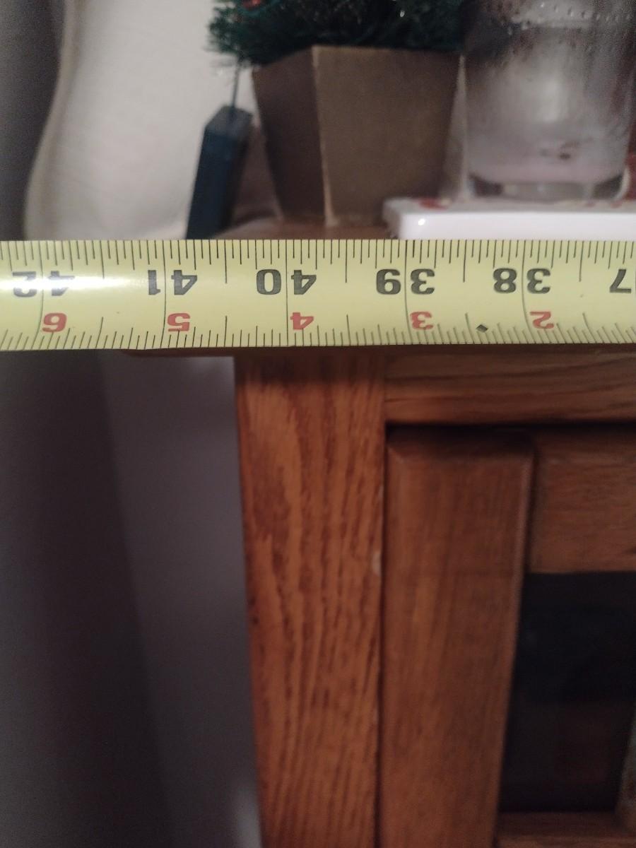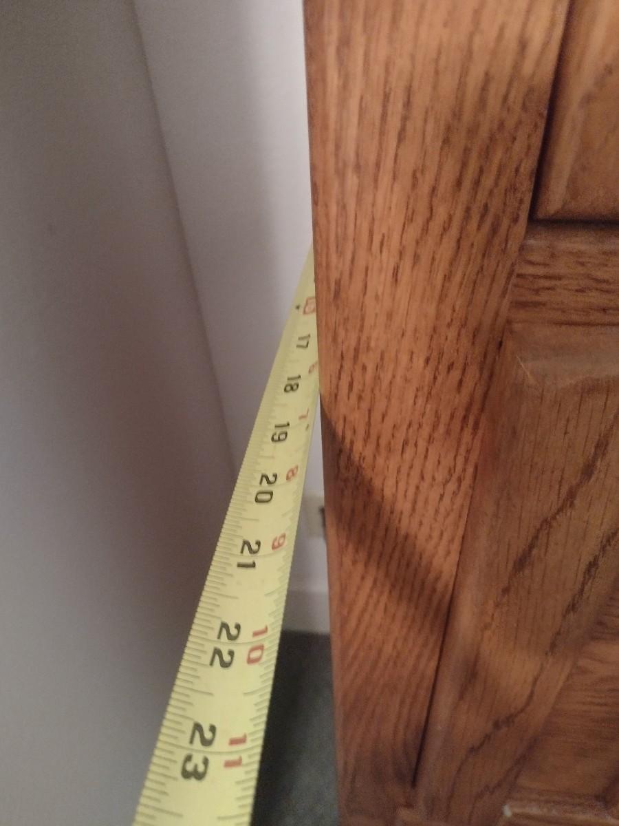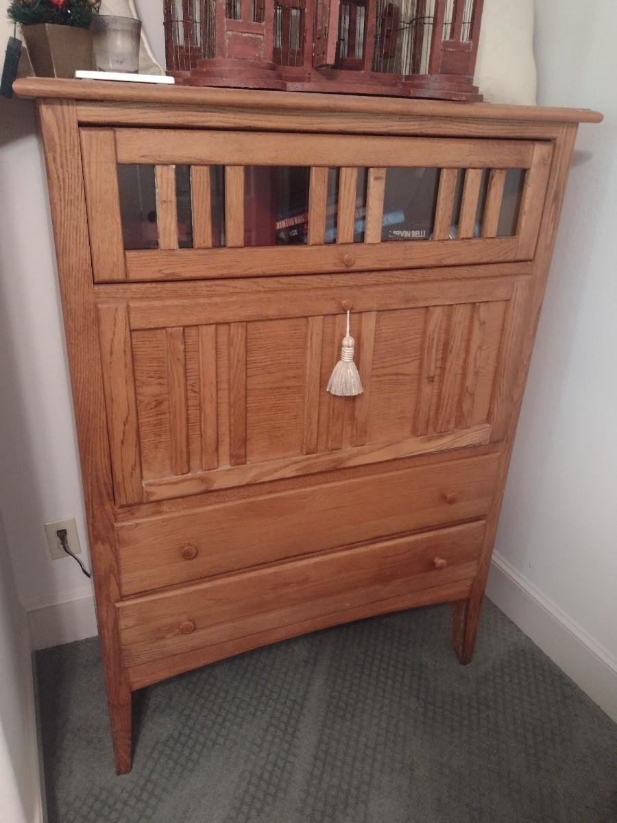 Wood Writing Desk with Double Drawer Storage. Bring assistance to remove. Lower-level item with stairs to the main floor