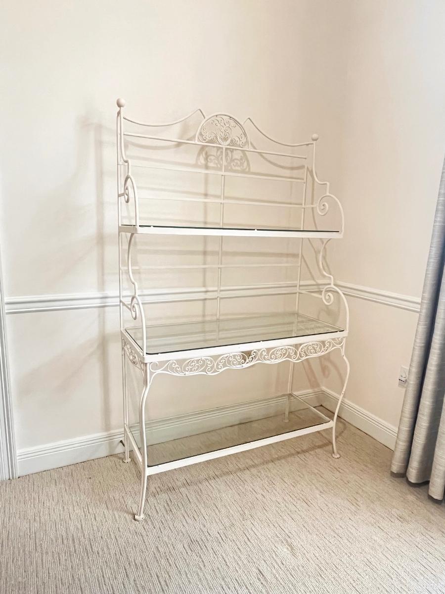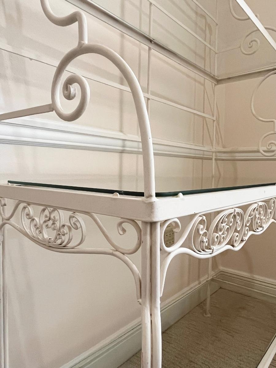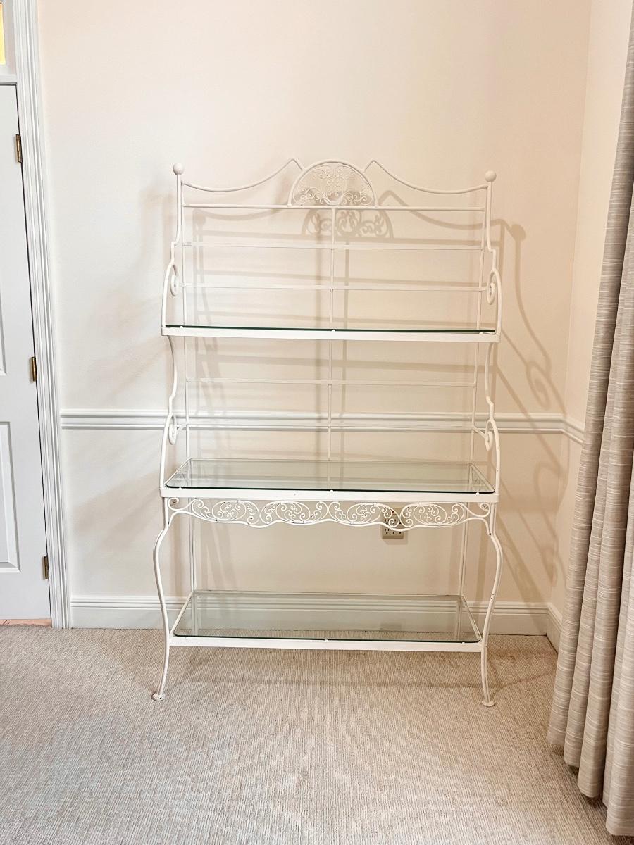 WOODARD ~ Vtg. Iron & Glass Bakers Rack