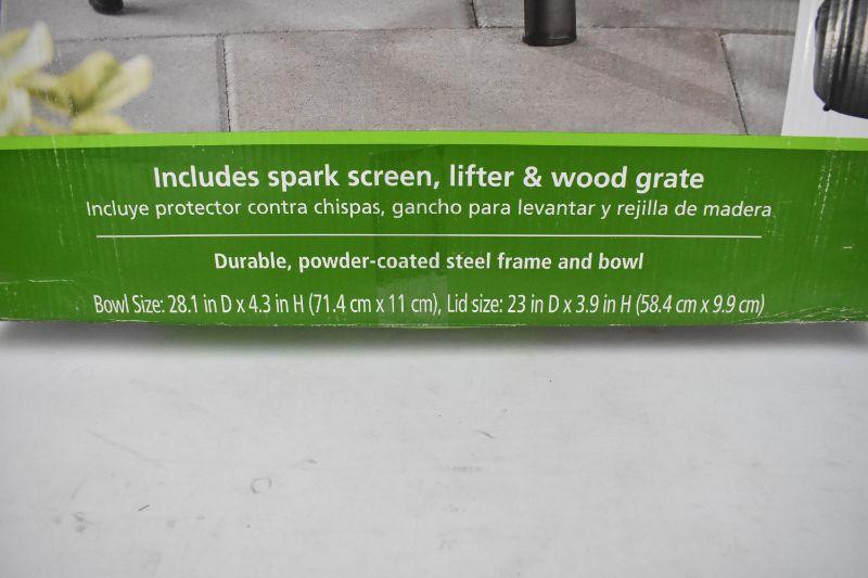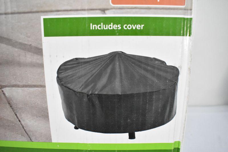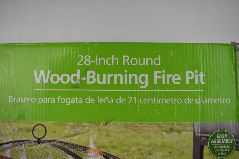 Wood-Burning Fire Pit, 28" Round with Spark Screen, Lifter, Wood Grate, & Cover - New