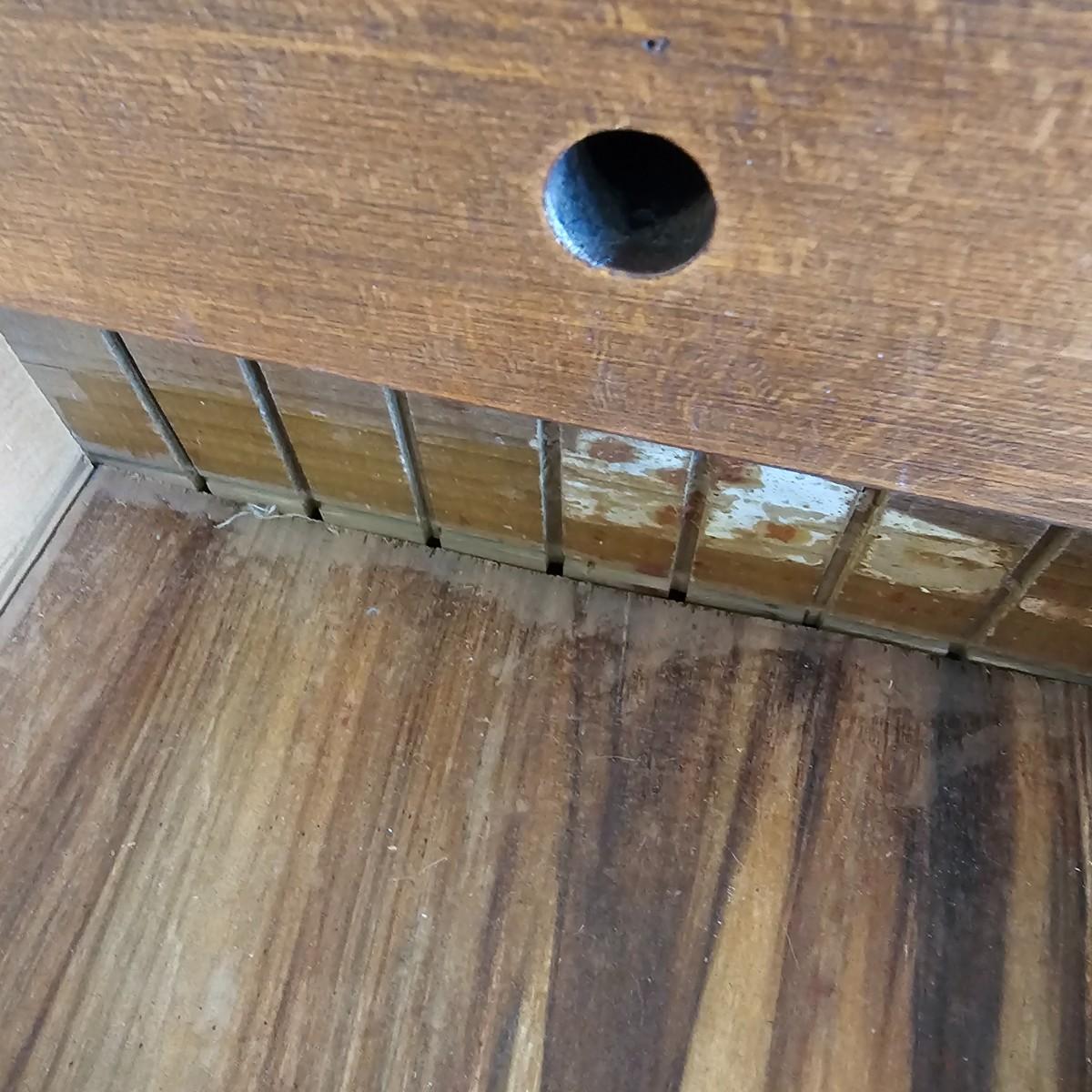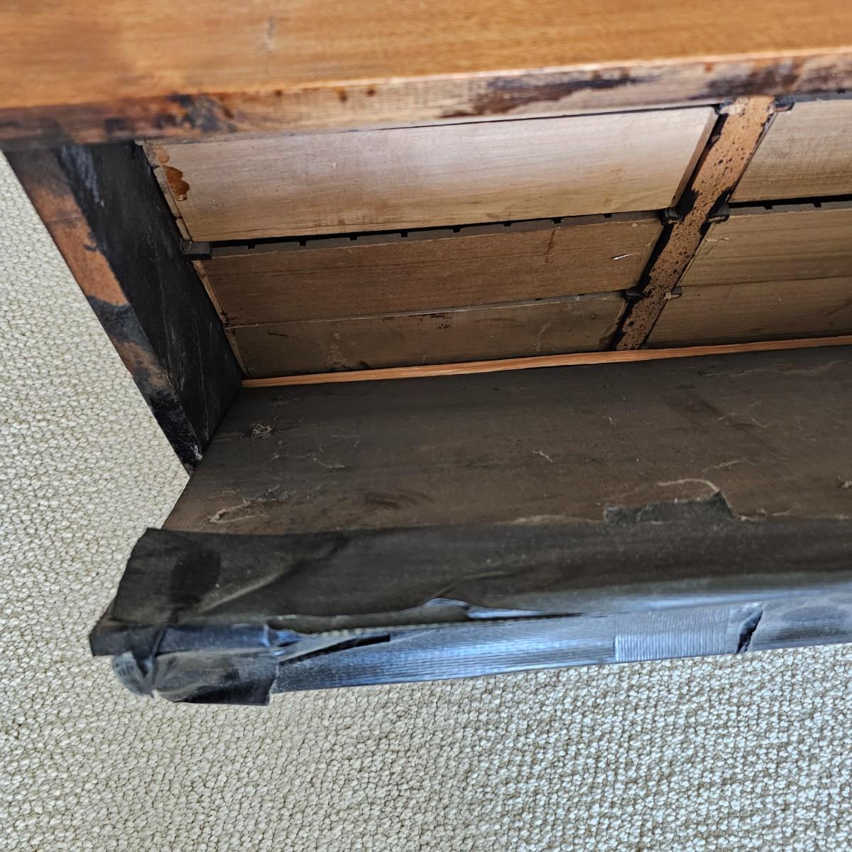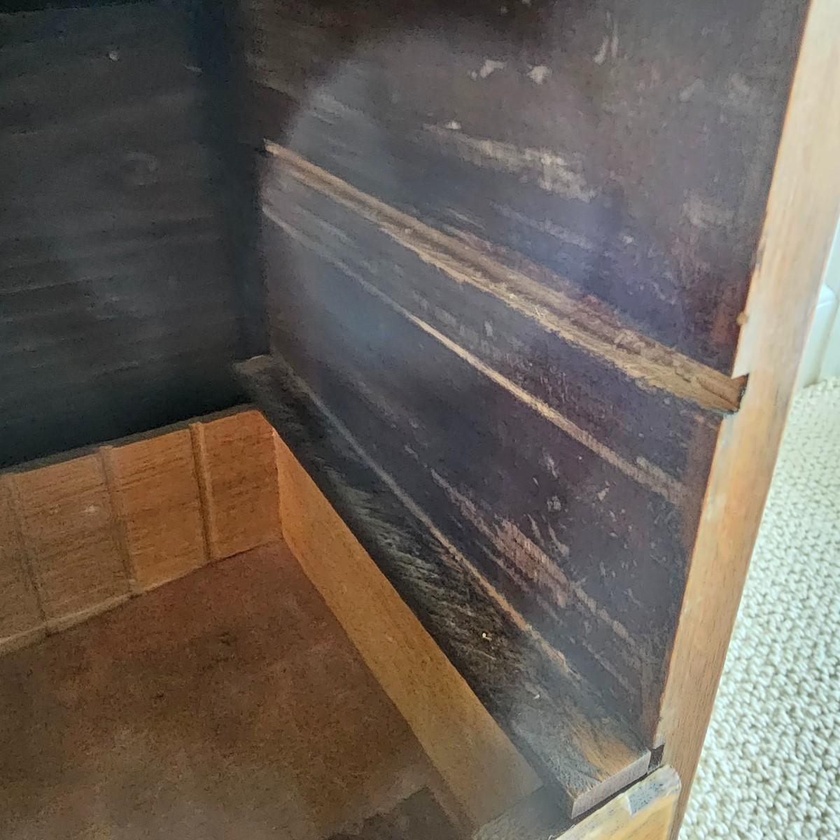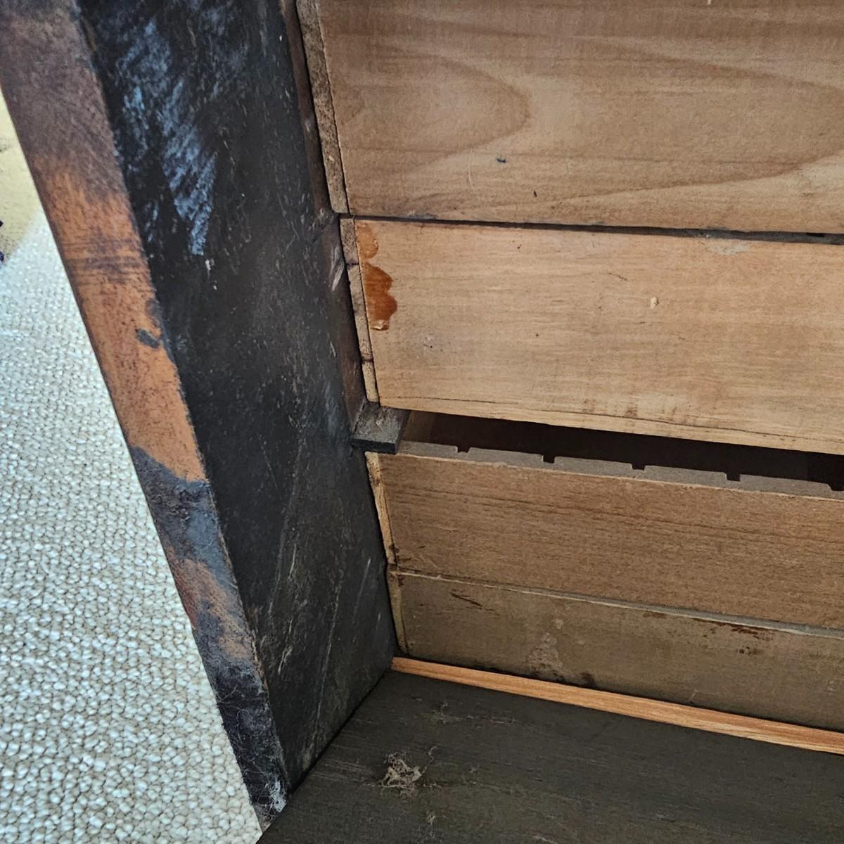 Vintage Apothecary cabinet with 15 drawers. Each drawer has finger pull opening. Cabinet is solid wood, measures 13" x 36" x 17.5"H. Back to cabinet is loose, has been taped in place, will need some repair. See photos for details. Local pickup only.