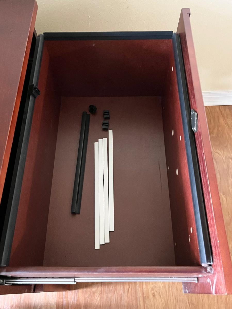 No brand name found ~ no key found ~ Drawers slide easily ~ 28” H x 24” W x 17” D