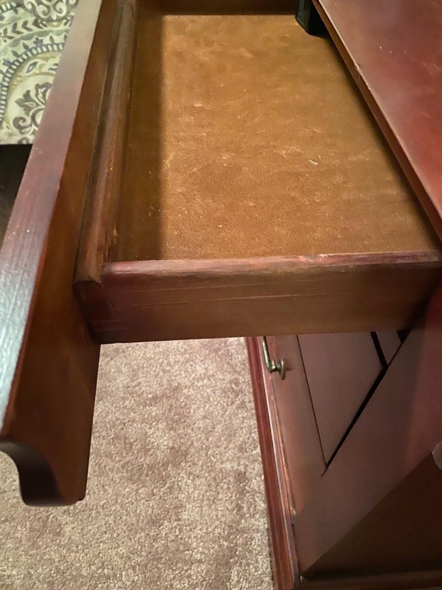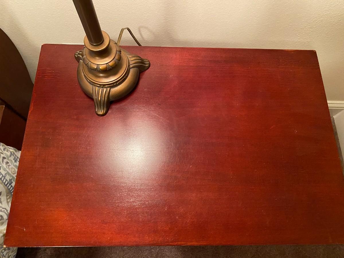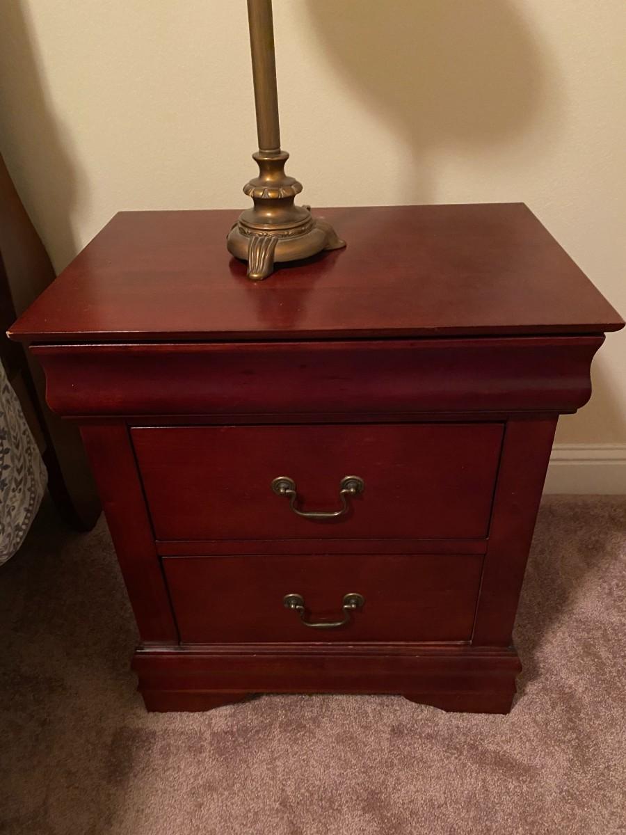 Wooden 3-drawer nightstand. Top drawer is felt lined and drawers are dovetailed. A few minor scratches, otherwise in very good condition. Approx. 24" W x 16" D x 26-1/2" H