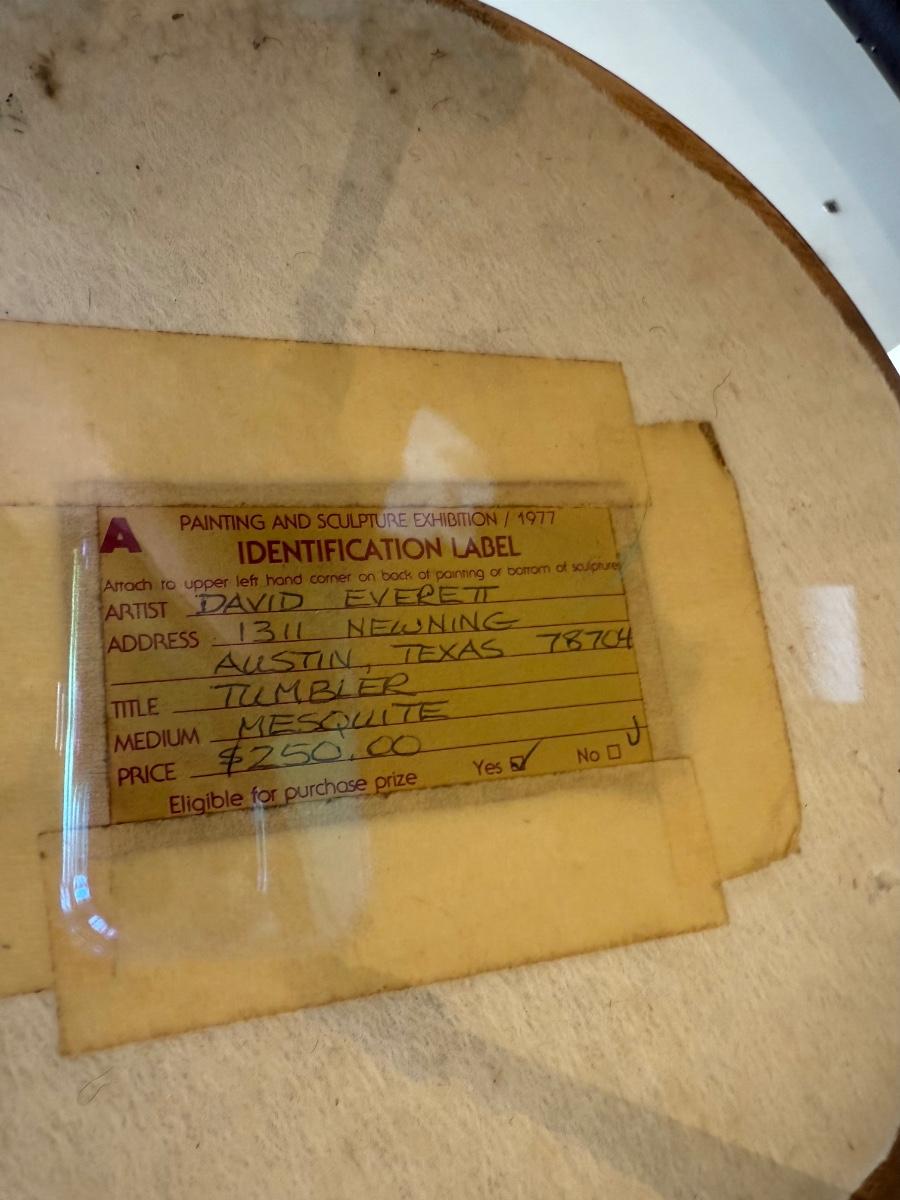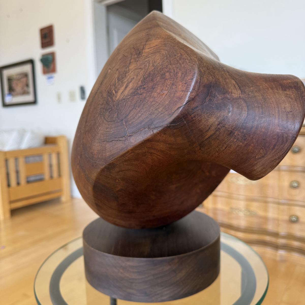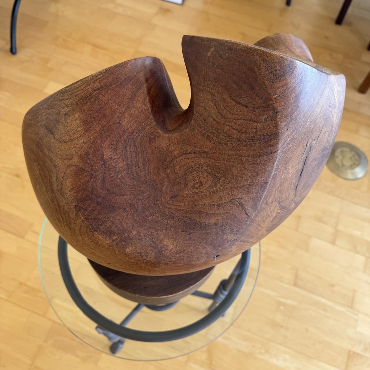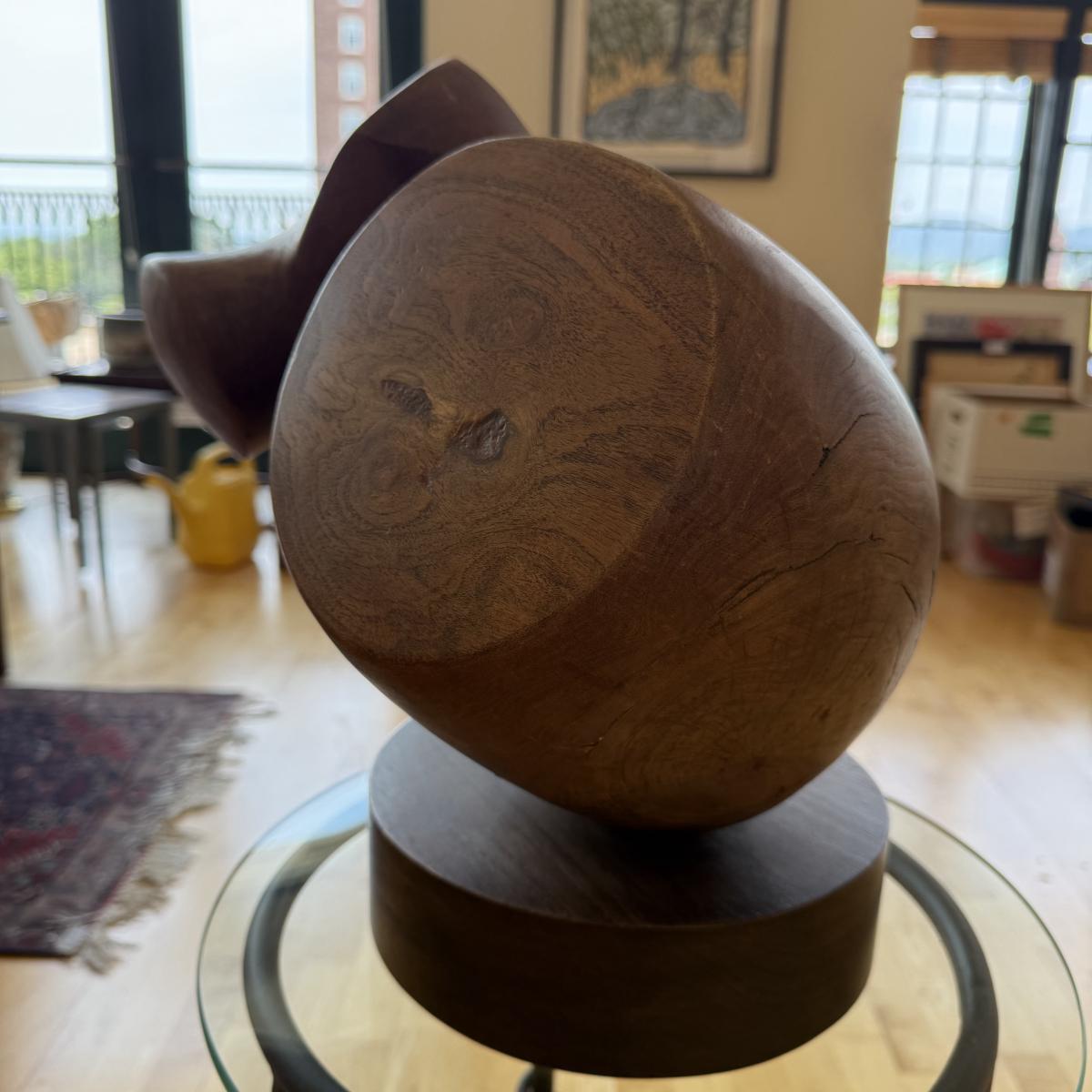 This lot contains a beautiful abstract solid wood sculpture. This piece measures approximately 15” x 8” x 14.5”H and is heavy! There is an identification label on the bottom which says it’s made by artist David Everett and was purchased in 1977, see pictures for details. Stand not included but is in another lot in this sale. Shipping available. Shipping can be costly. We suggest contacting our preferred local shipping provider, Postage Express, with dimensions and getting an estimate before bidding: (828) 255-9250 or shipping@postageexpressnc.com.
