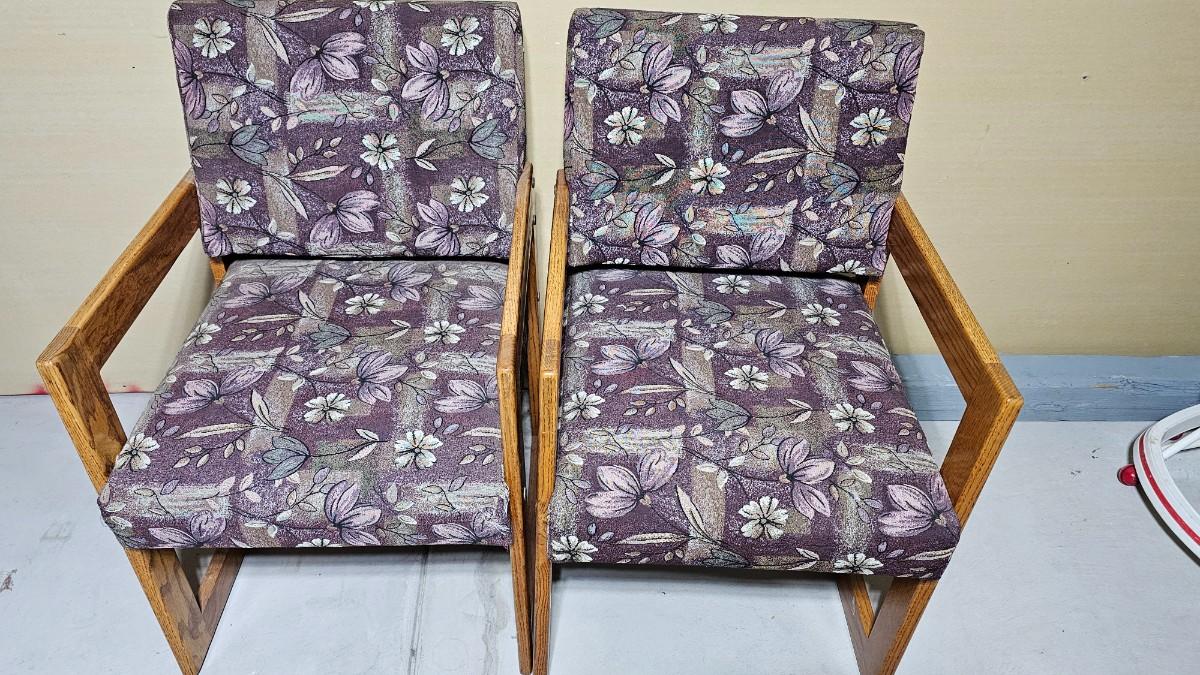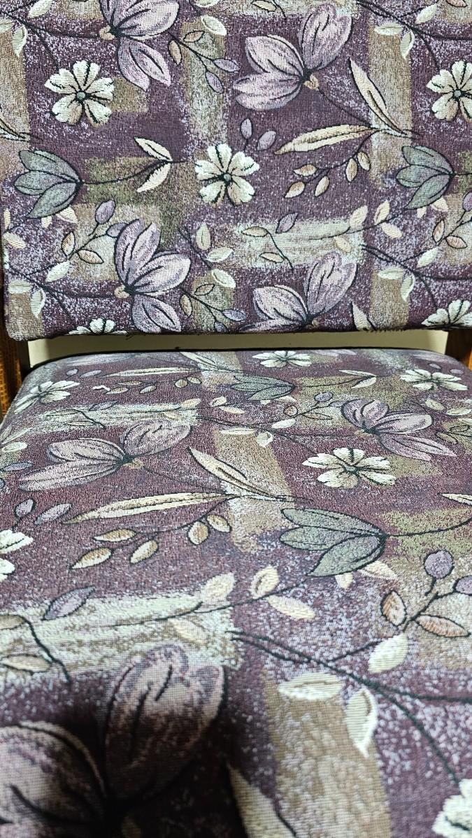 wooden and flowered fabric chairs