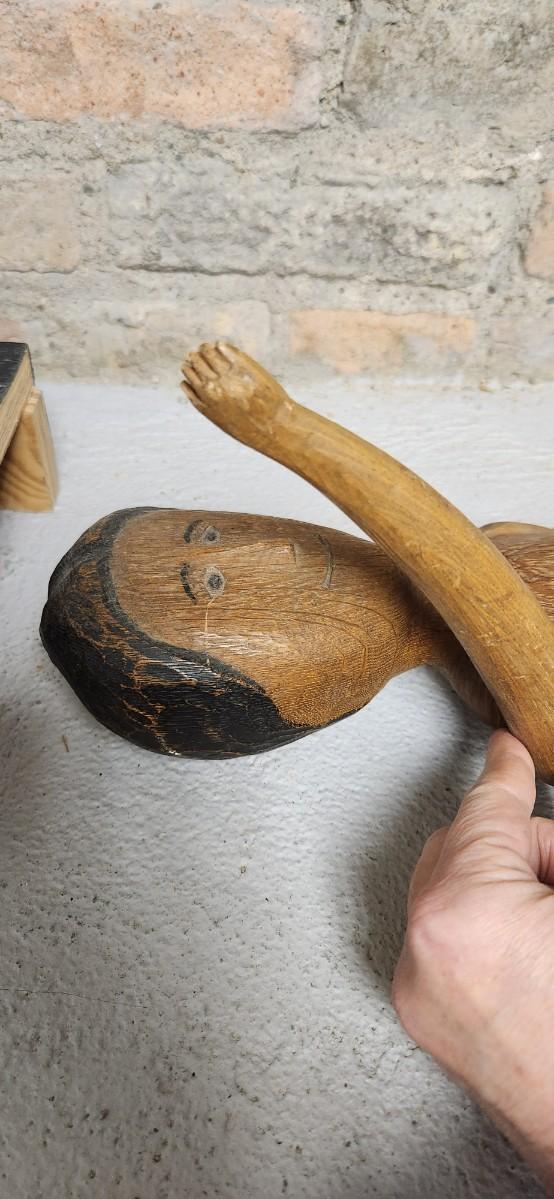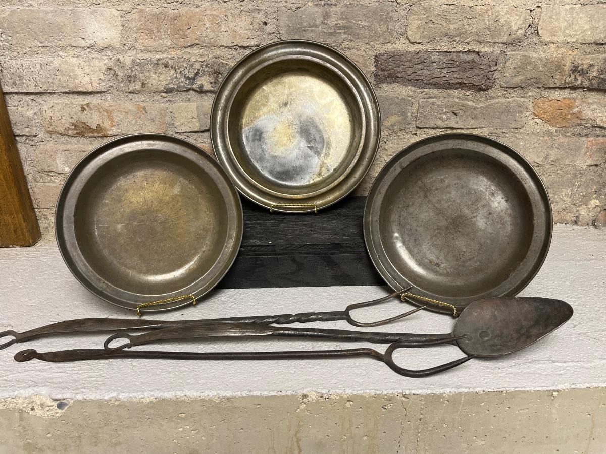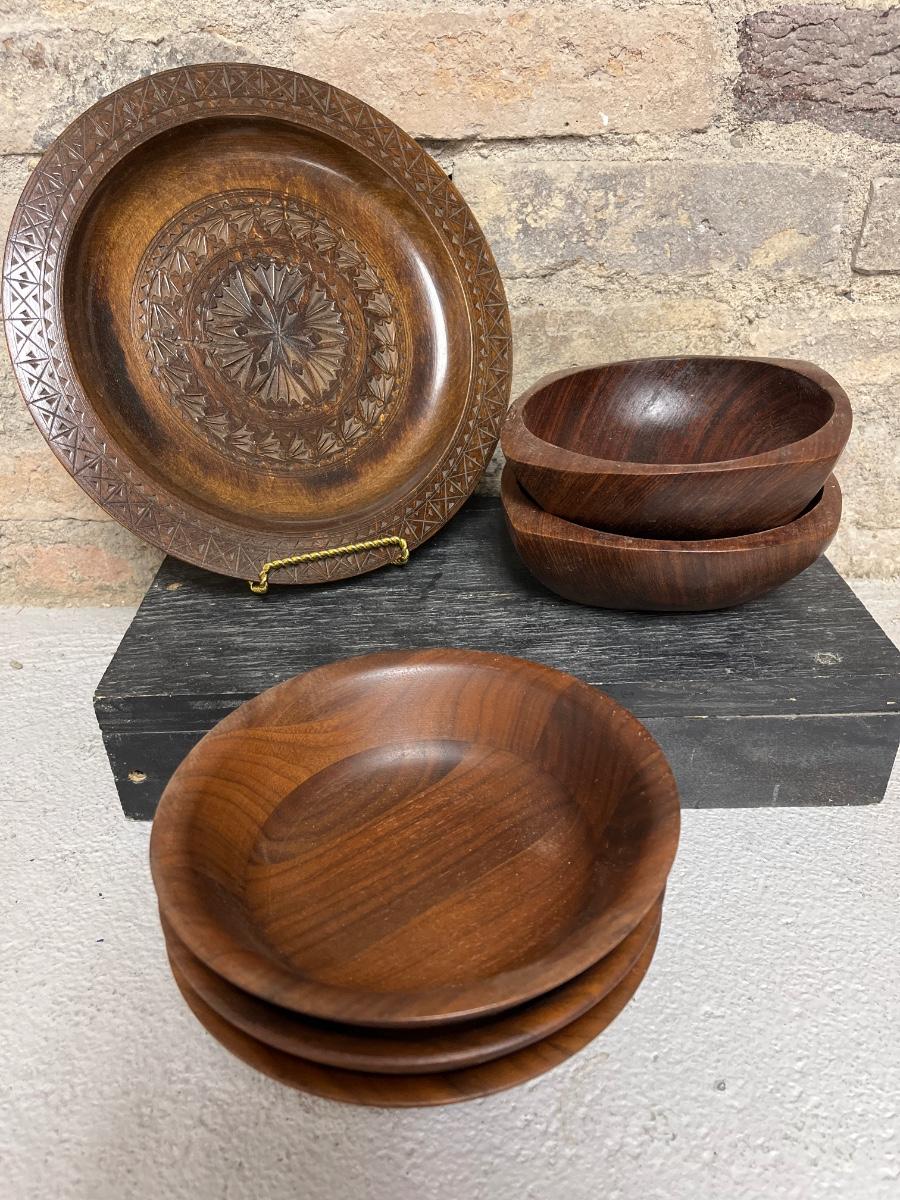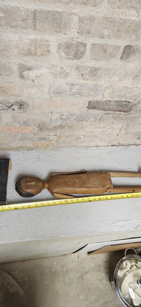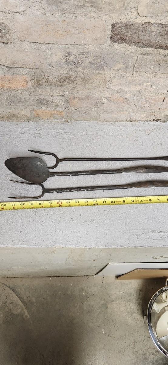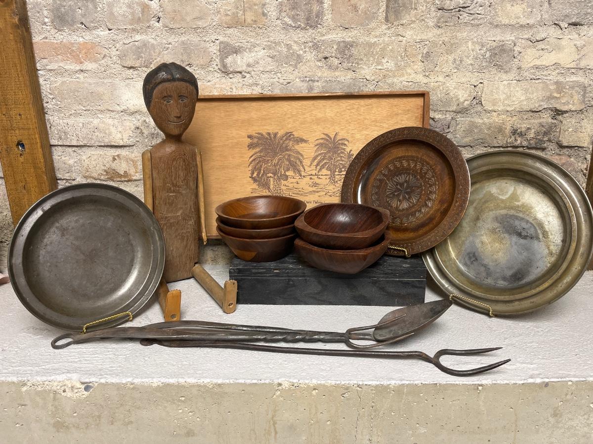 Very Old Wooden Doll - MCM bowls, plate and tray. The forged utensils...think bonfire. The metal plates are old..and not the standard Army issue I usually see. NEAT