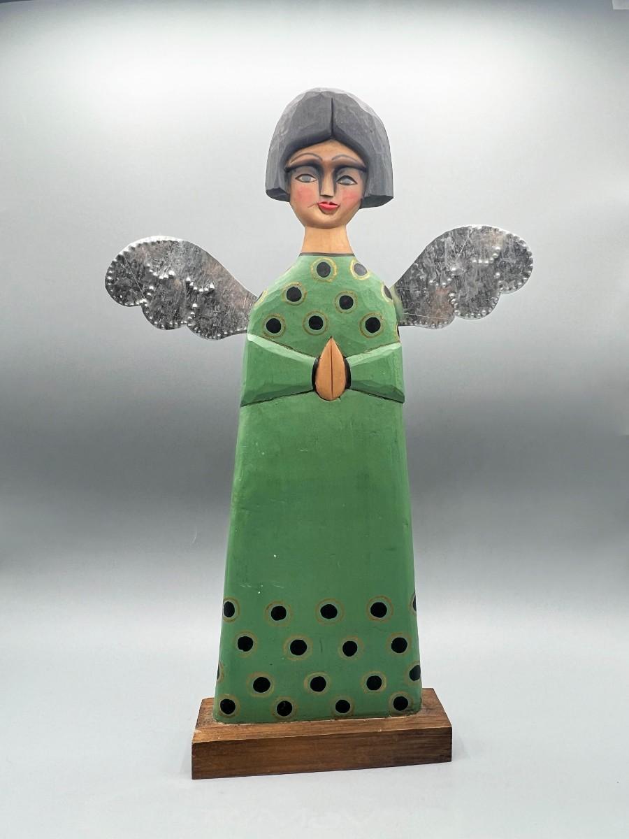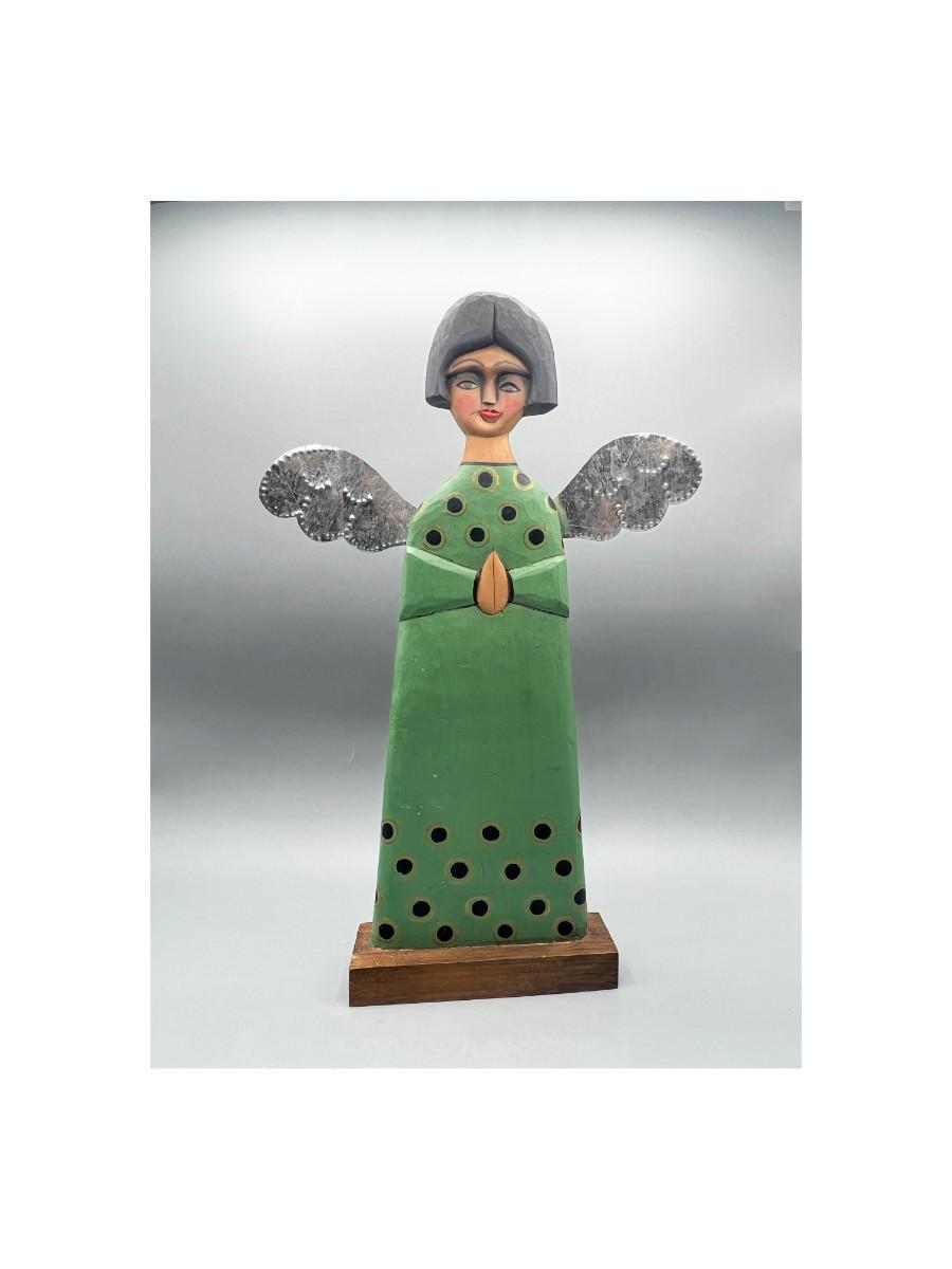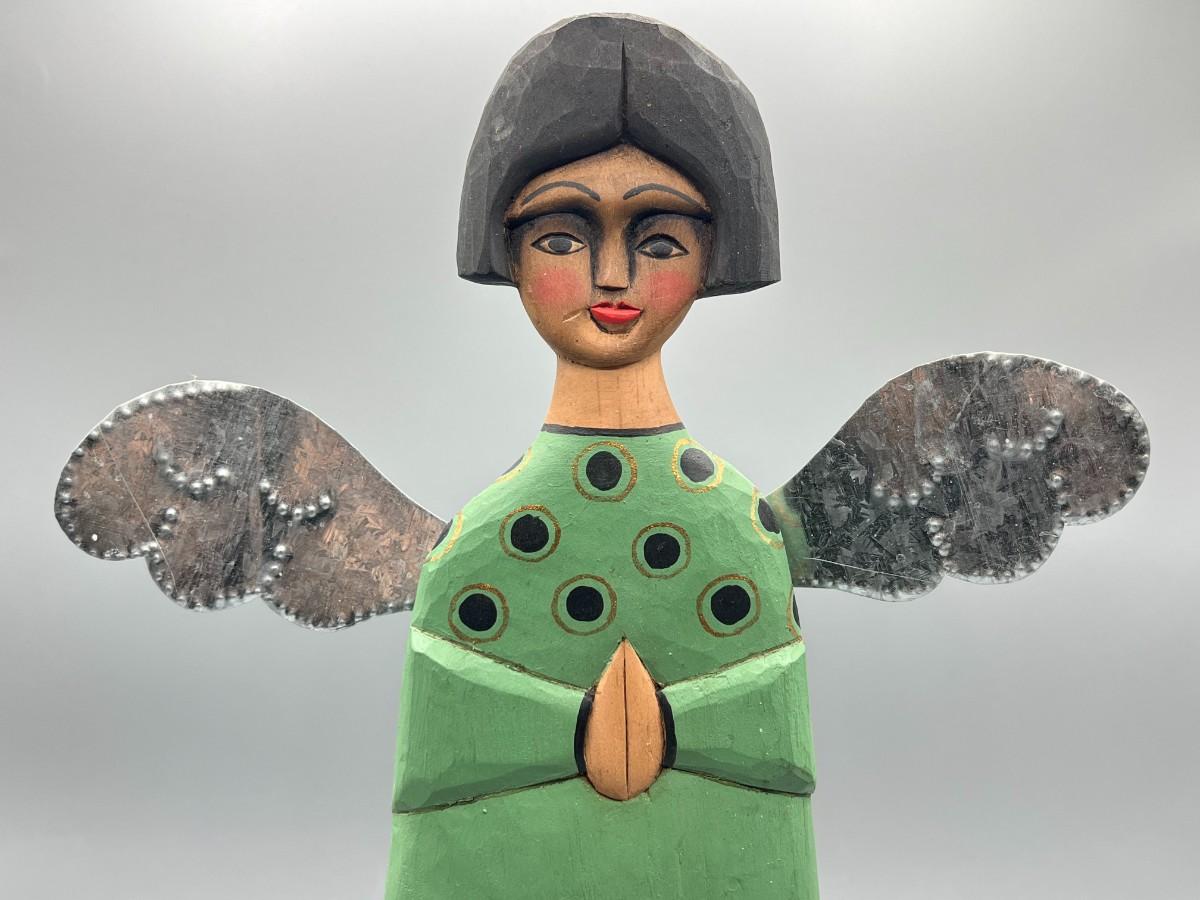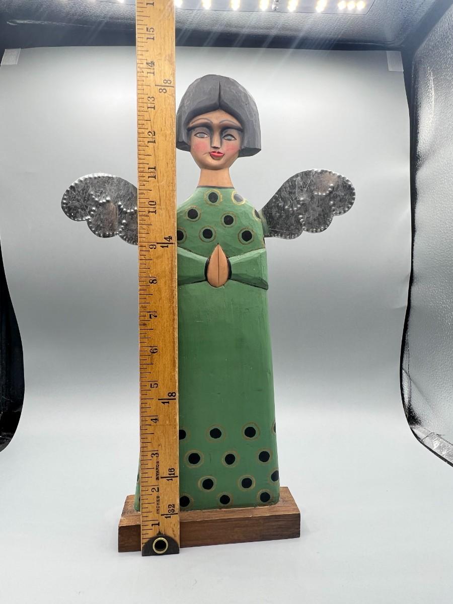 Wooden Angel Indoor Outdoor Decorative Folk Art, there is no significant damage to the piece and is in good displayable condition. Check pictures for more details and for sizing.