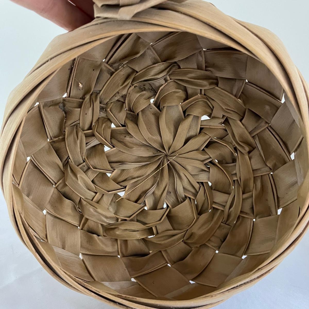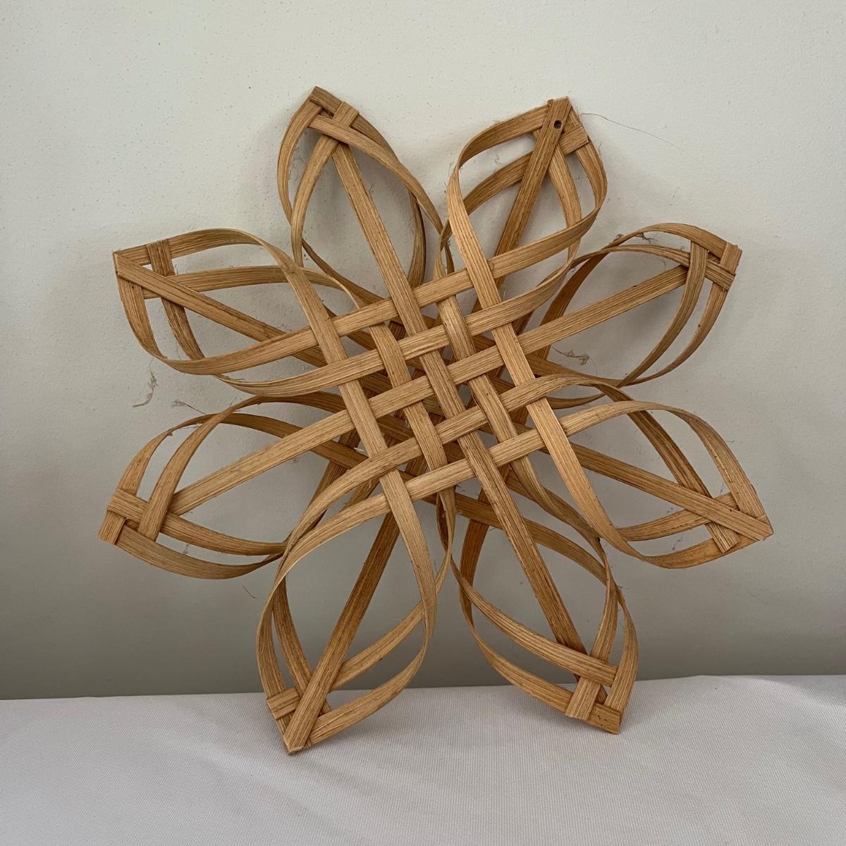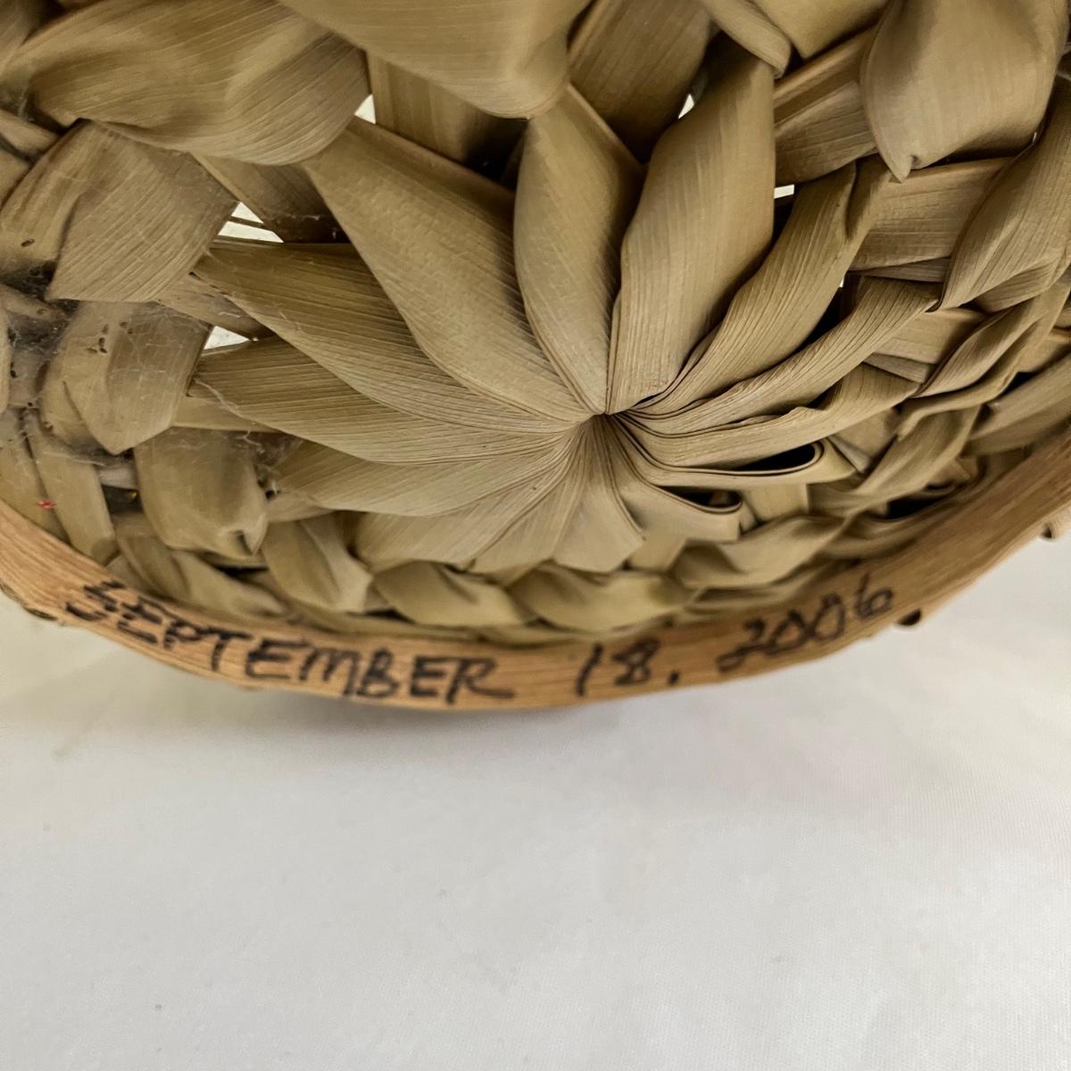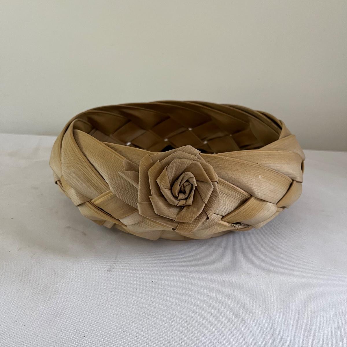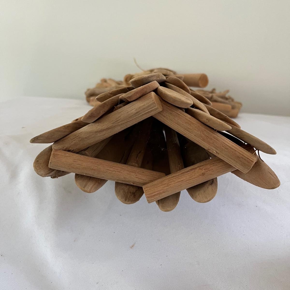 This angel is made from many pieces of wood that are nailed together. Also includes a Woven basket made in Maui and a star shaped woven wall hanging. Angel measures 3.5” x 12” x 19”.