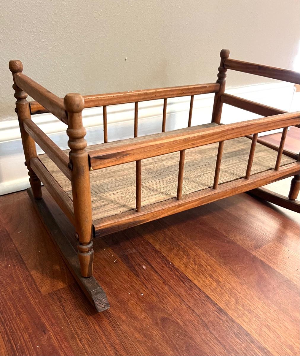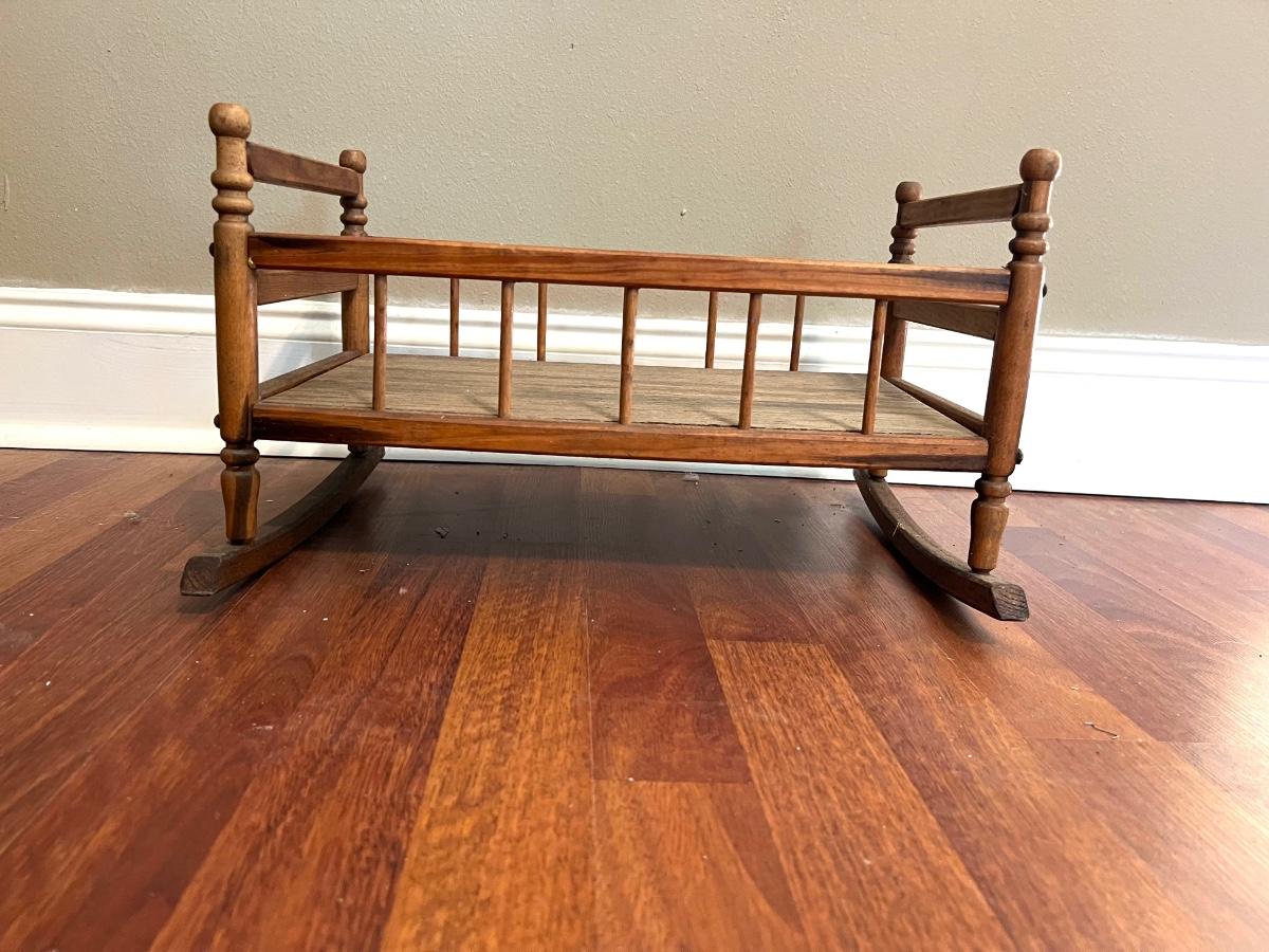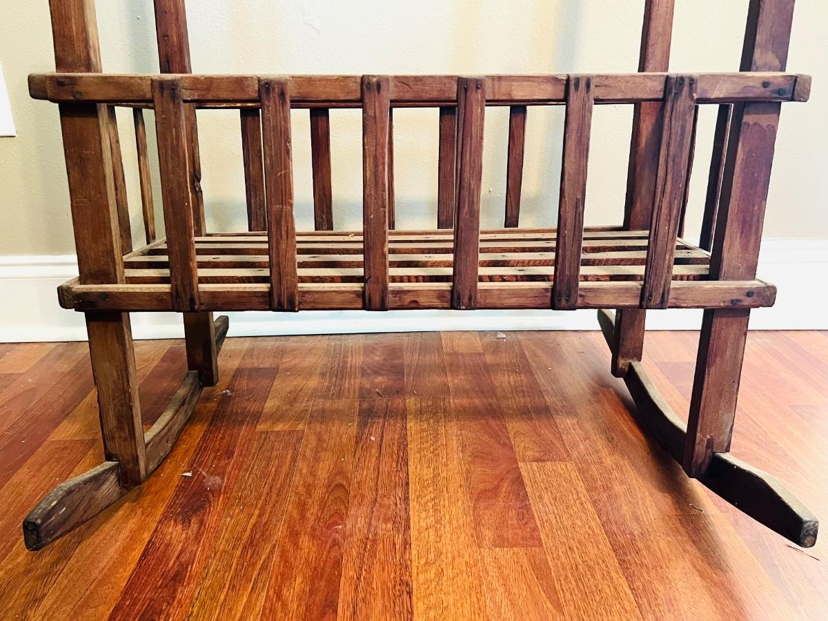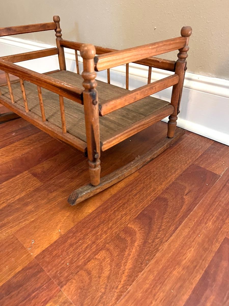 Set of WOODEN Baby Doll Rockers, probably made by paw paw! Largest Measures 26 inches long, 12 inches wide, and 30 inches tall. Smaller one measures 17 1/2 inches long 11 inches wide 11 inches tall.