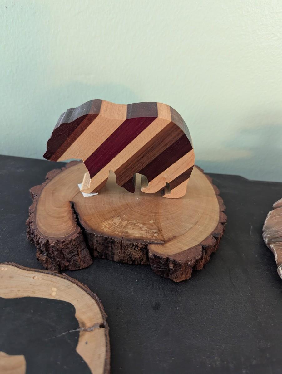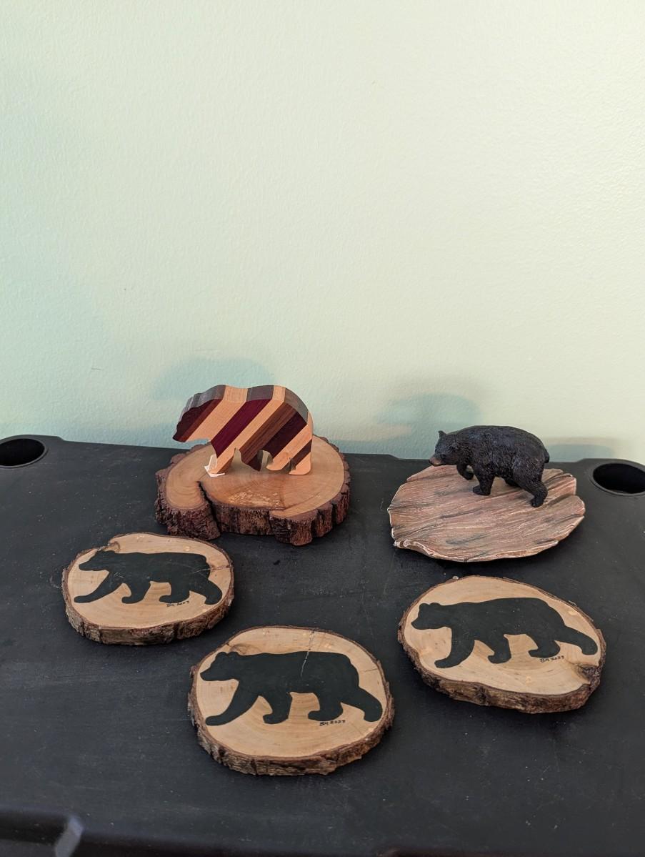 Wooden Bear Figure Coaster & Trinket Dish 1 Piece Is Signed (HW)