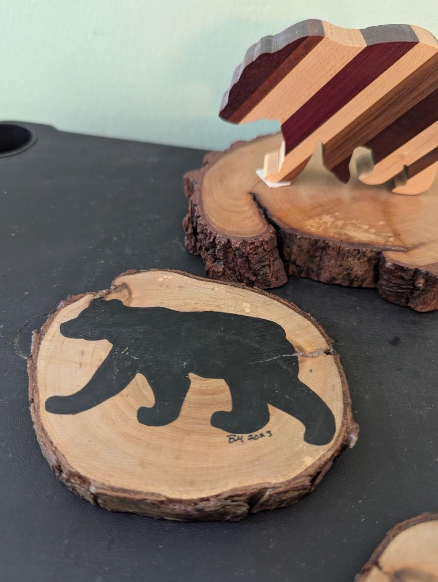 Wooden Bear Figure Coaster & Trinket Dish 1 Piece Signed (HW)