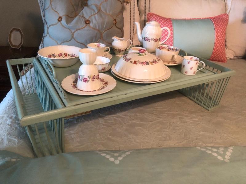Wooden bed tray with dish setting