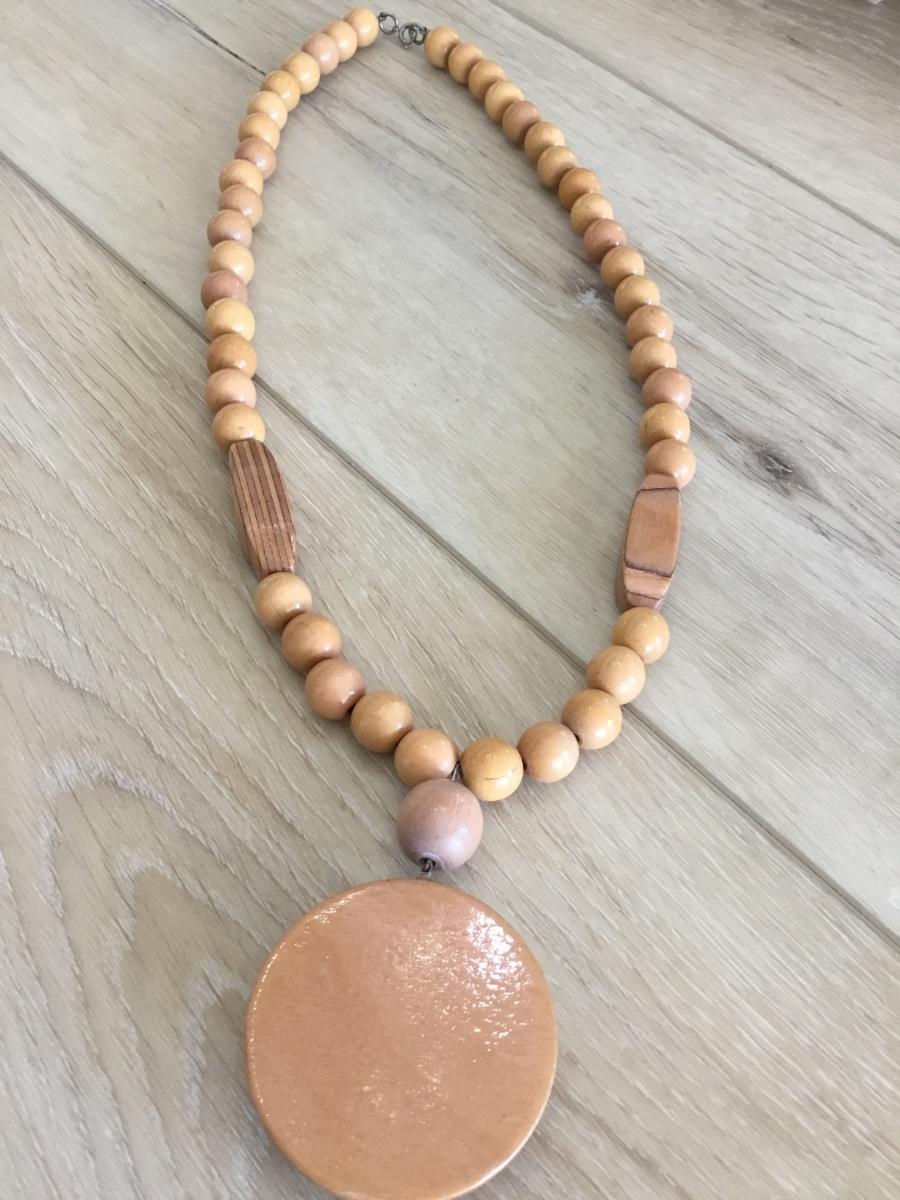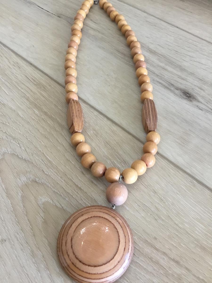 Wooden beer with wooden medallion, women, statement, necklace