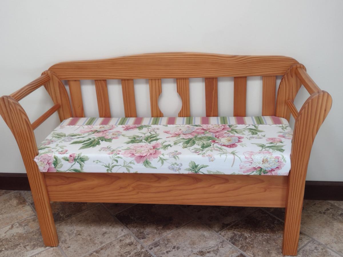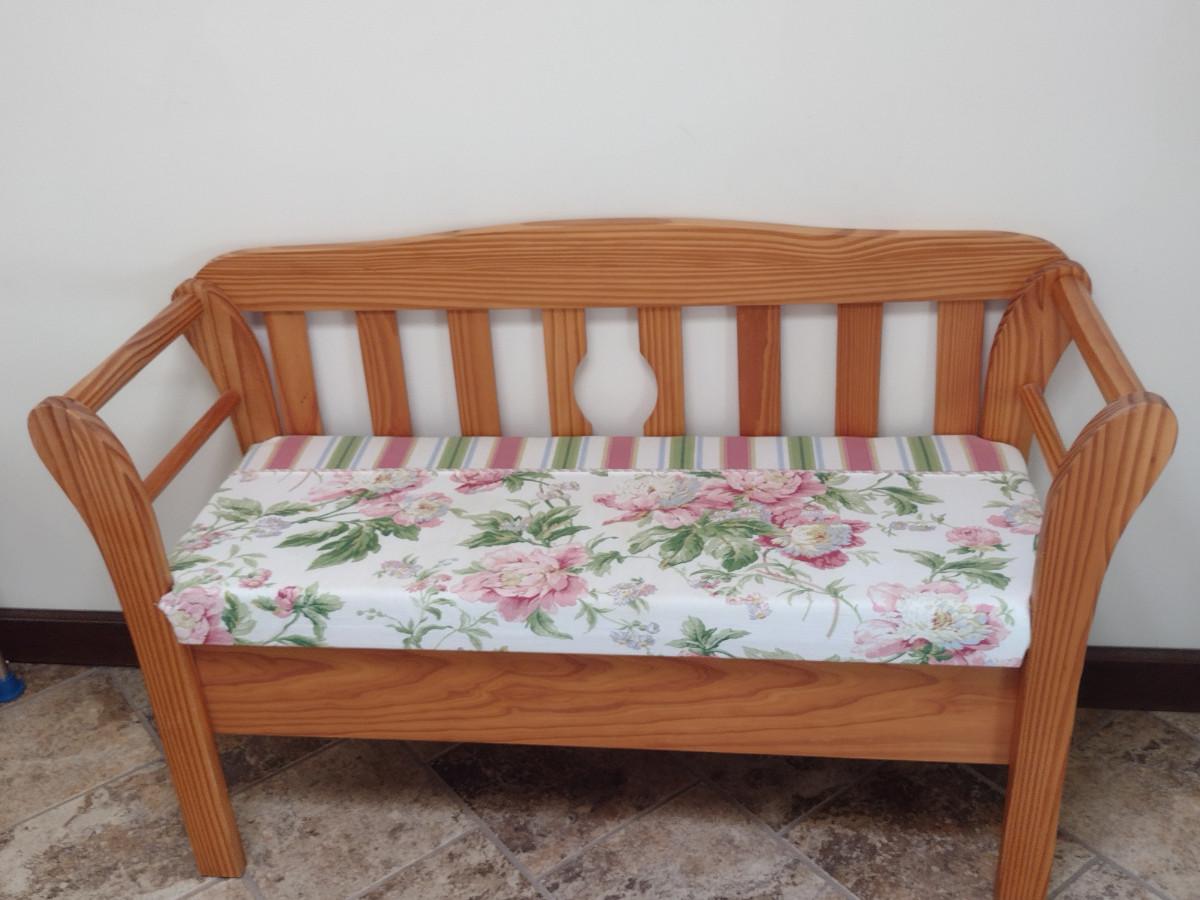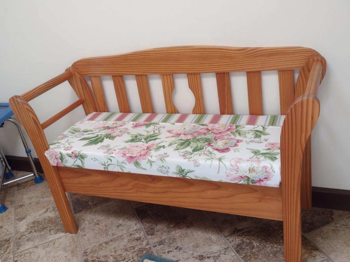 Wooden Bench with Cushioned Seat- Approx 48" Long