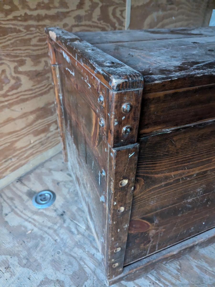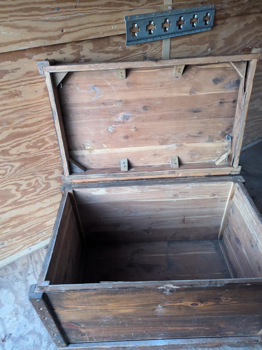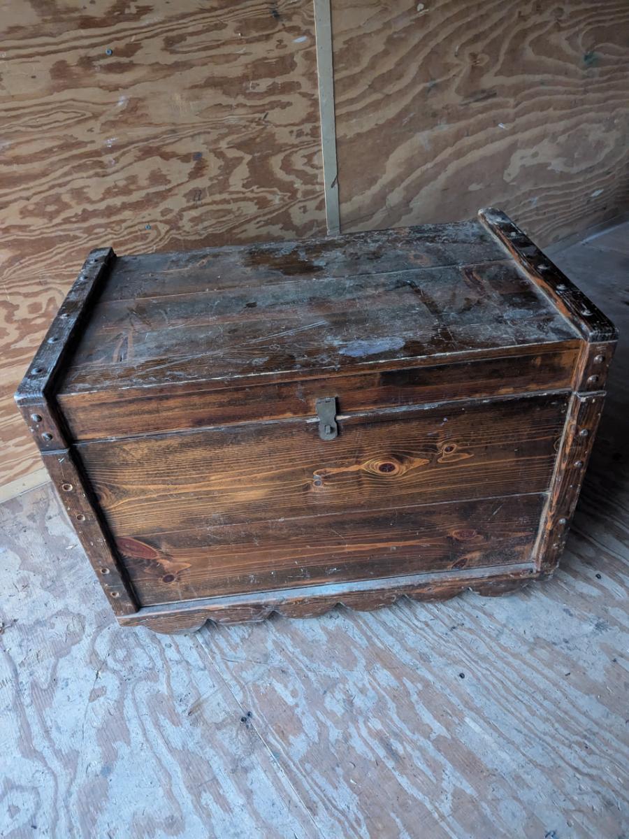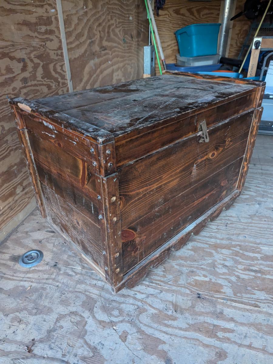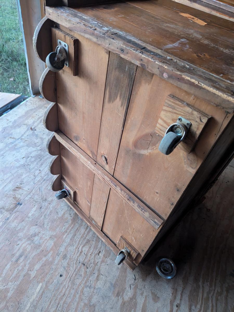 this one has wheels! It is a fixer upper -some sanding and paint or stain or keep the rustic look and just clean it. Use it for blankets, or toys or whatever you have that needs to be put in storage.