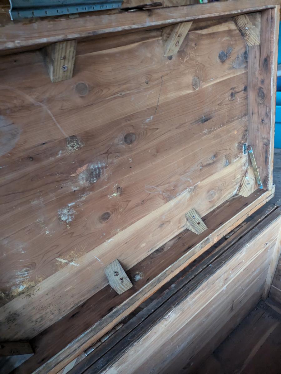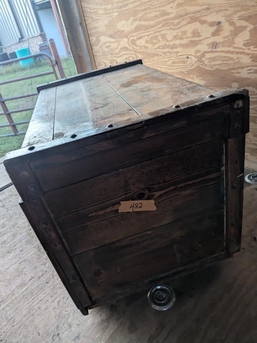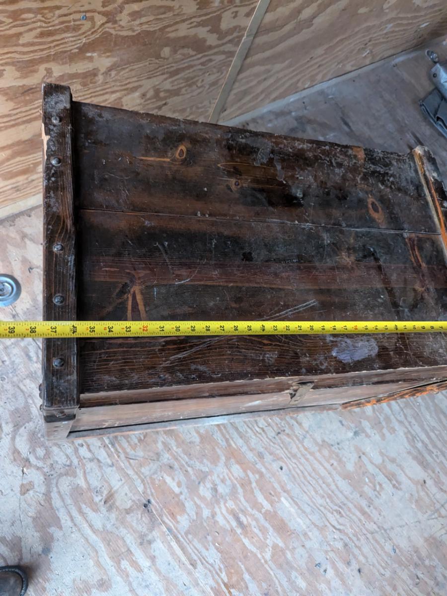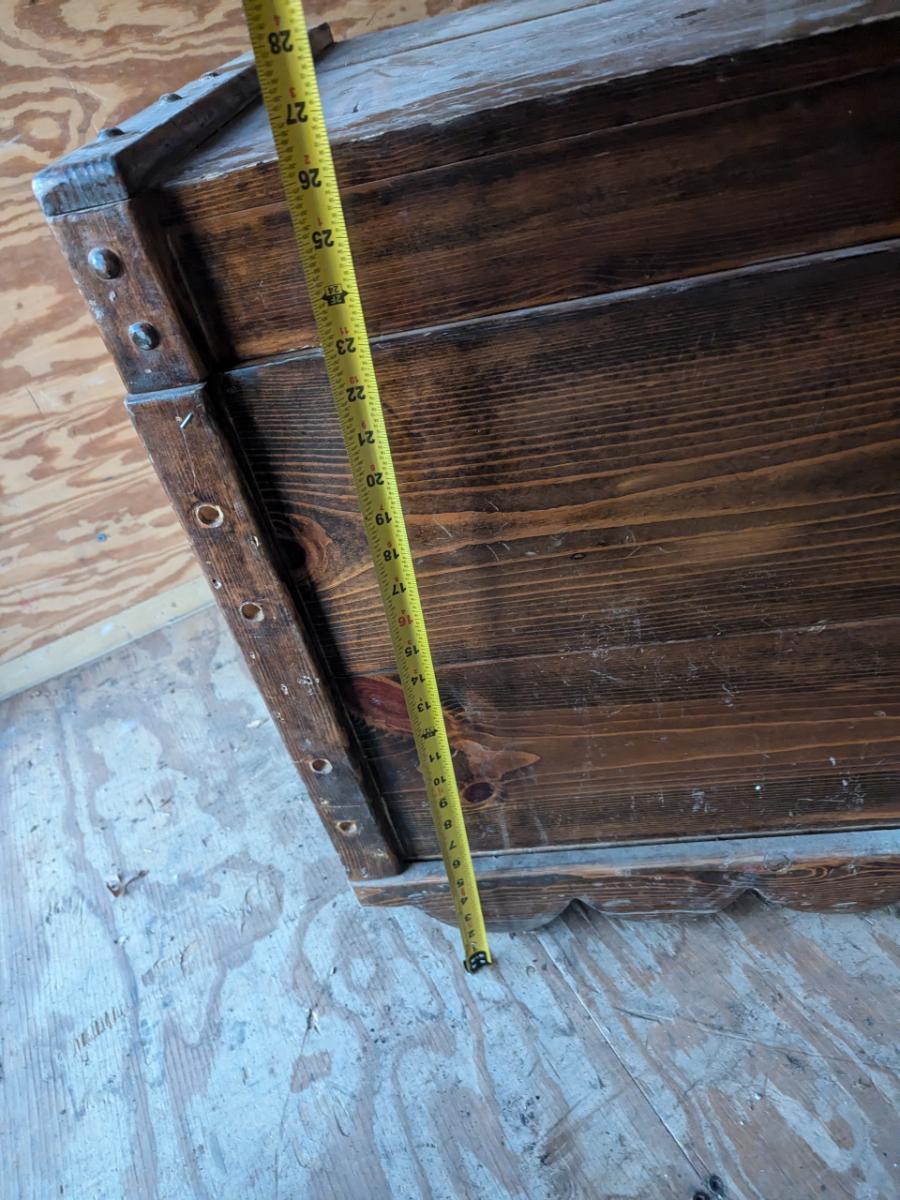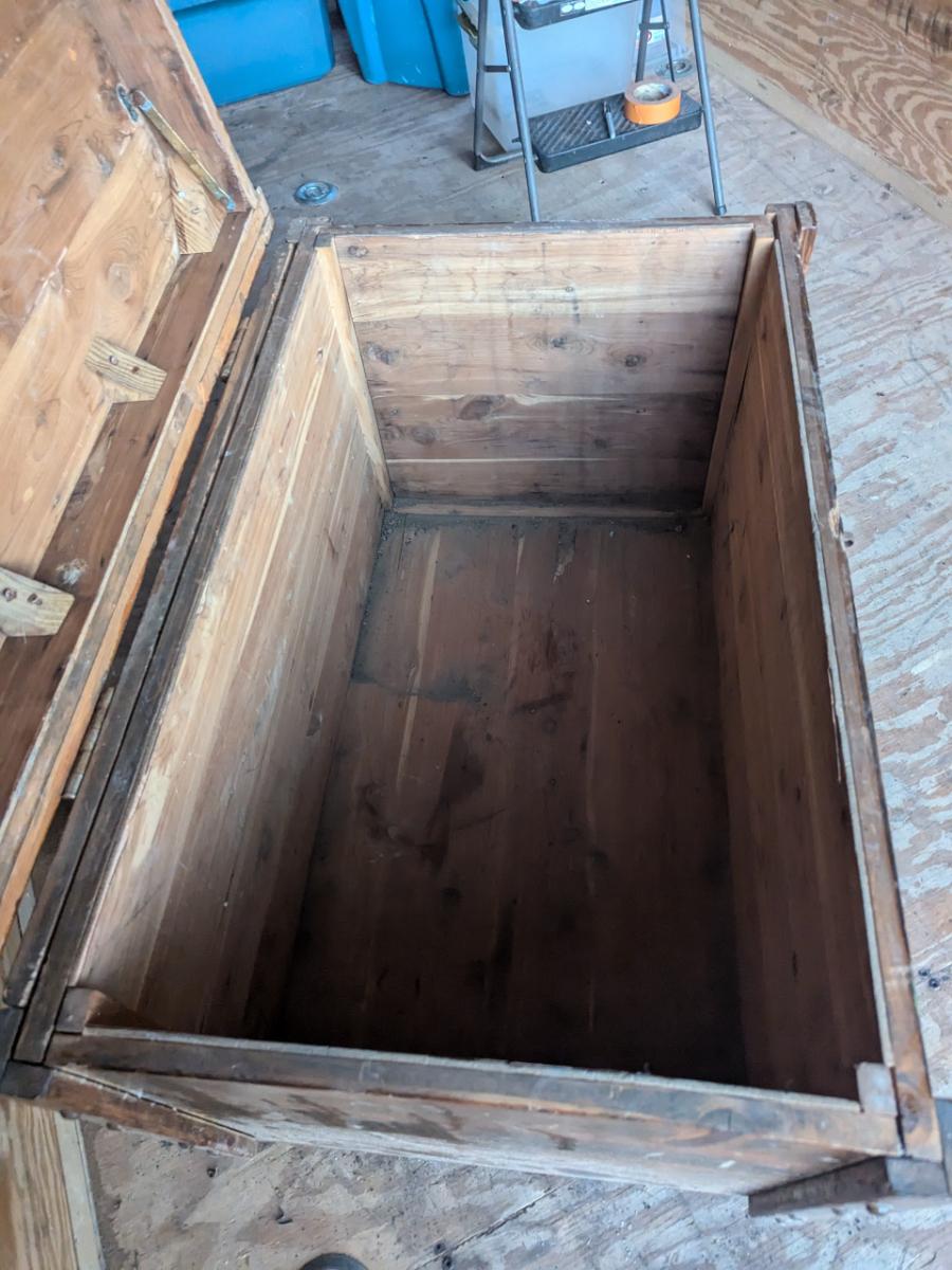 this one has wheels! It is a fixer upper -some sanding and paint or stain or keep the rustic look and just clean it. Use it for blankets, or toys or whatever you have that needs to be put in storage.