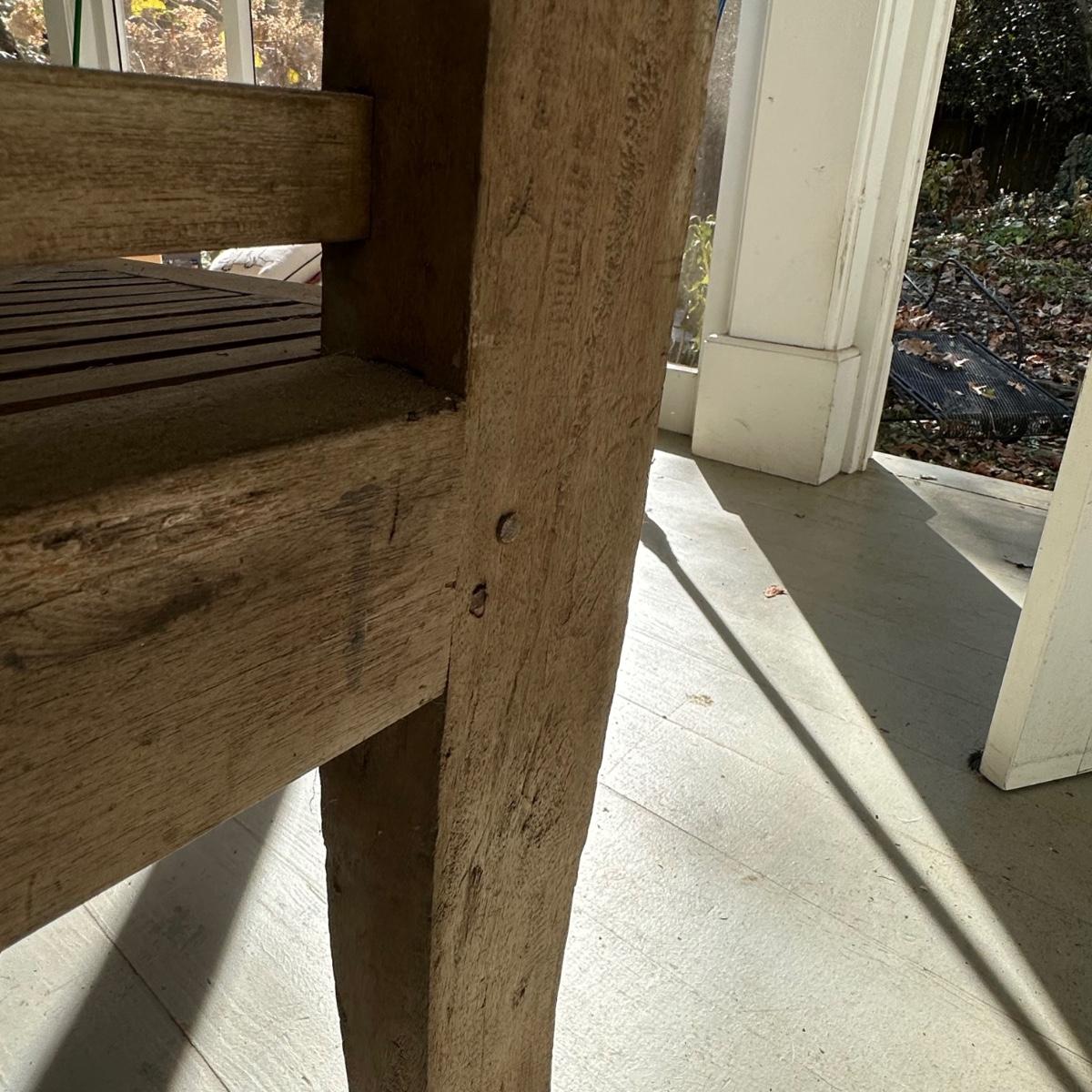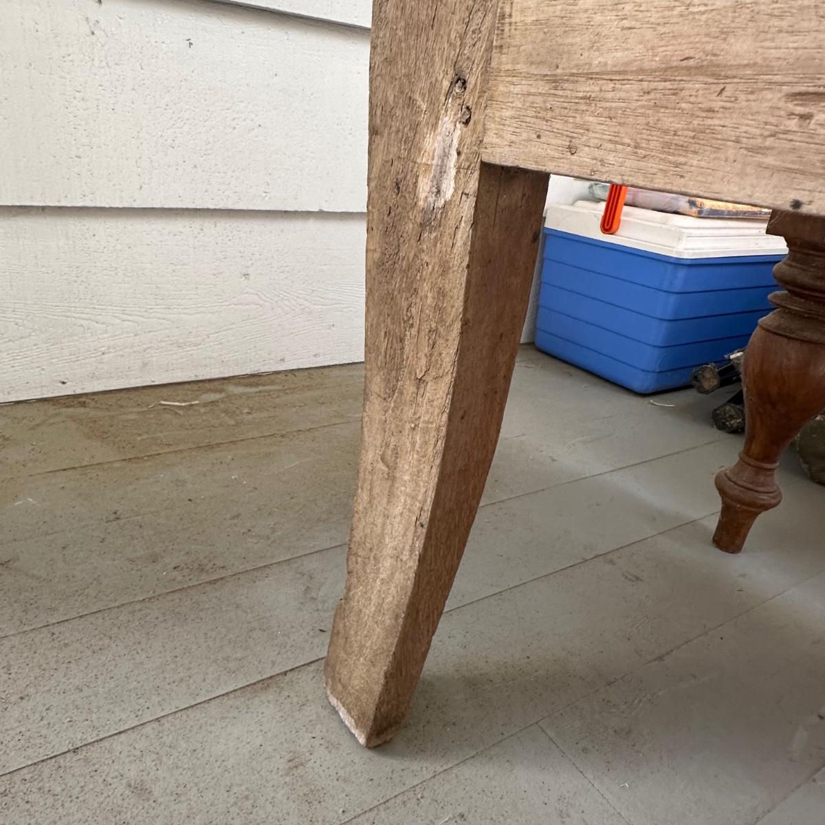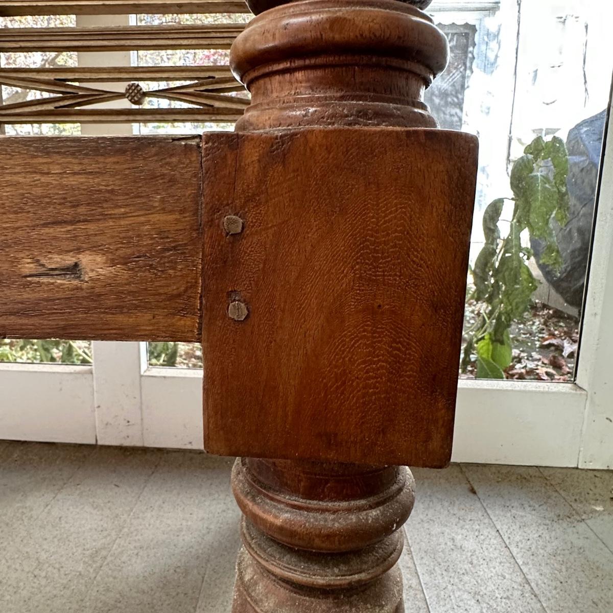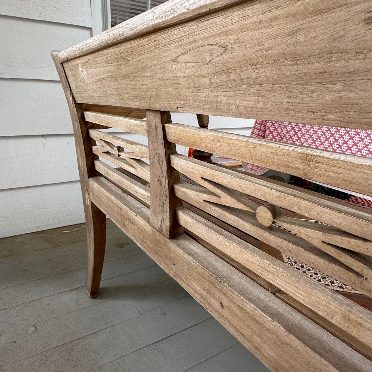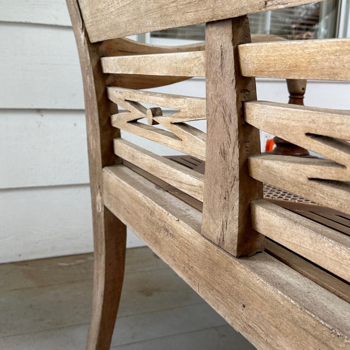Four seat wooden bench with woven seat accents. Measures 83” x 22” x 34”H. Bench has some wear from age, but is still in good, sturdy condition. Local pickup only. Winning bidder must bring assistance to help move and load this item due to its weight and/or size.