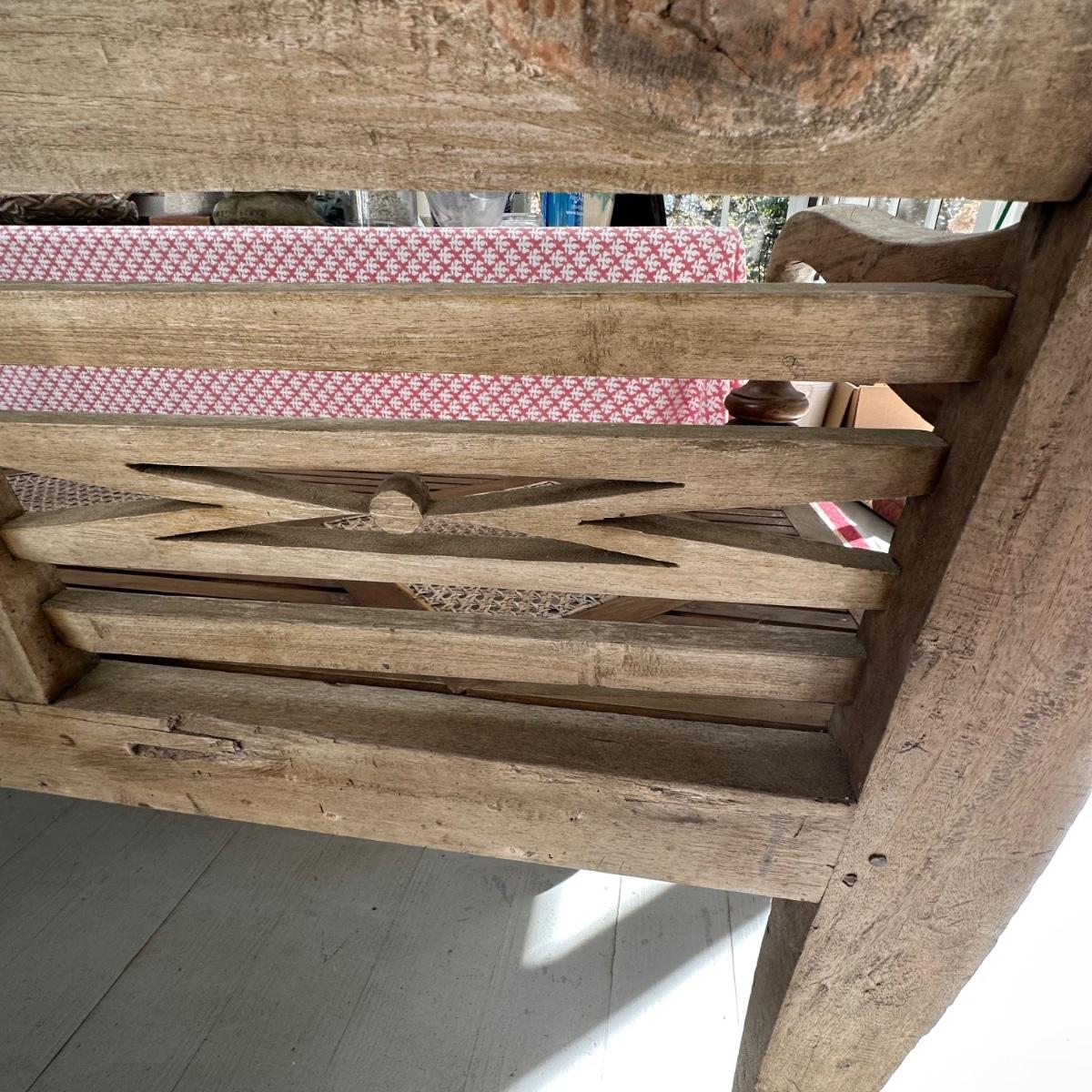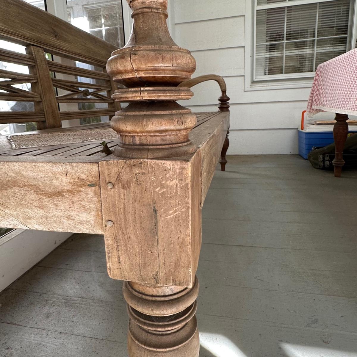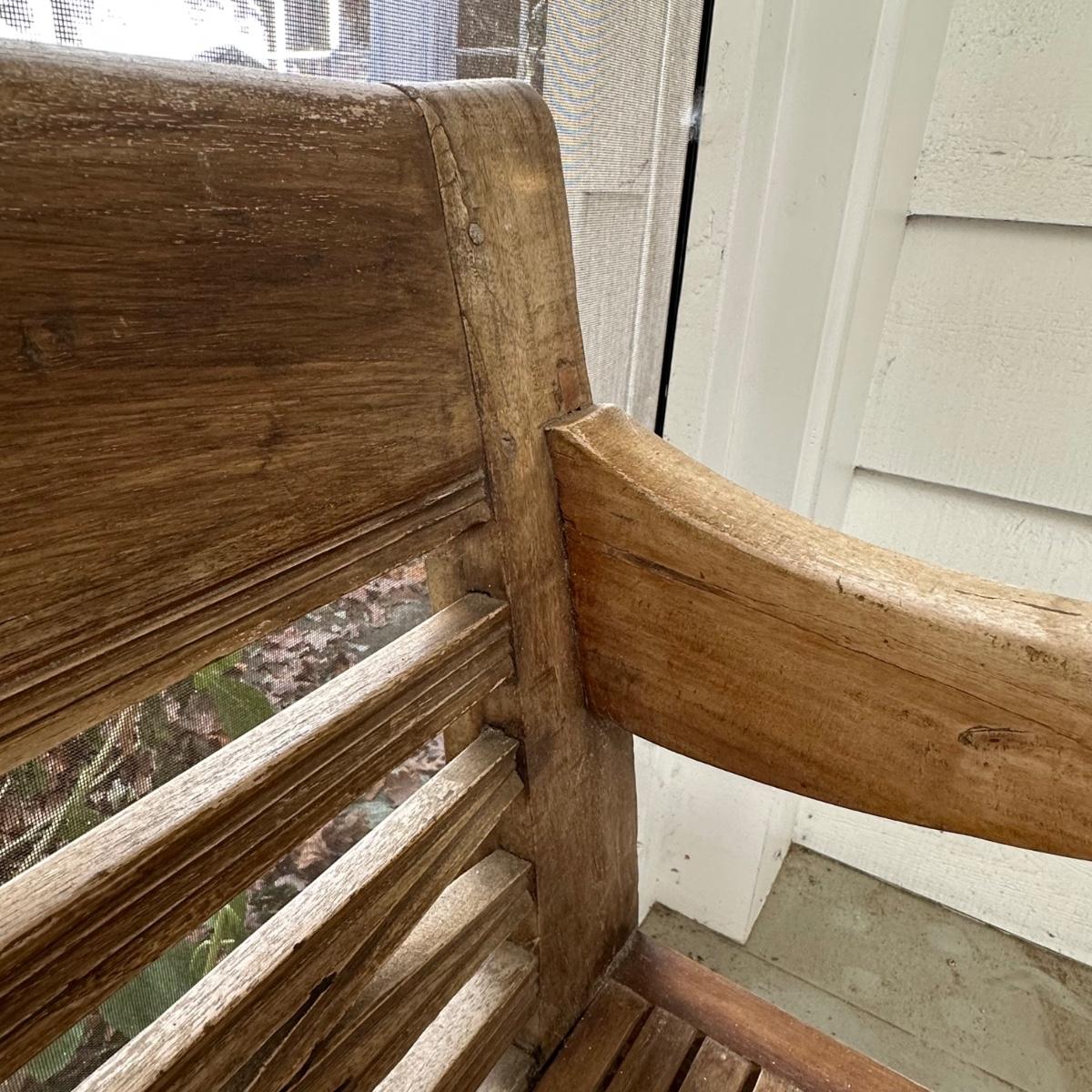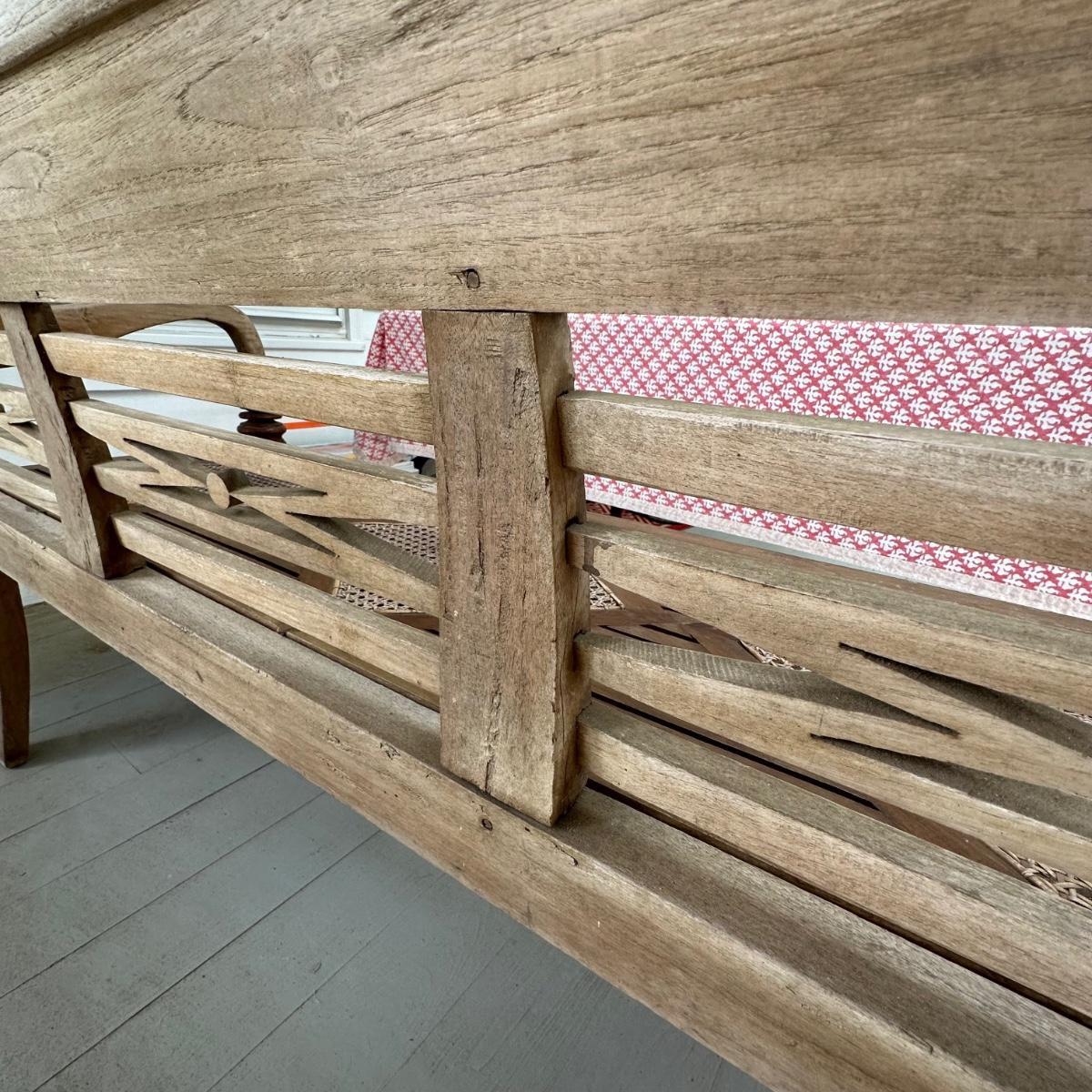 Four seat wooden bench with woven seat accents. Measures 83” x 22” x 34”H. Bench has some wear from age, but is still in good, sturdy condition. Local pickup only. Winning bidder must bring assistance to help move and load this item due to its weight and/or size.