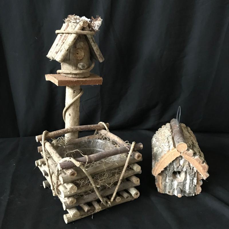 Lot contains one decorative birdhouse/ plant holder, and one functional birdhouse. The smaller birdhouse is approx. 9” x 6” x 6.5”h. No shipping available. Local pickup only in Hendersonville, NC.