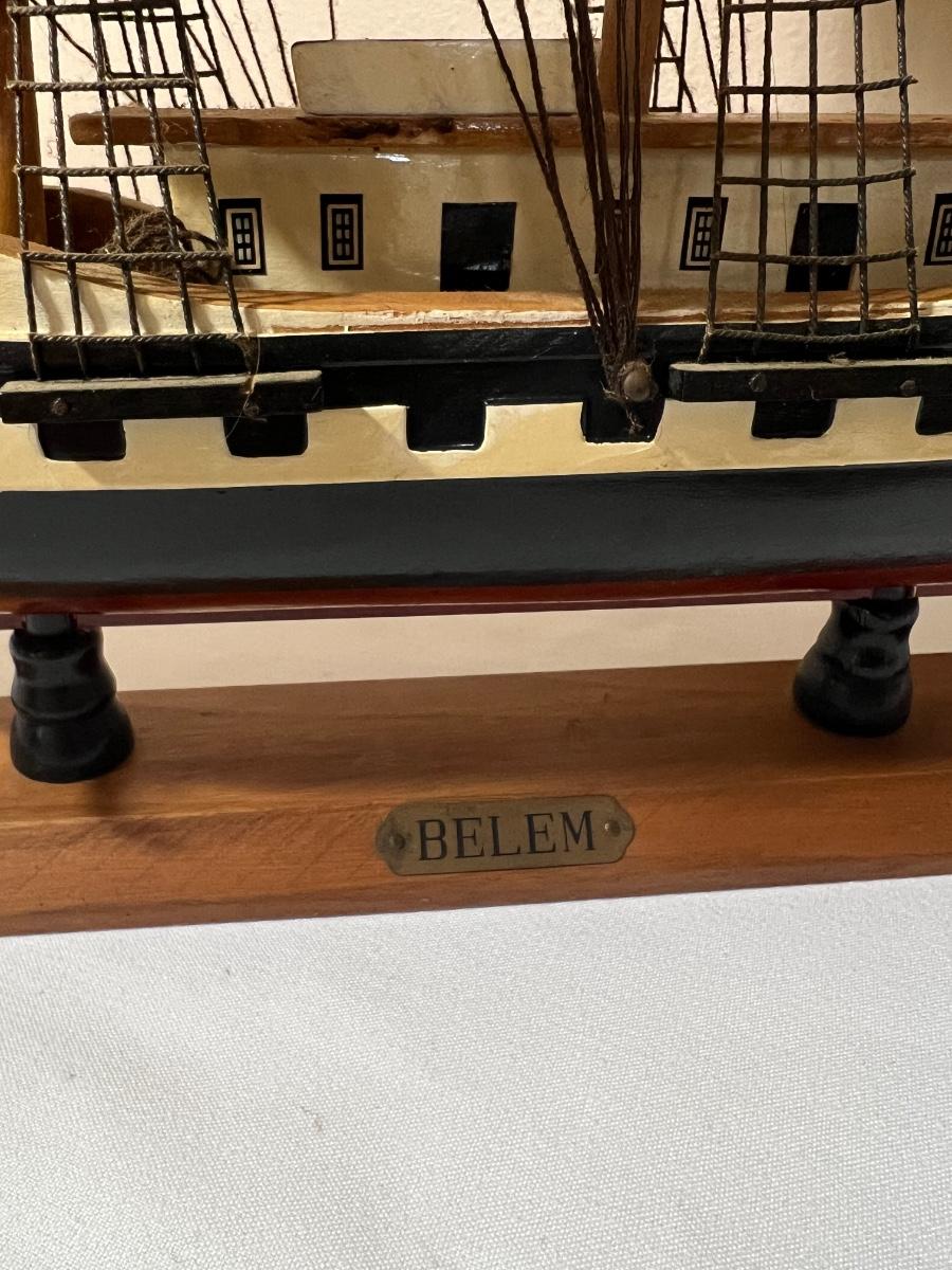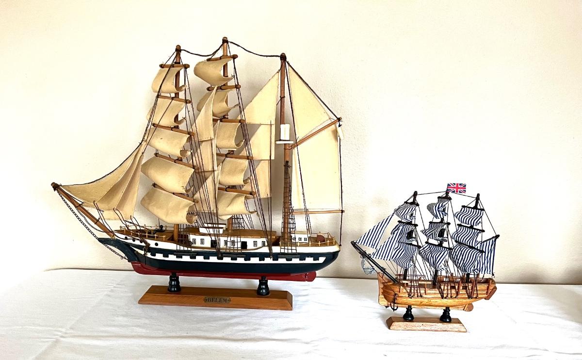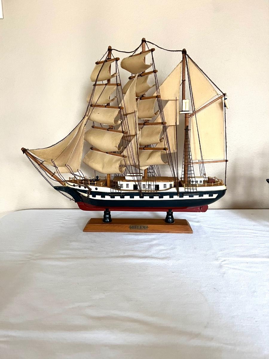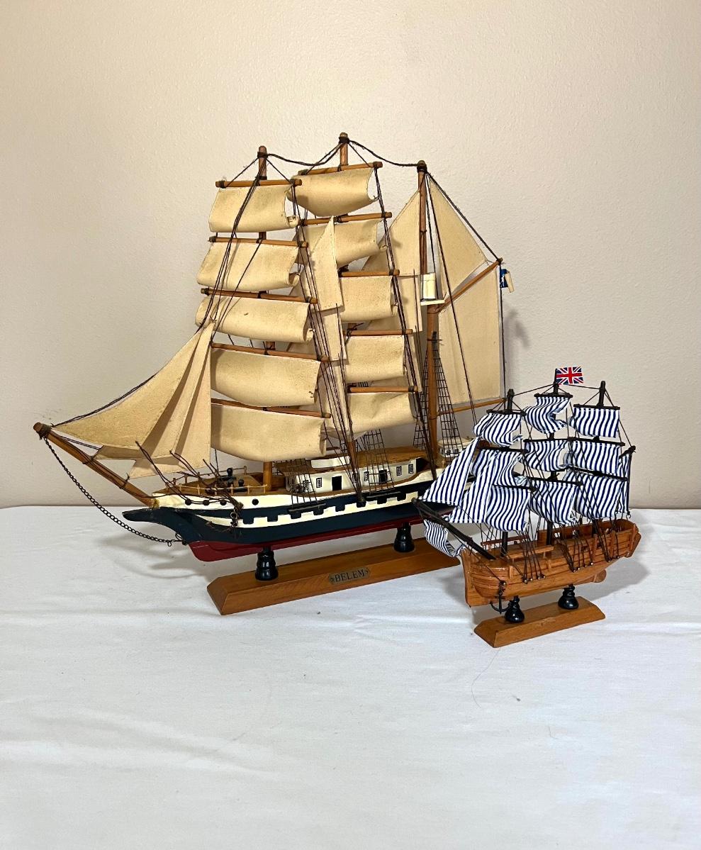 Set of 2 wooden boats. Large boat BELEM measures 18 inches tall, 19 inches long **see