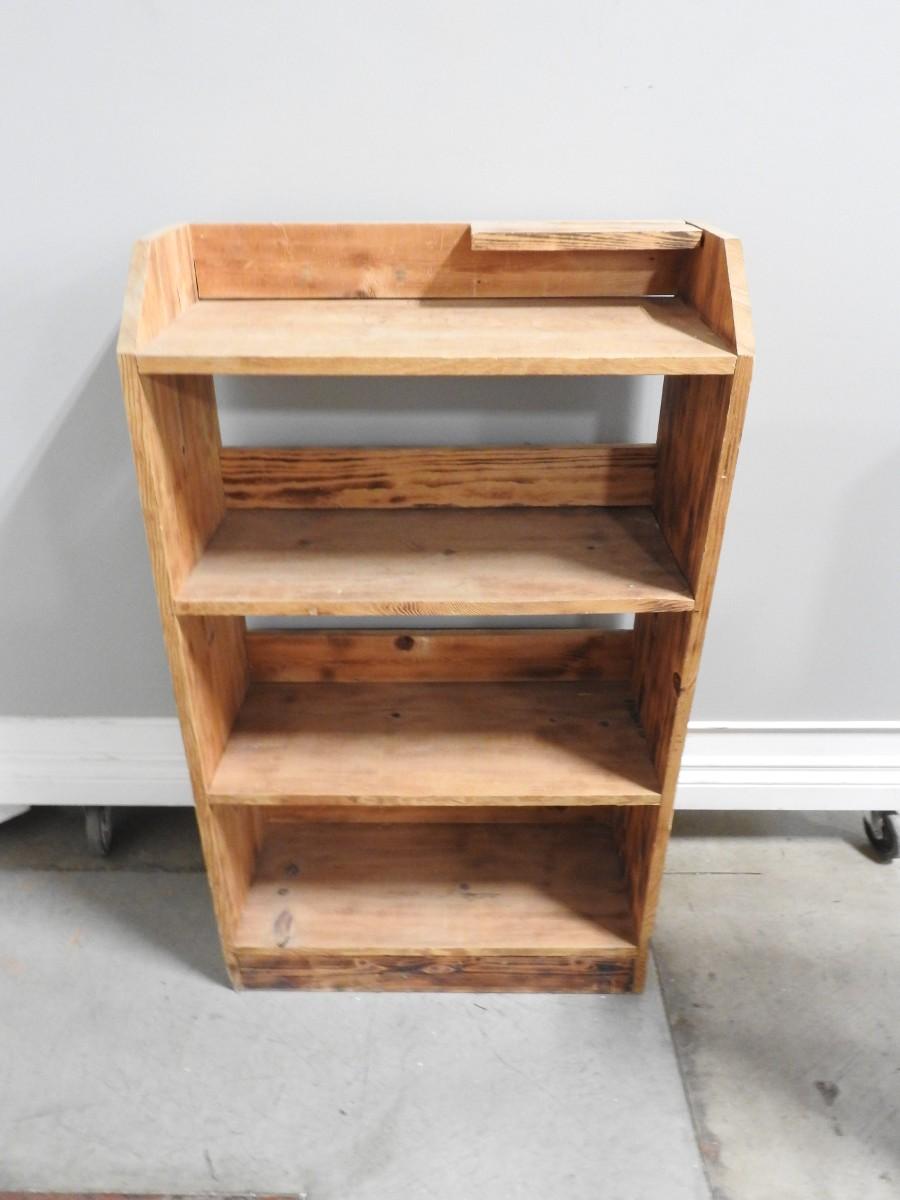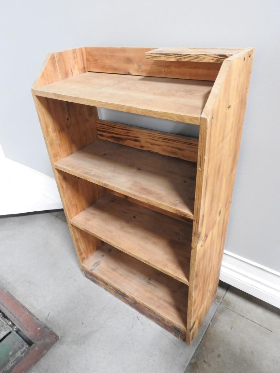 Wooden Book shelf with 4 Shelves. Angled Side at top