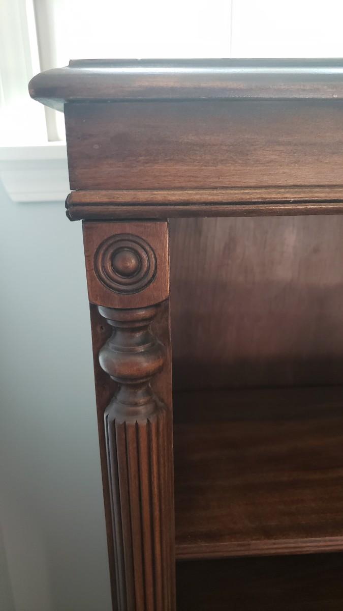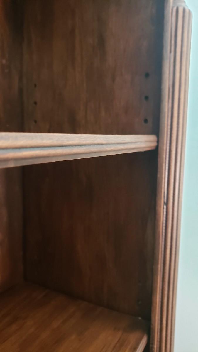 This is a solid wood bookcase with three adjustable shelves, see pictures. The shelf measures 30" x 10" x 45"H.