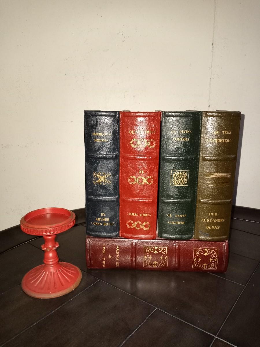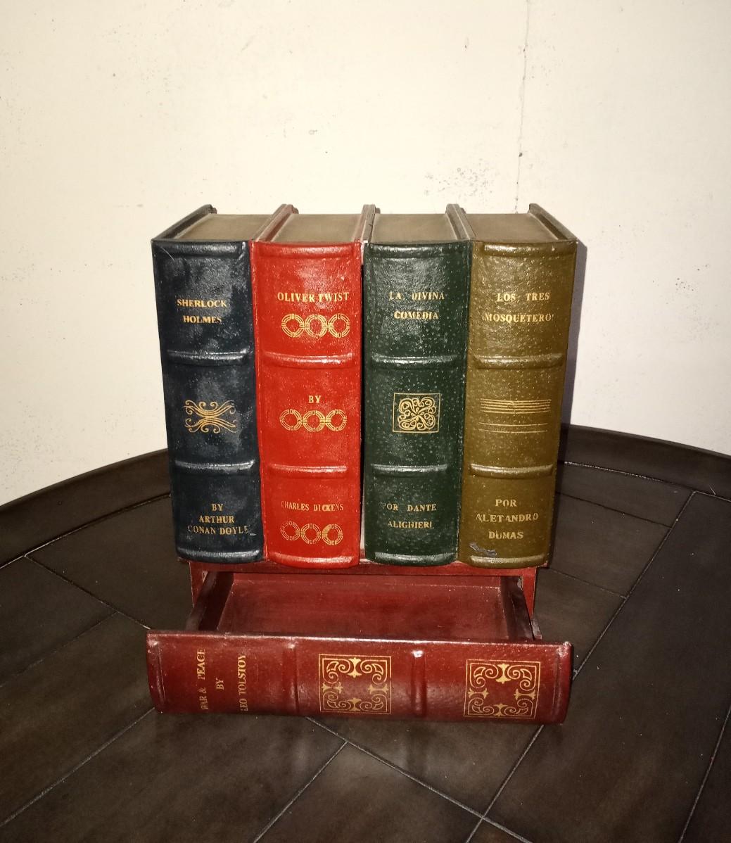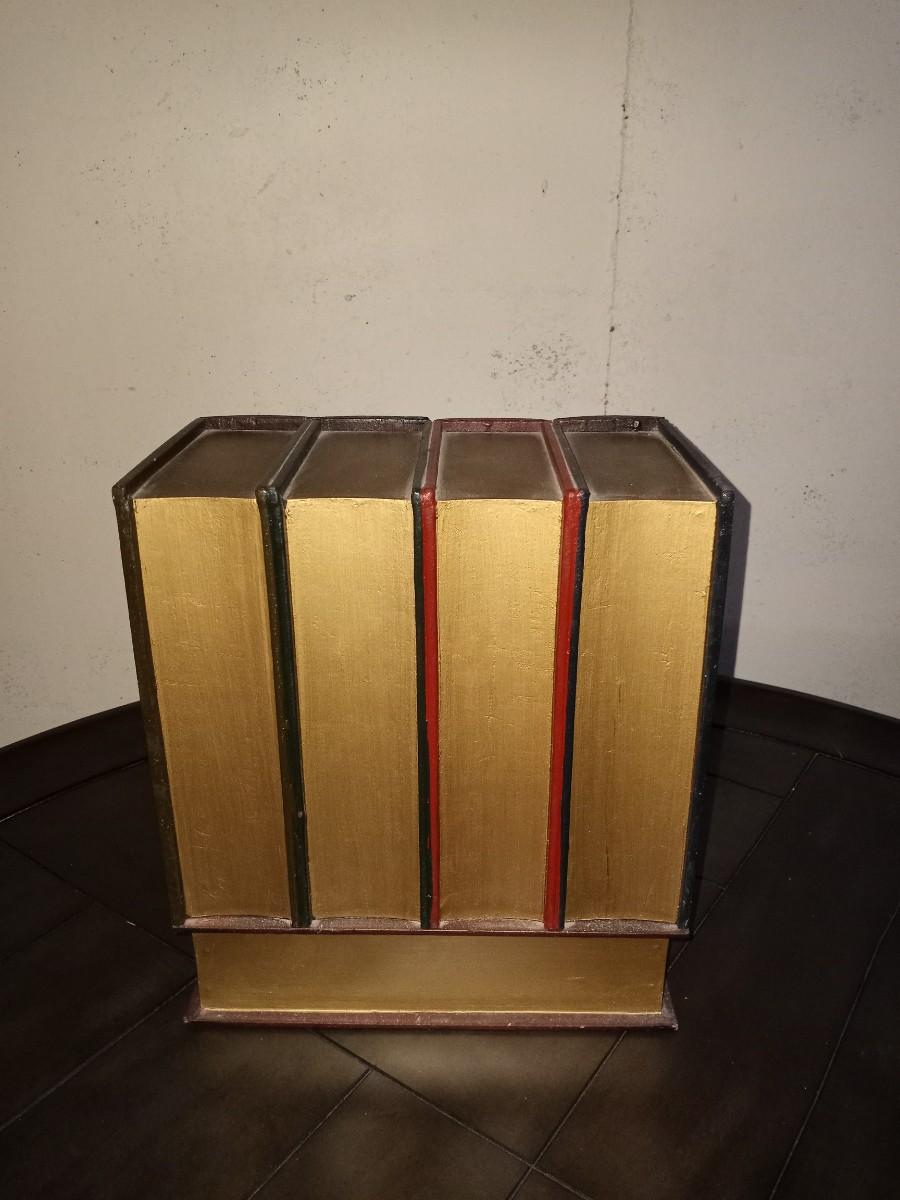 DECORATIVE WOODEN BOOKS WITH DRAWER AND METAL CANDLE HOLDER