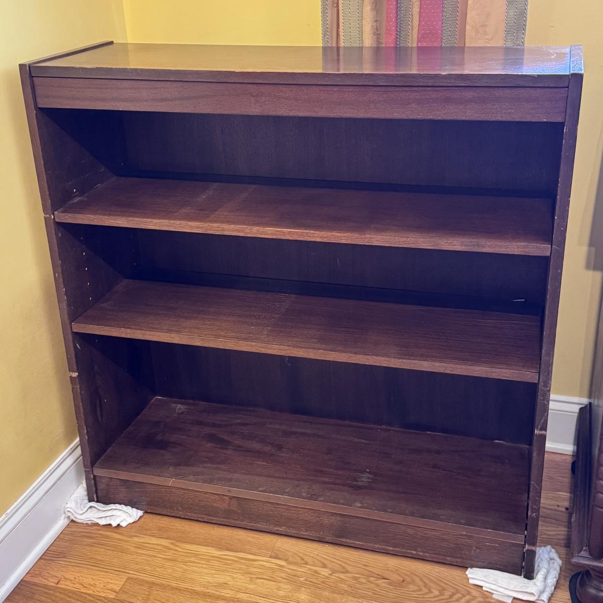 Lot includes one bookshelf with two adjustable shelves. The bookshelf is made from lightweight composite board and has three levels to display your books, four if you include the surface. The bookshelf measures 36” x 12” x 36.5”H. Local pickup only. Winning bidder must bring assistance to help move and load this item due to its weight and/or size.