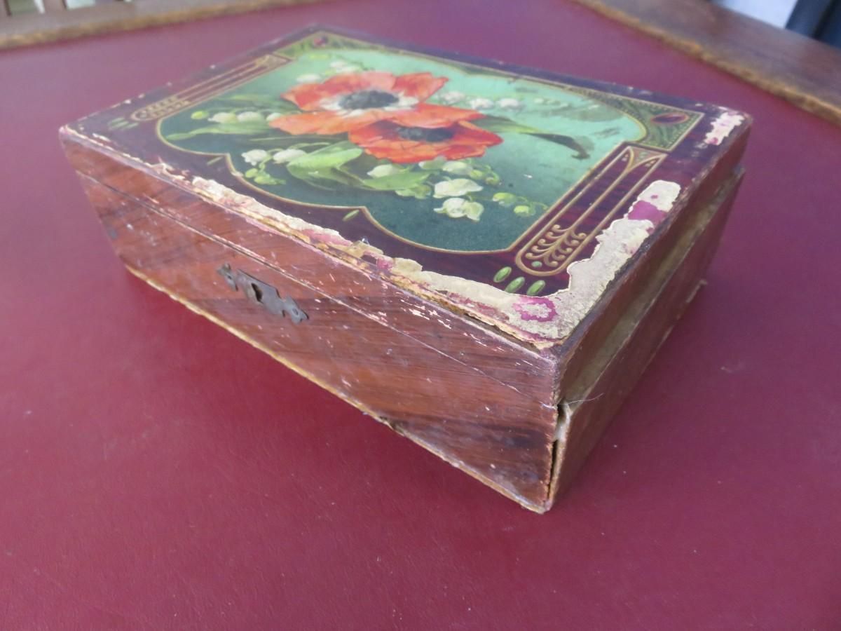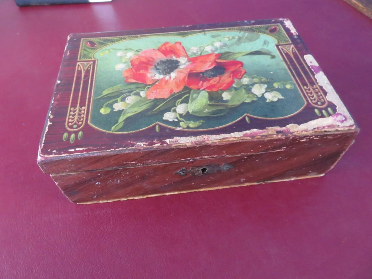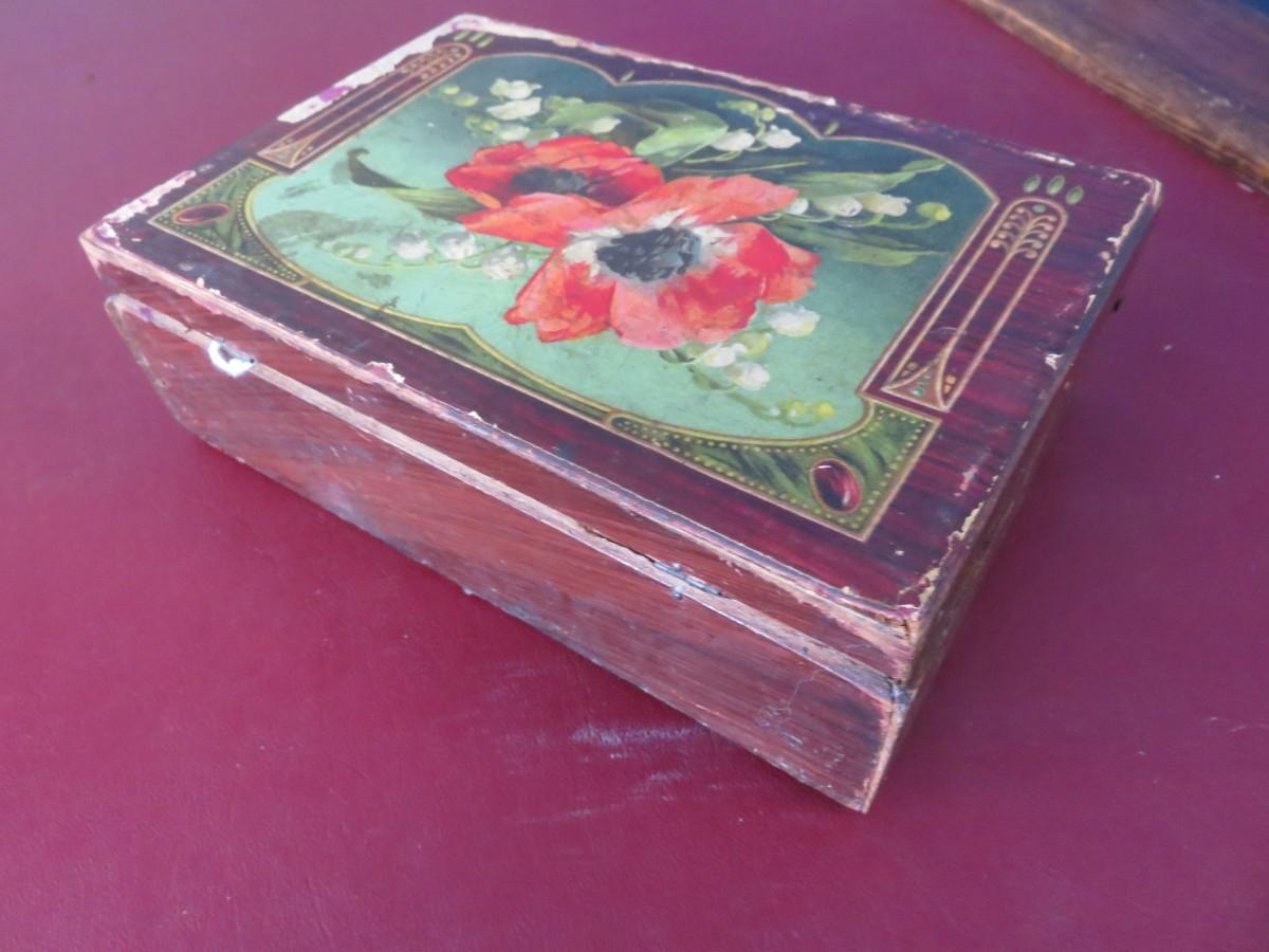 Vintage Wooden Box with Flowers on top