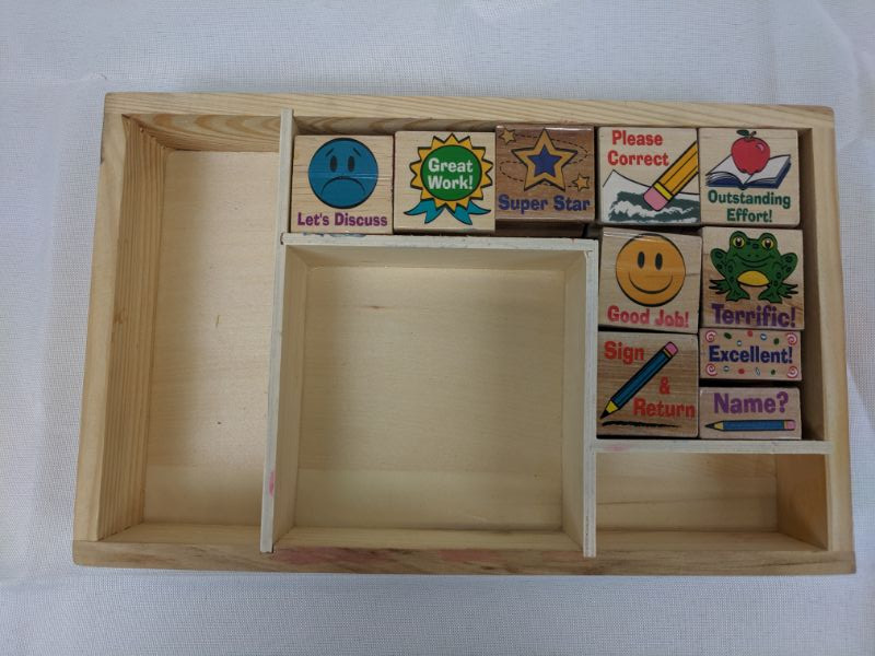 Wooden Box W/ Teacher Rubber Stamps