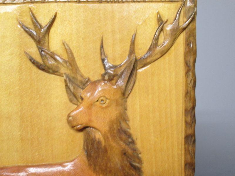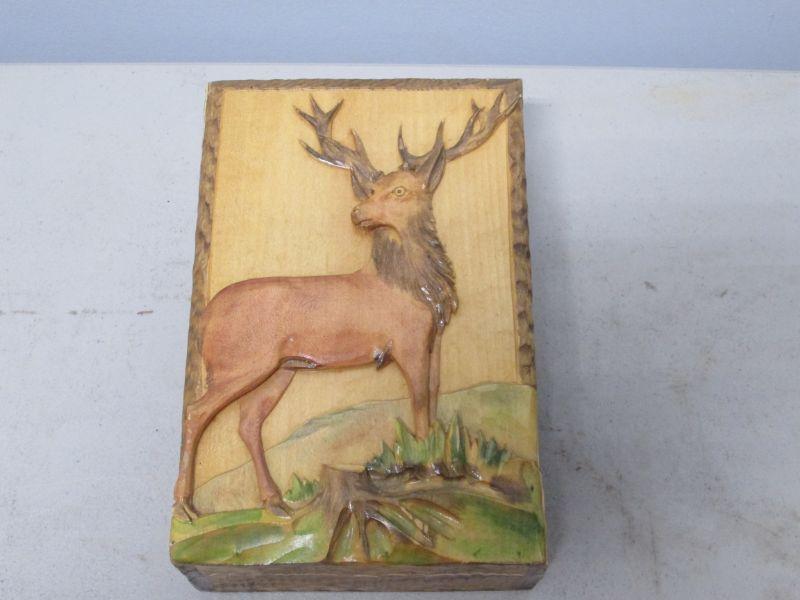 Wooden Box With Carved Buck Scene