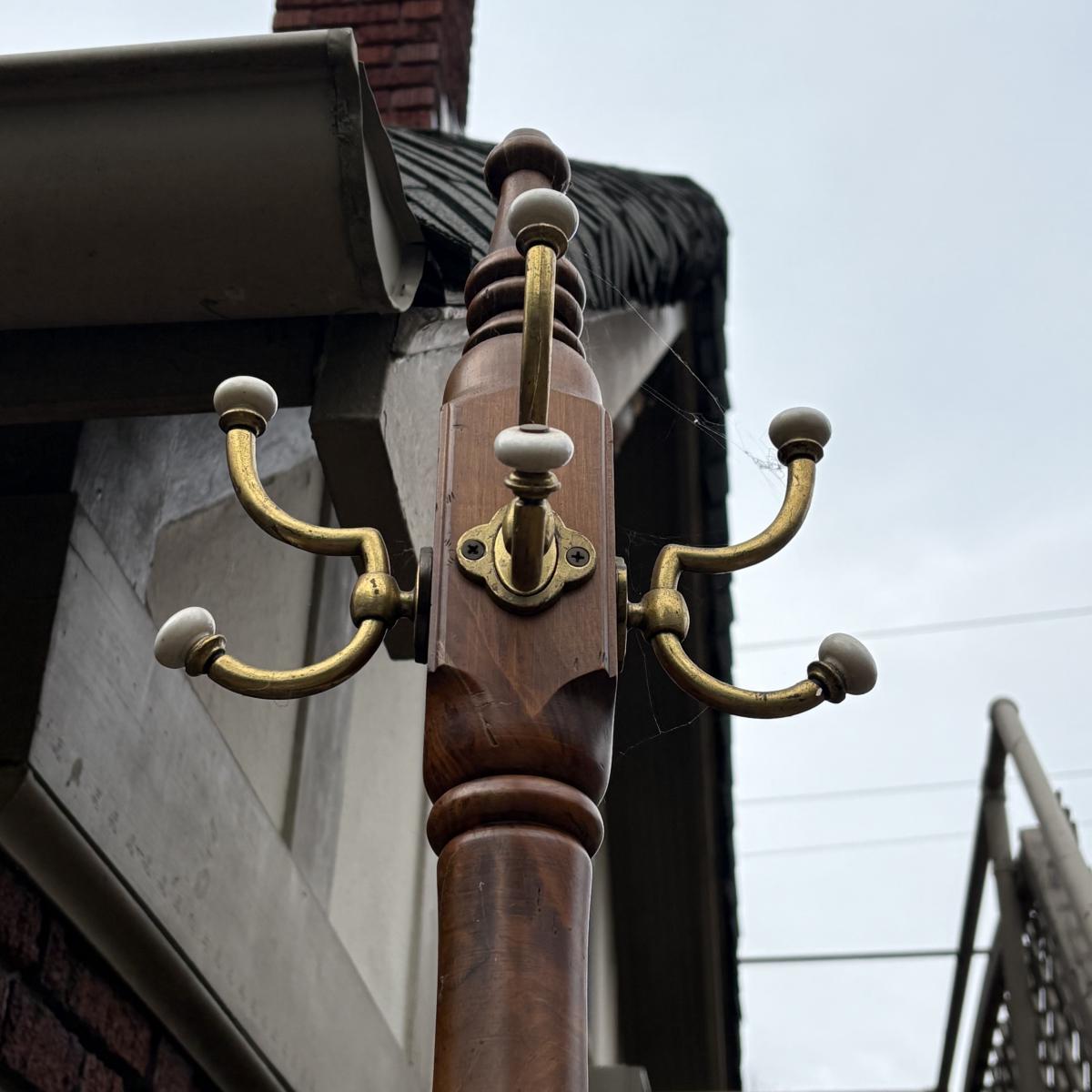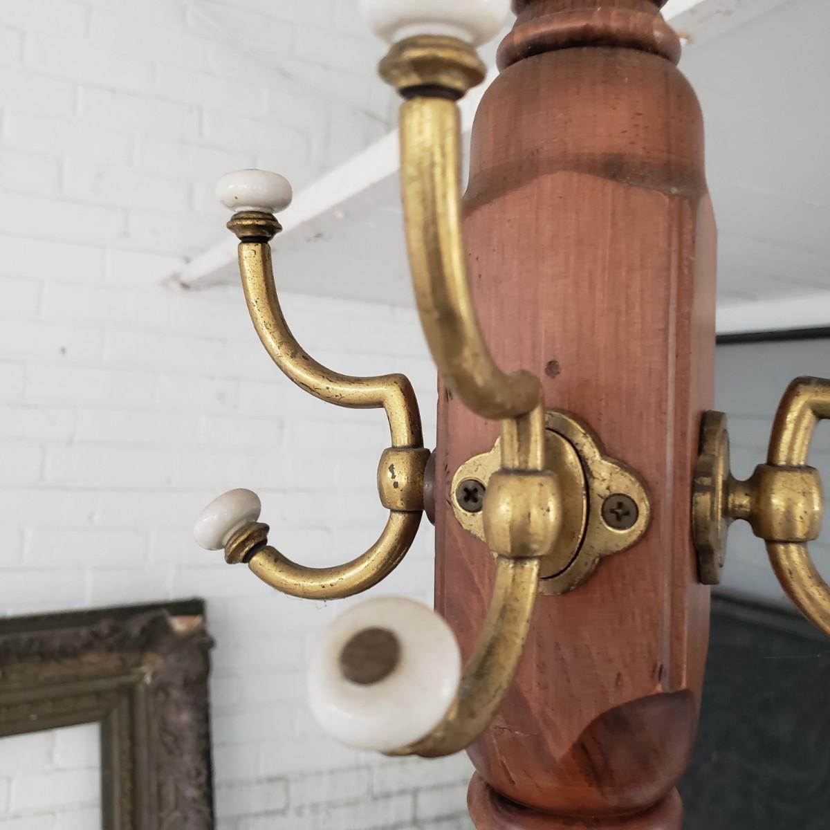 Wooden & Brass Coat Tree (G-SF)