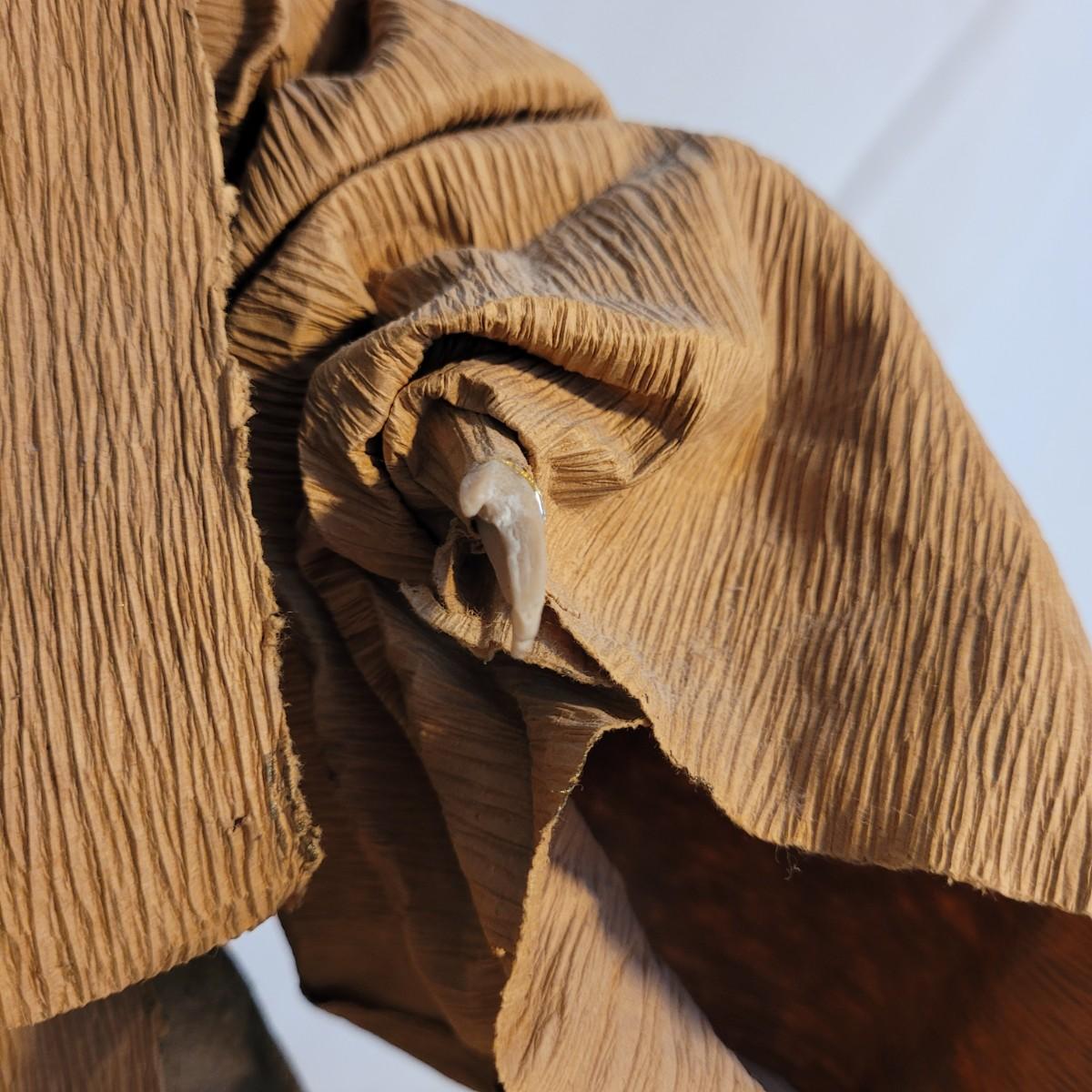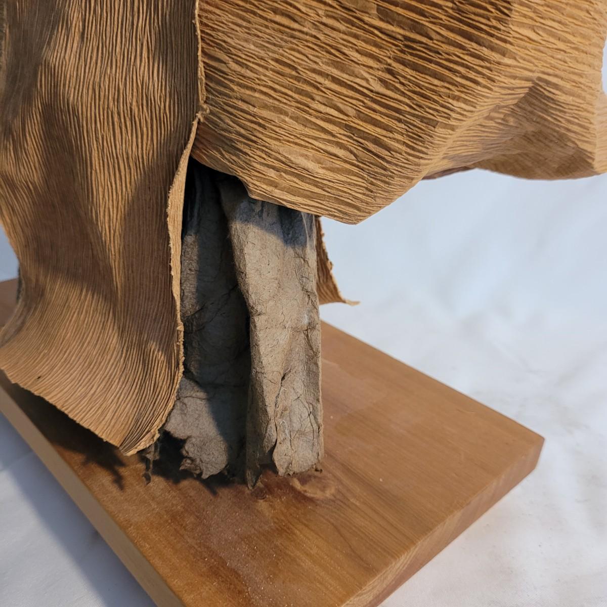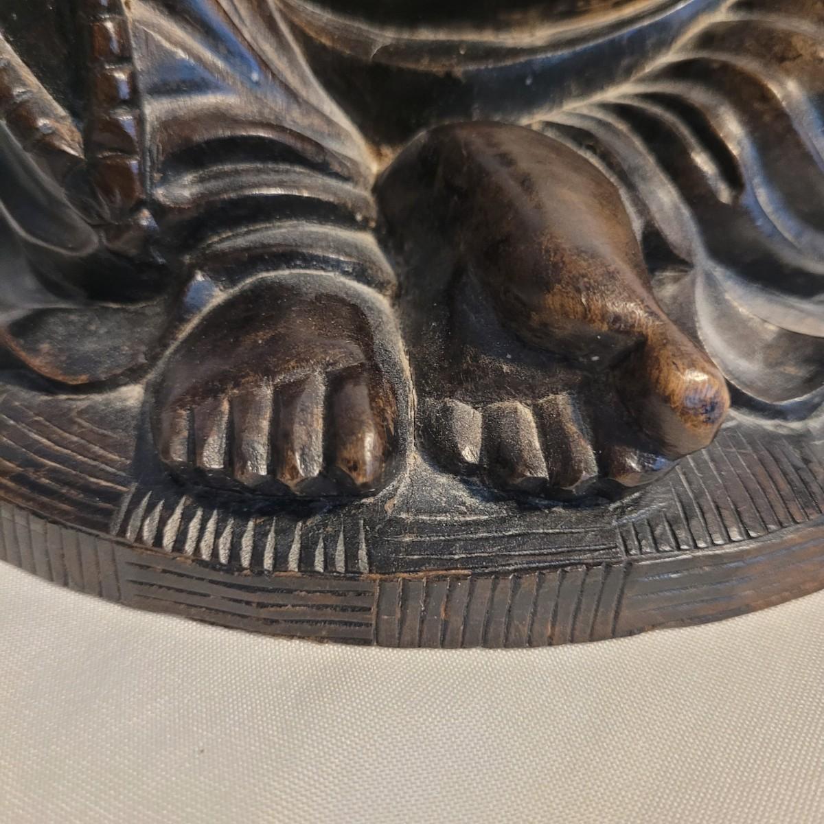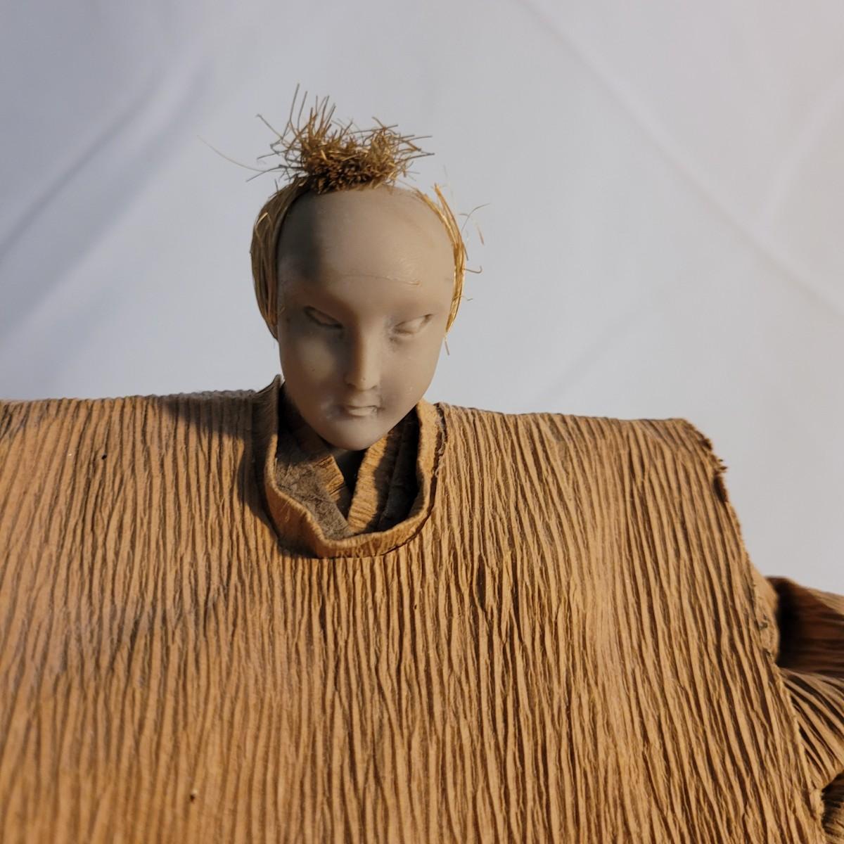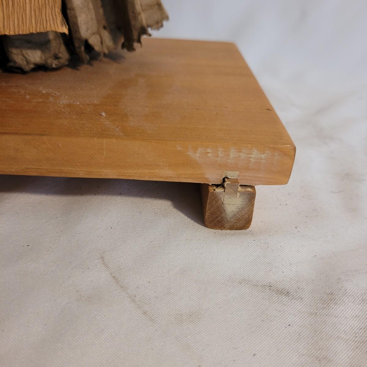 Solid wooden Buddha carved statue in good condition with slight cracking, most noticeable in front across chest and belly, and side by ear. Small nick on head (see photos). Normal accumulation of dust and smudges that can be easily cleaned. Not very heavy. Japanese samurai doll dressed in natural fiber costume. In good condition. Very lightweight. Wooden stand is sturdy. For reference, samurai doll measures approximately 12"L x7"W x16"H (measurements include base). Shipping available.