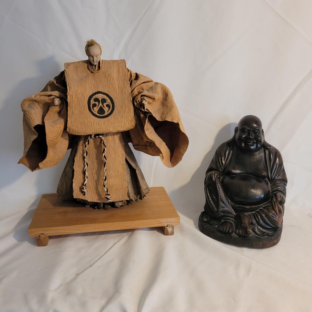 Wooden Buddha Statue and Japanese Samurai Doll (S-CE)