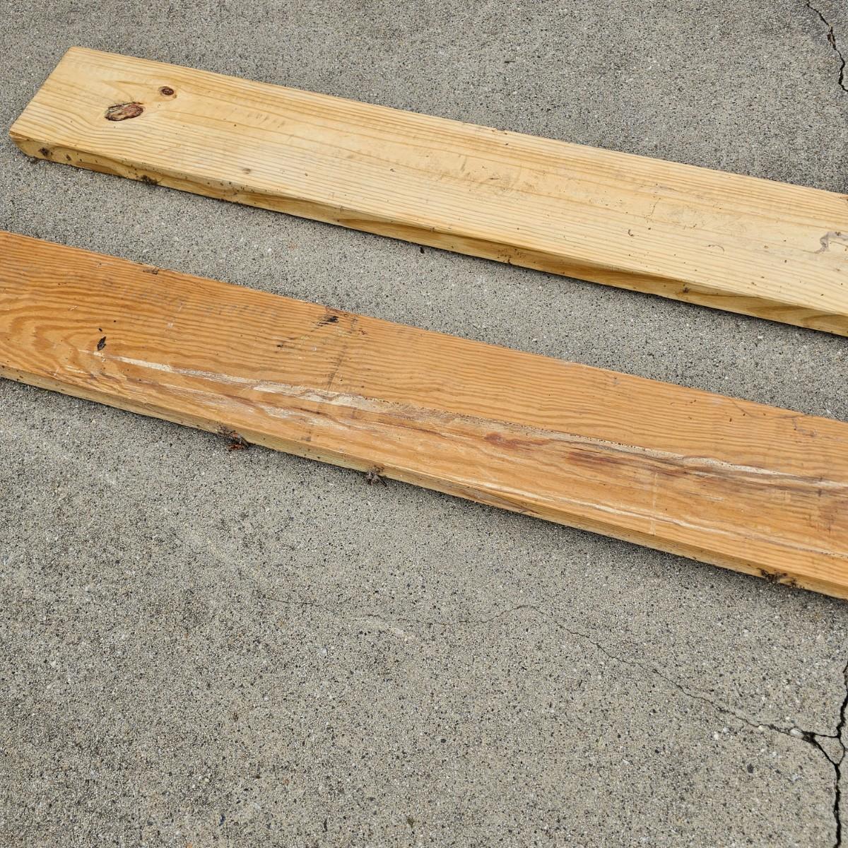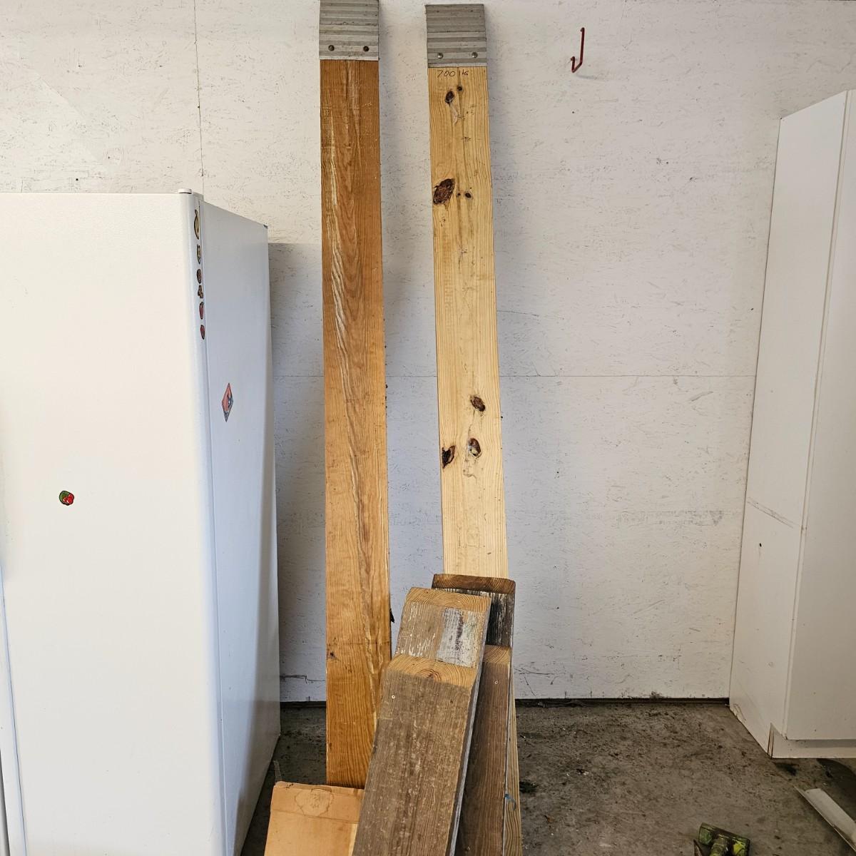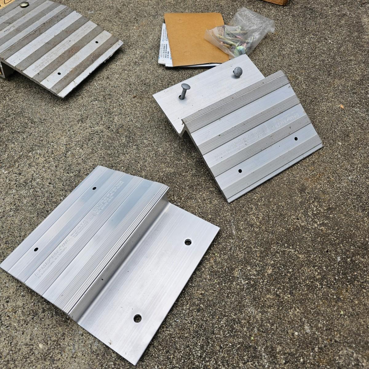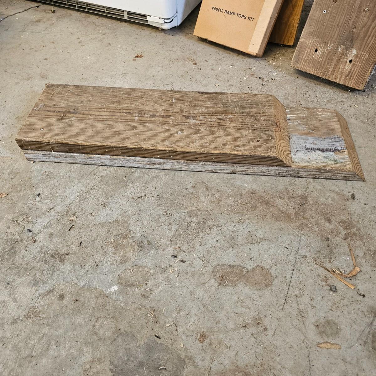 One pair wooden ramps with aluminum ends. Ramps are 2"x 8" x 102" long. Also includes second pair of ramp tops to make additional ramps. Shorter set all wood ramps, 9" x 34" x 3"H. See photos for details. Local pickup only.