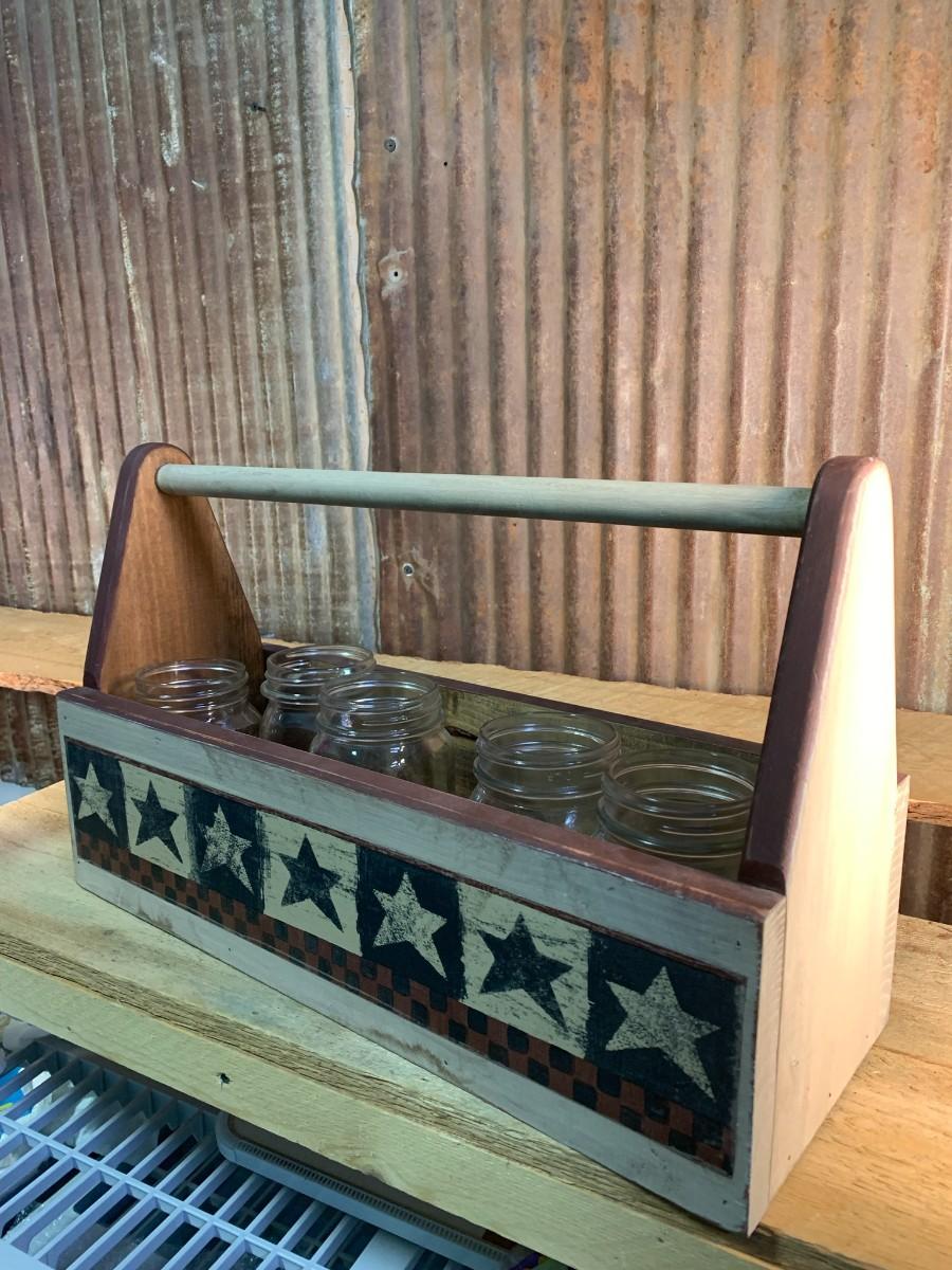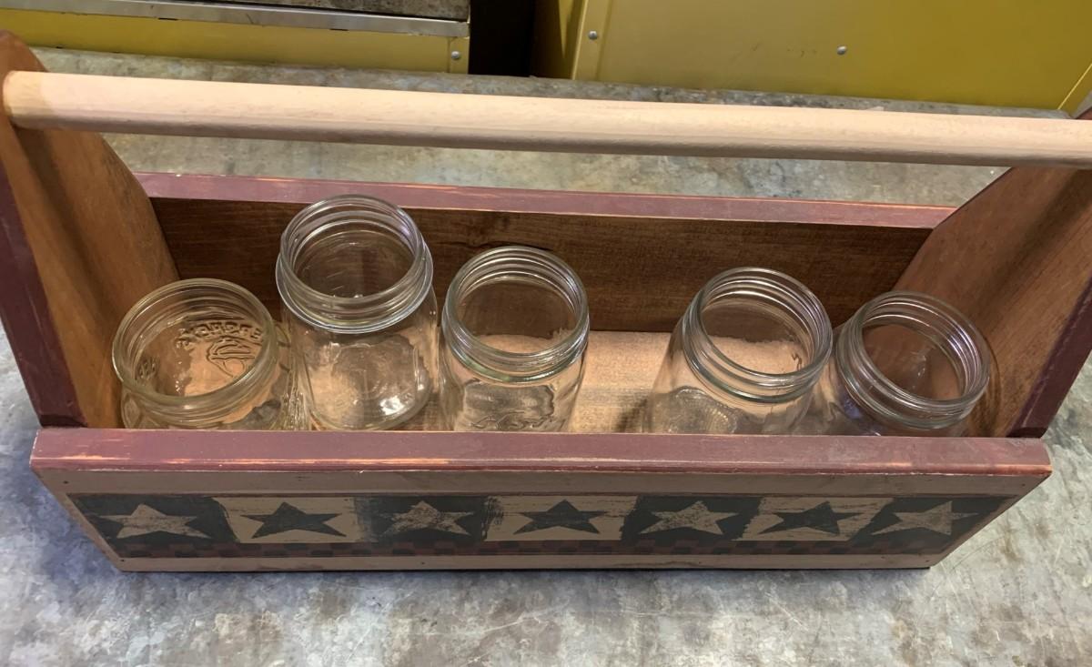 Wooden Carry Tote with 5 Kerr Canning Jars