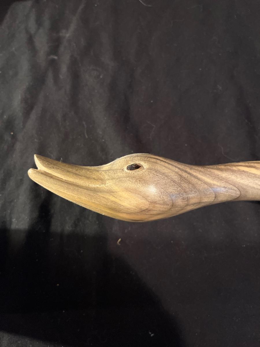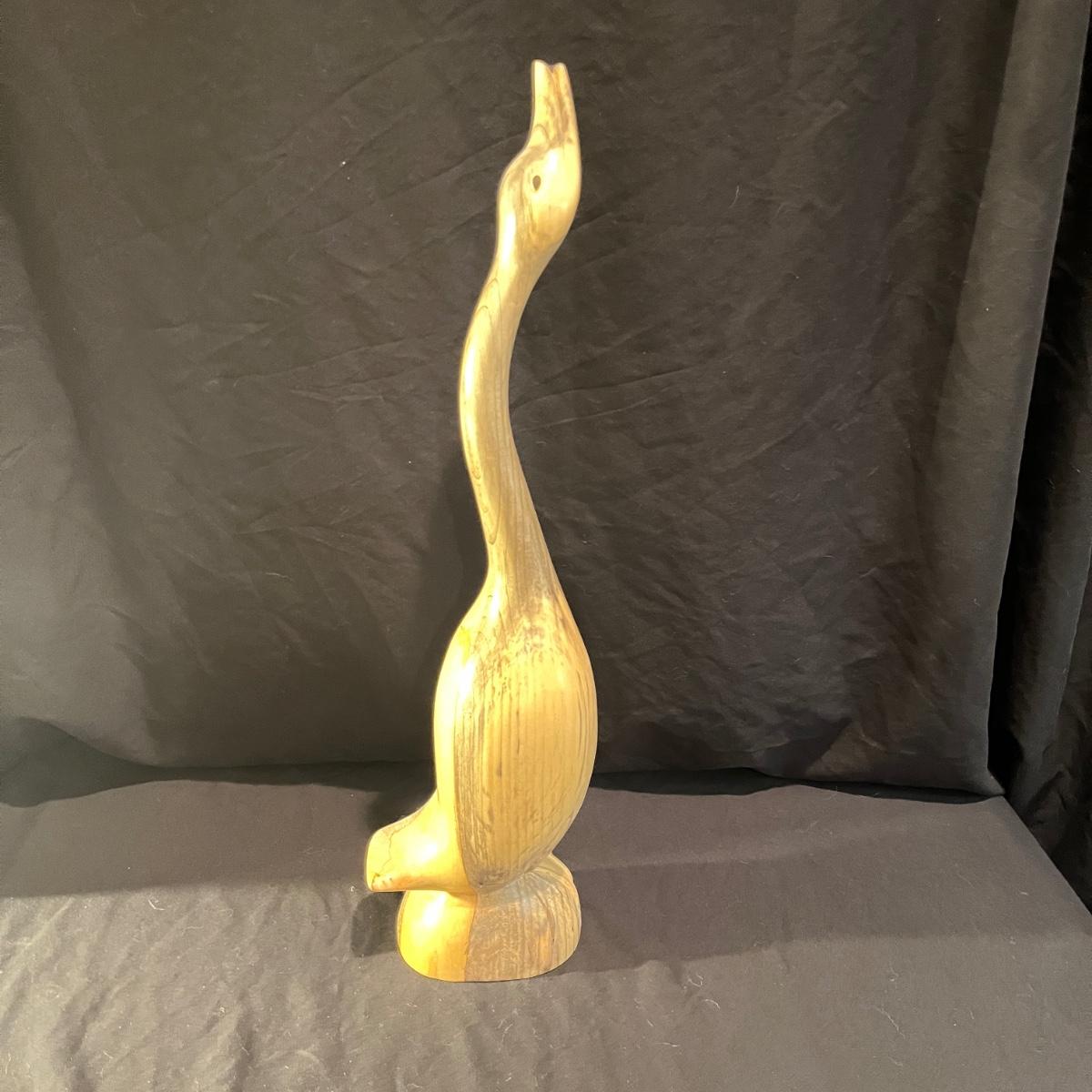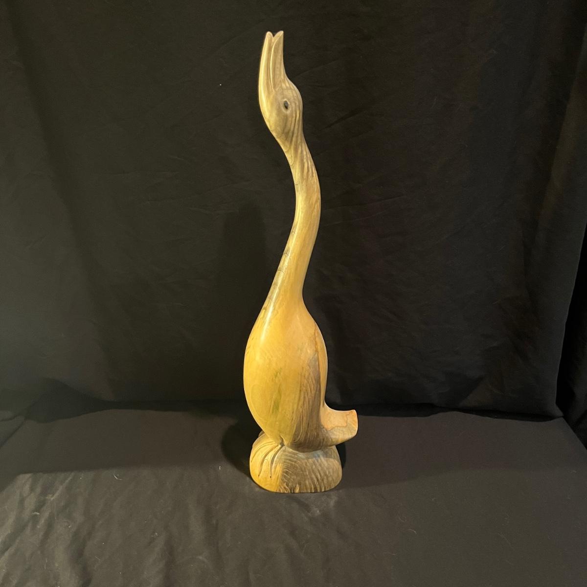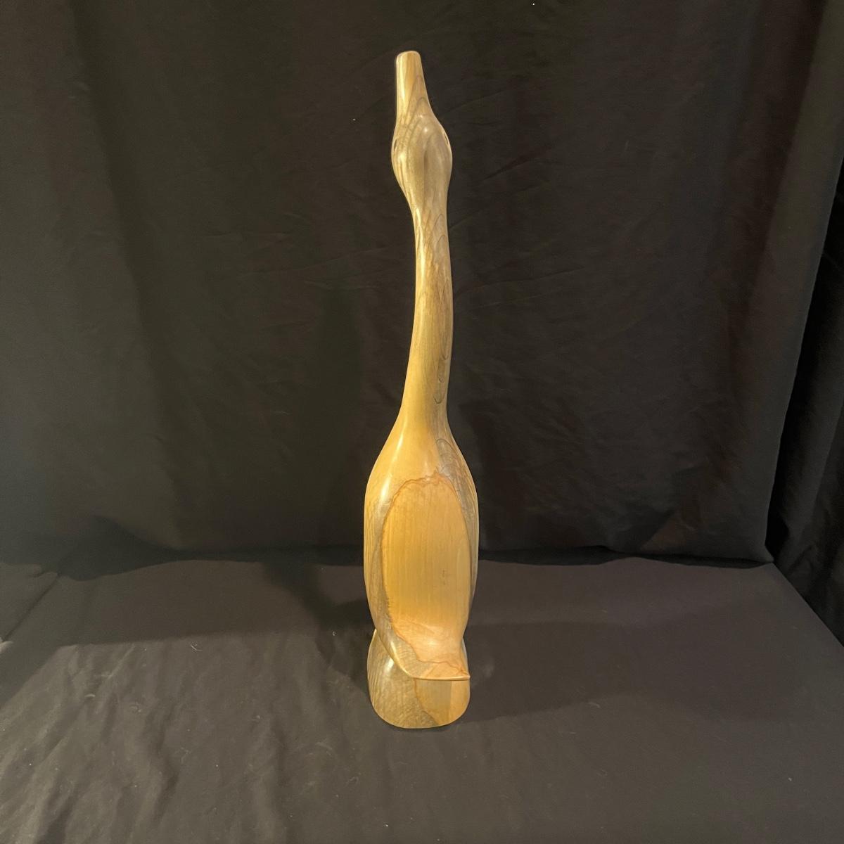 Lot includes a carved wooden bird that measures 4” x 6” x 22”H.