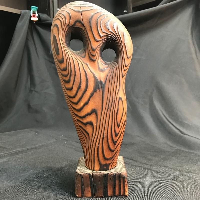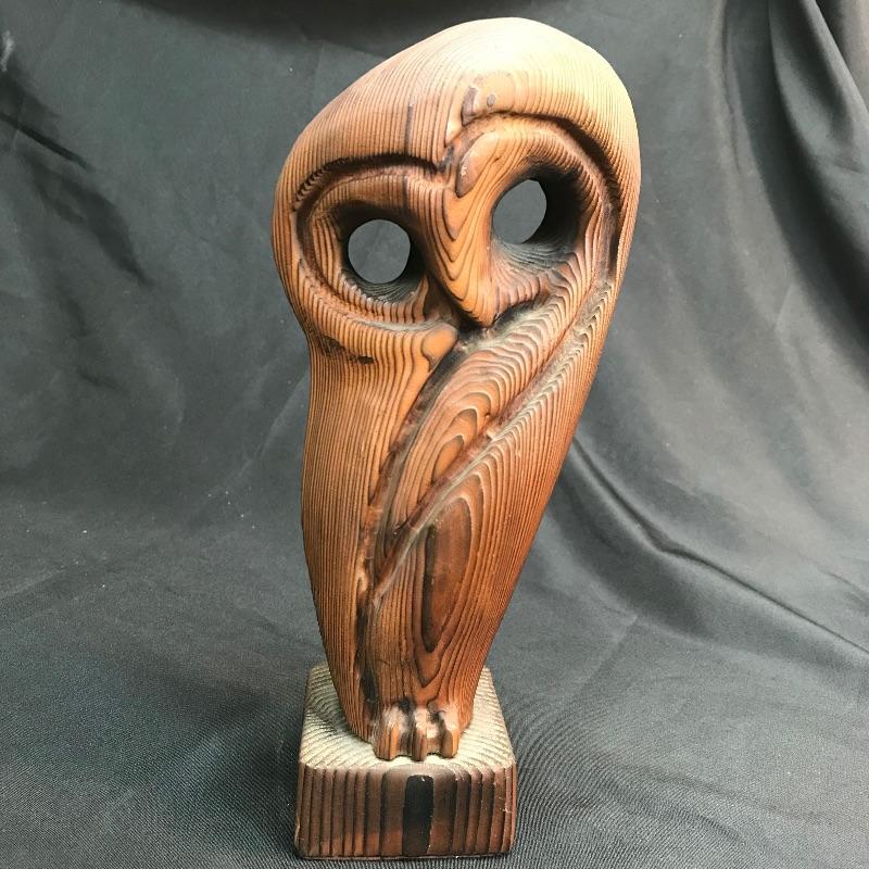 Wooden Carved Brutalist style Owl Figurine - Mantle Art -  Mid Century Modern