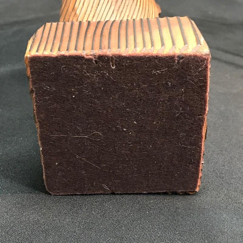 Carving is unmarked, with a brown felt pad on the base. This piece measures approximately 13.25“ tall. Dusty and dry, needs cleaning and oiling.