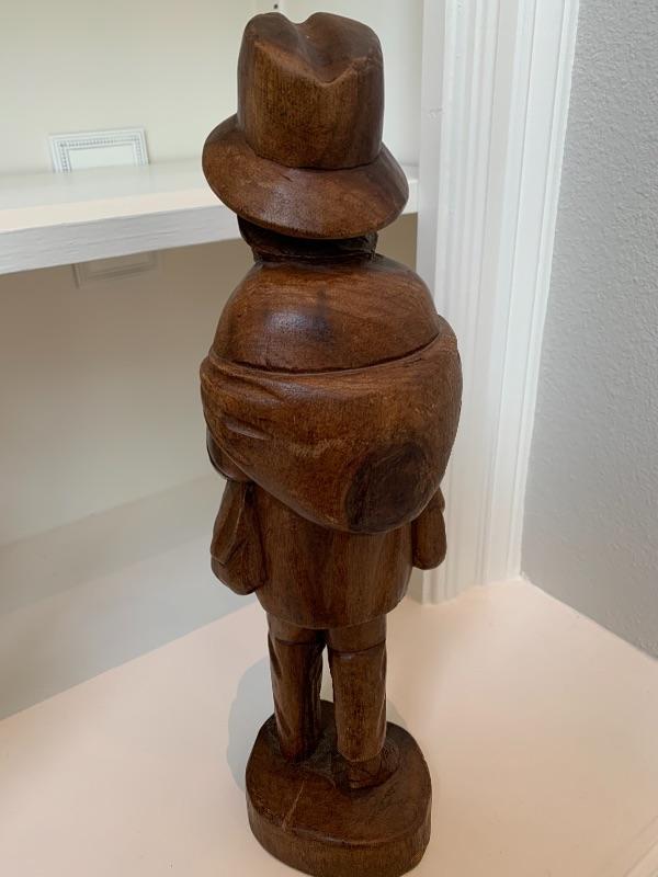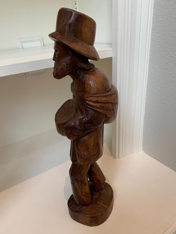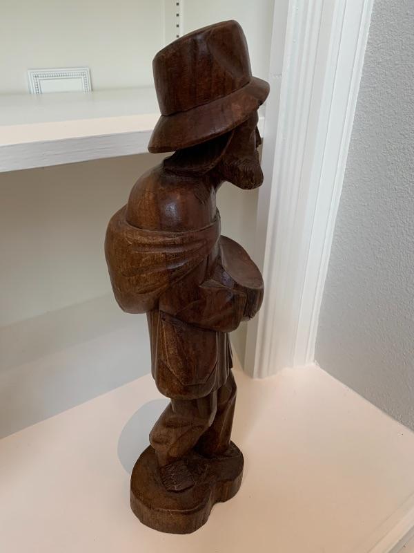 Good condition for this wood carved statue, also a similar 1 also being auctioned separately. Want a pair bid on both. 16 inches tall.