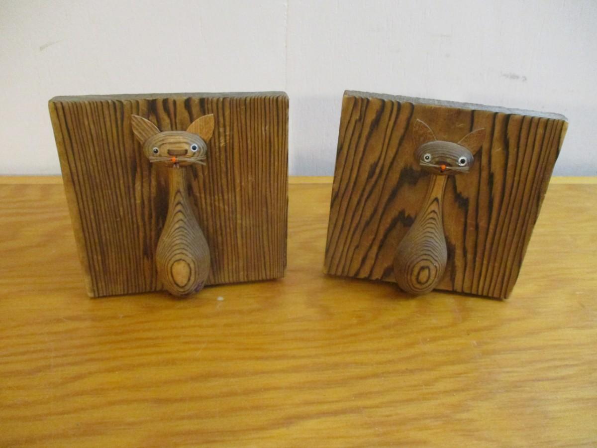 Wooden Cat Bookends - A