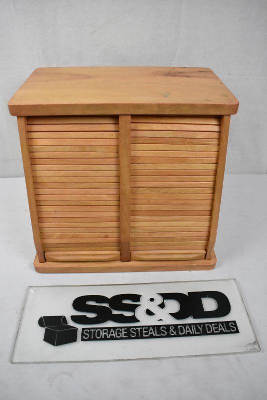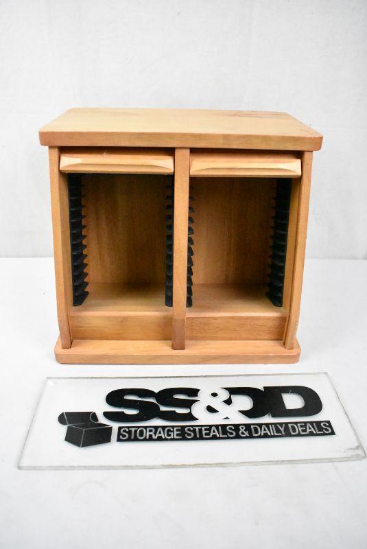 Wooden CD Storage with Garage Style Doors, Holds 24 CDs
